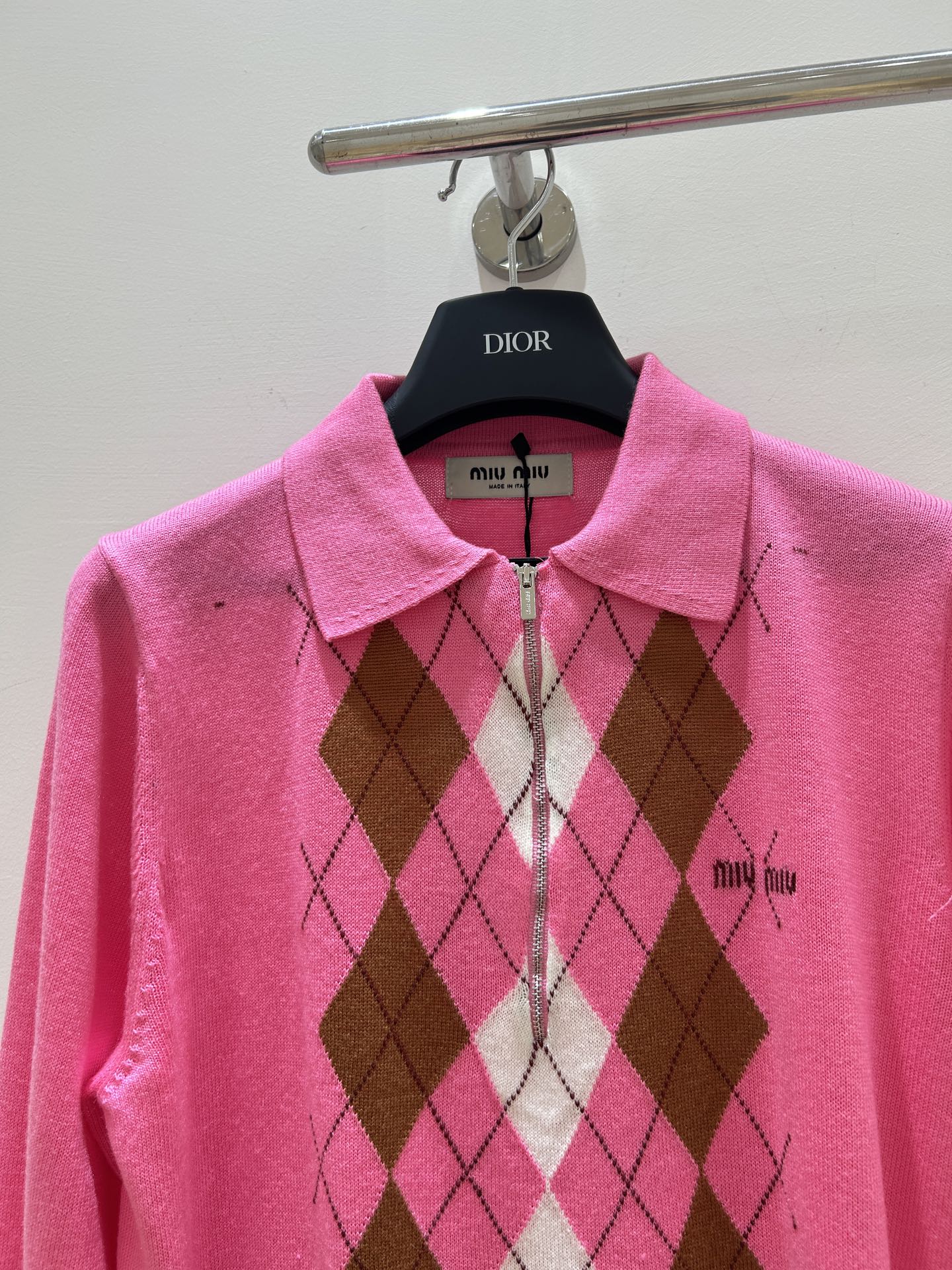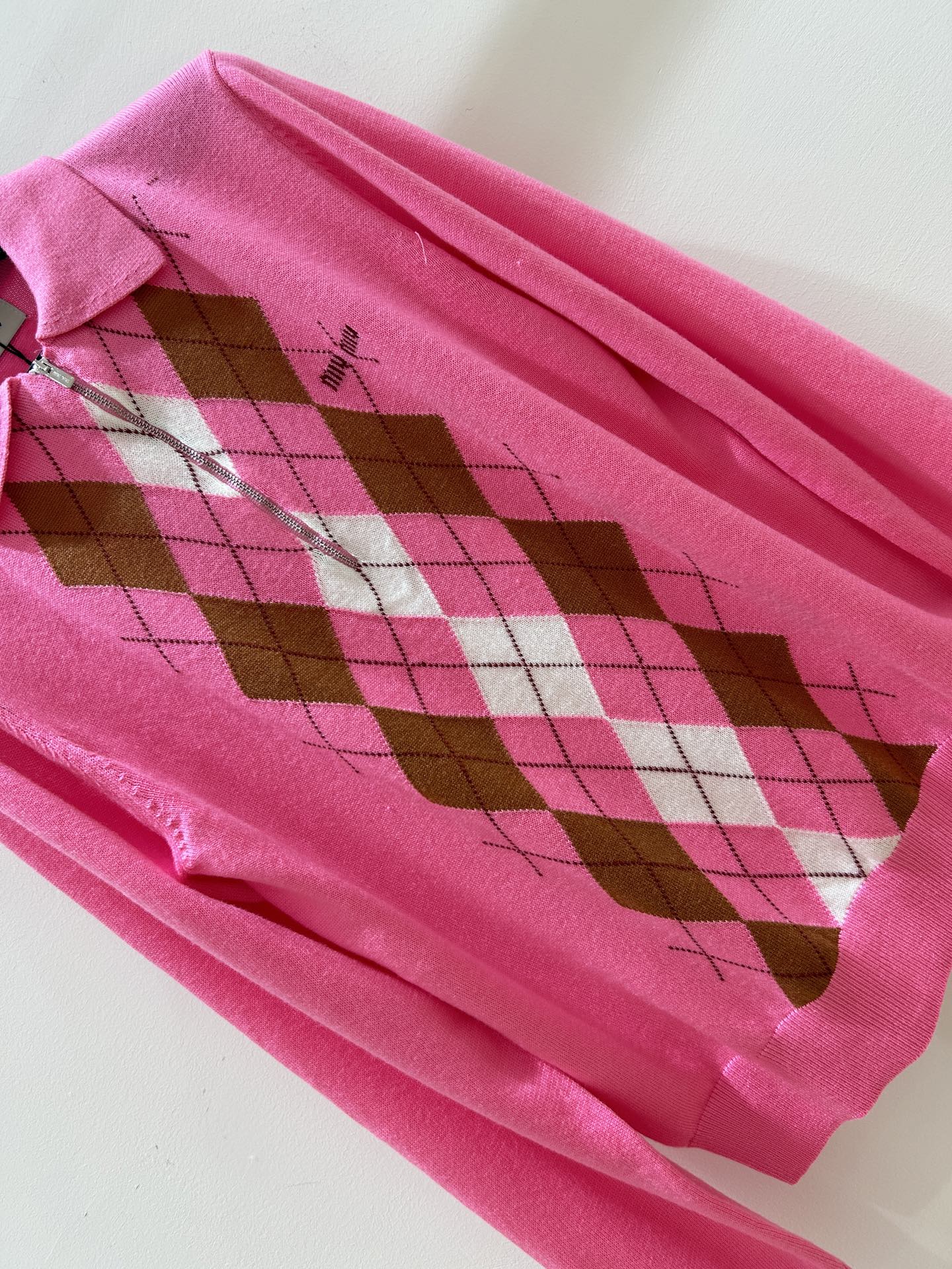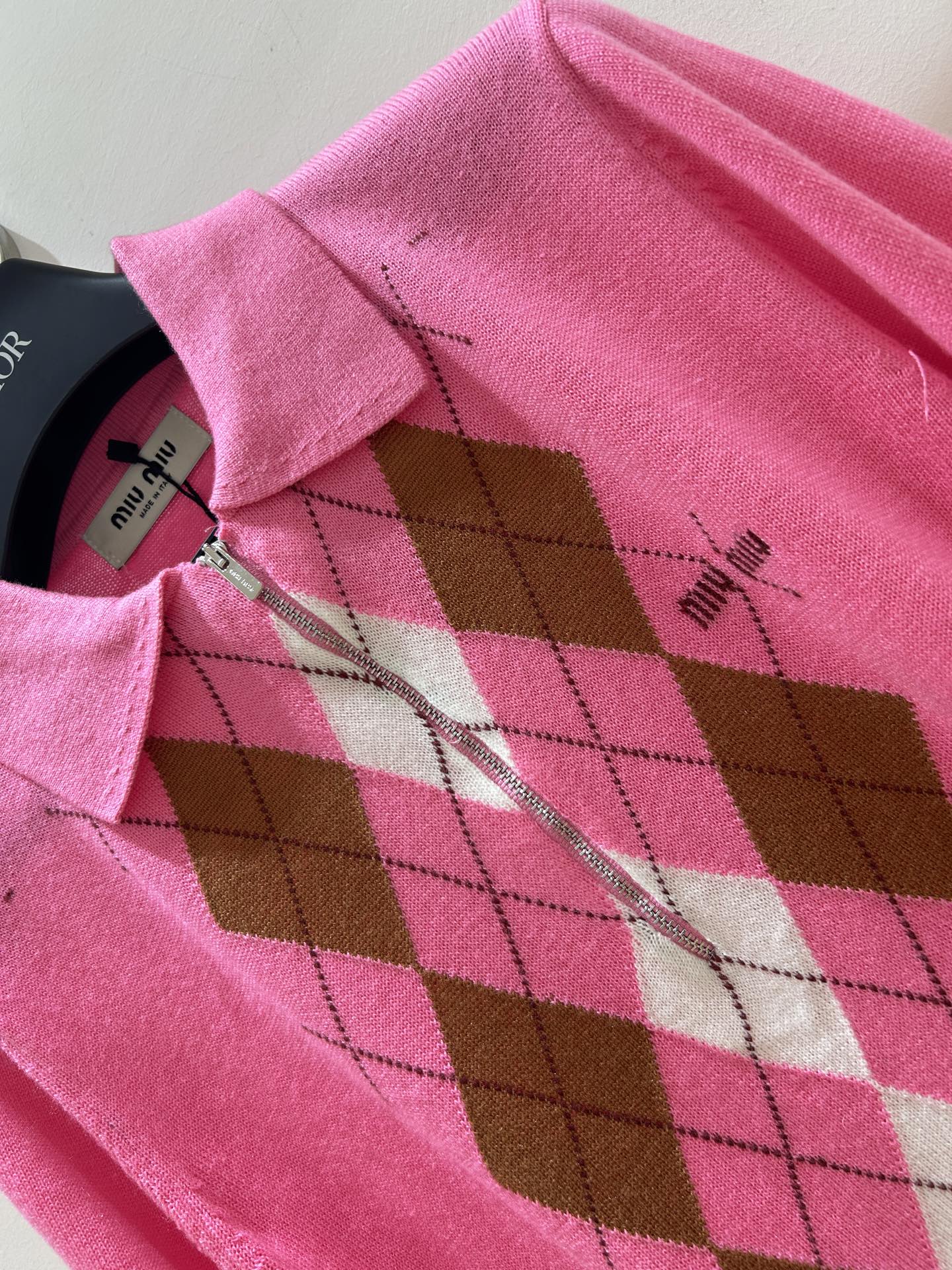 这款衣服是AAAAA 1:1 质量 (非常棒). 使用了和原版一模一样的材料. 商标部分也保持了和缪缪/Miu Miu一样. 图片拍摄是实物衣服拍摄, 您所收到的实物保证和我们图片一模一样.