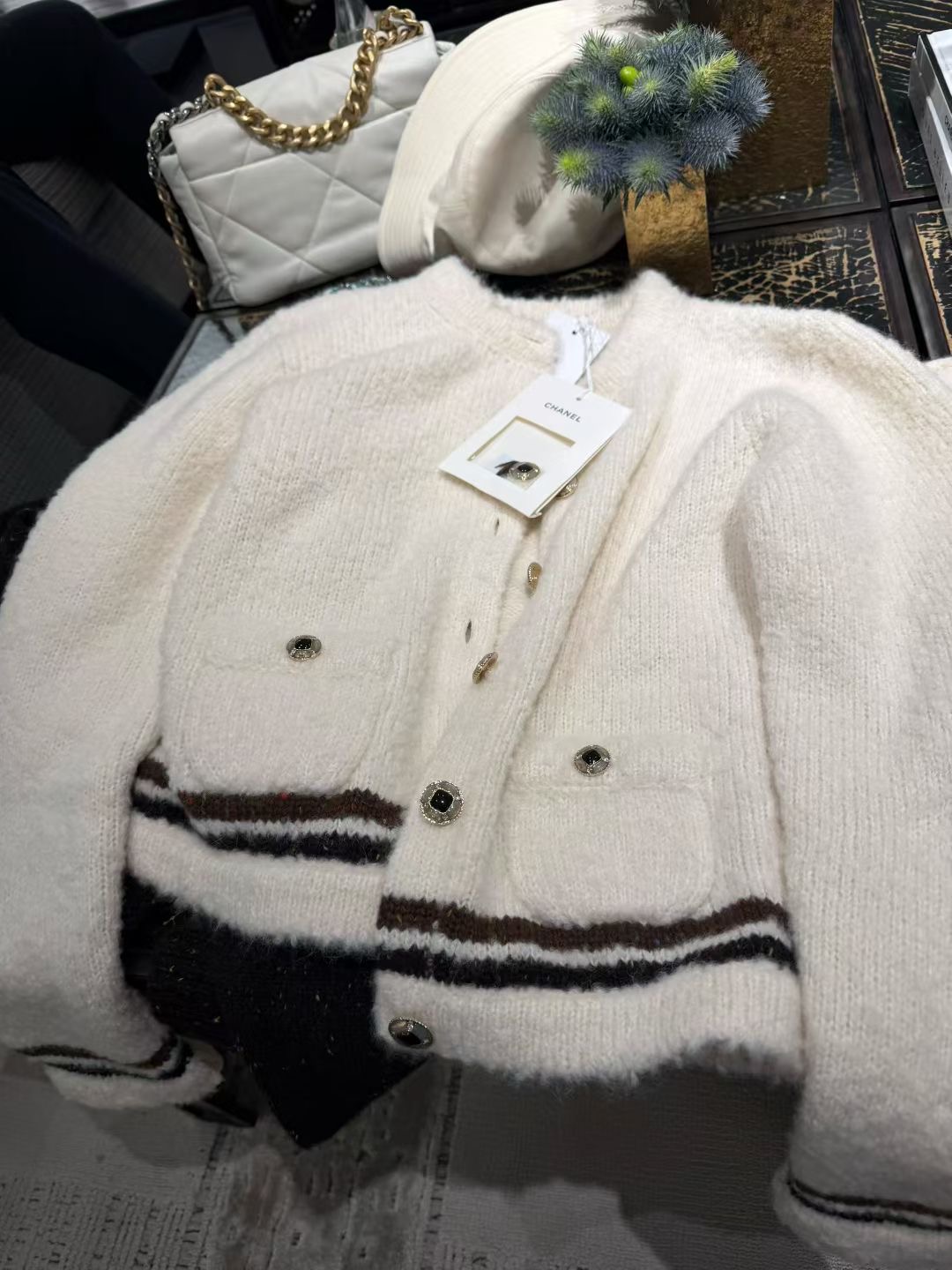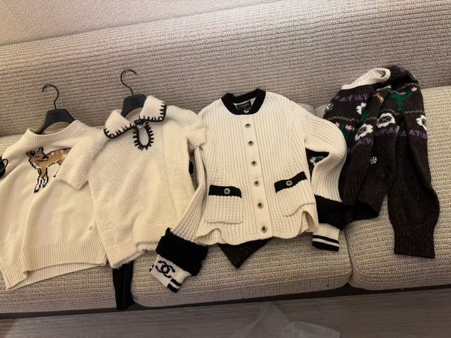 这款衣服是AAAAA 1:1 质量 (非常棒). 使用了和原版一模一样的材料. 商标部分也保持了和香奈儿/Chanel一样. 图片拍摄是实物衣服拍摄, 您所收到的实物保证和我们图片一模一样.