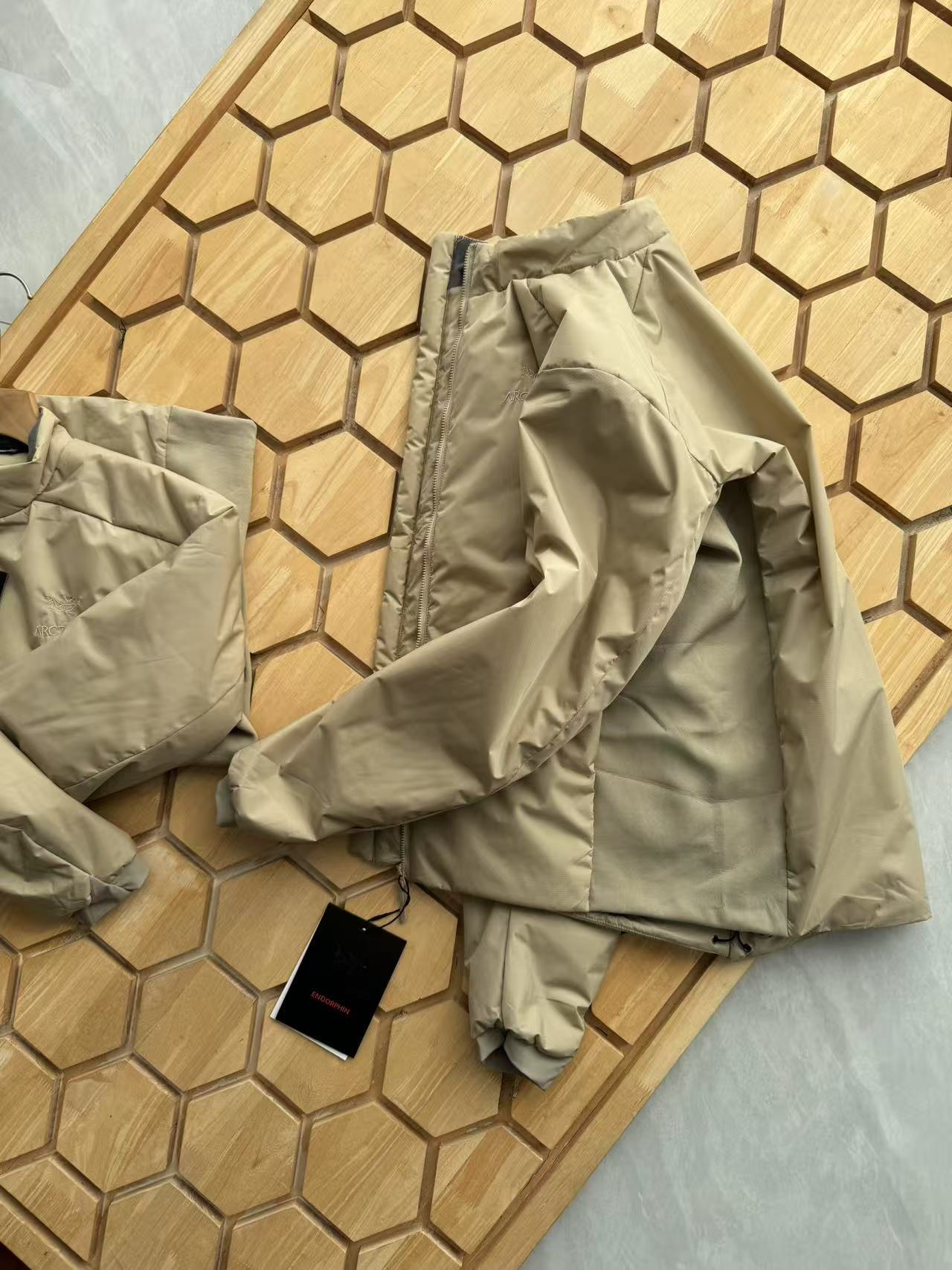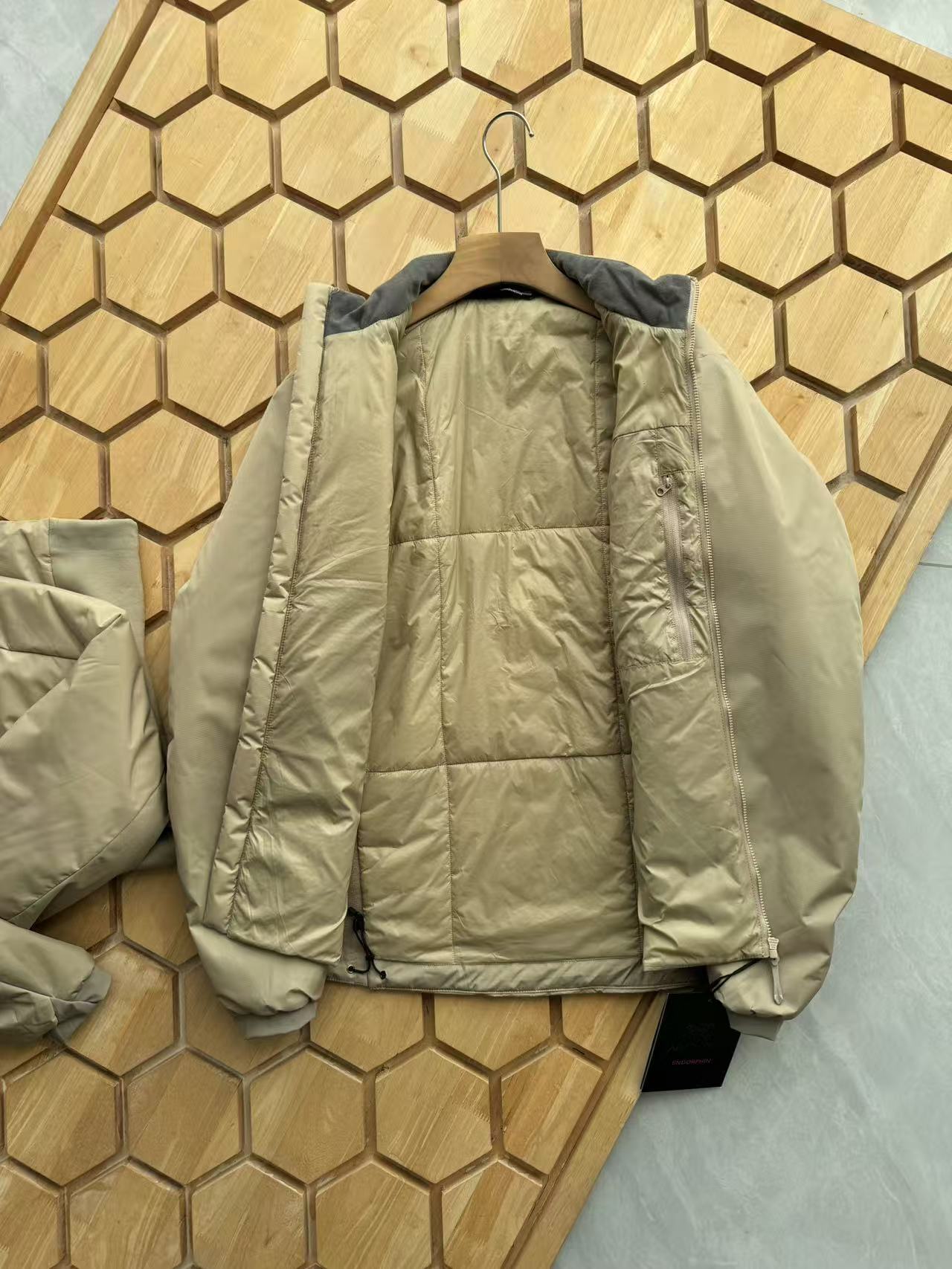 这款衣服是AAAAA 1:1 质量 (非常棒). 使用了和原版一模一样的材料. 商标部分也保持了和ARC'TERYX一样. 图片拍摄是实物衣服拍摄, 您所收到的实物保证和我们图片一模一样.