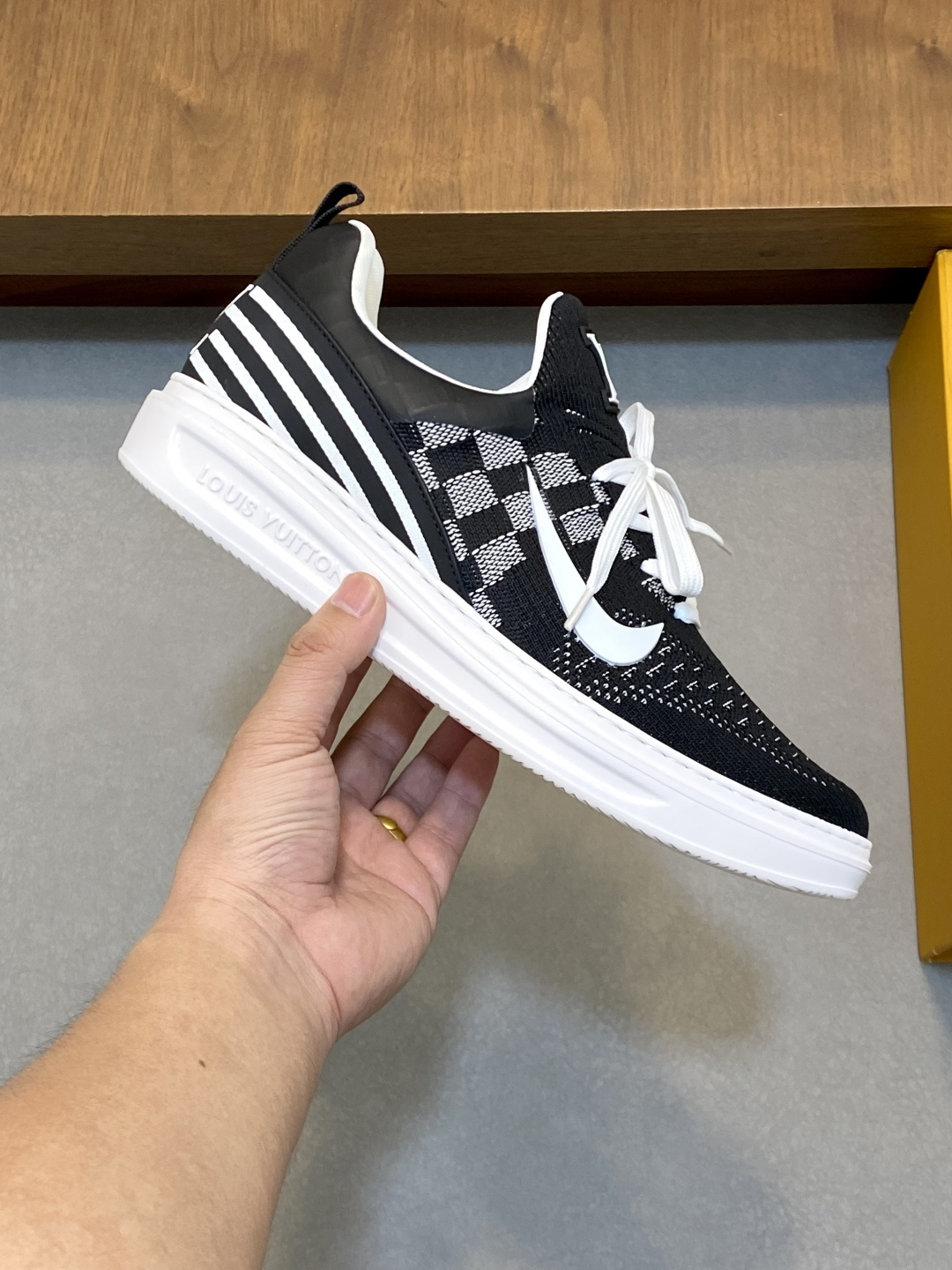 这款鞋子是AAAAA 1:1 质量 (非常棒). 使用了和原版一模一样的材料. 商标部分也保持了和路易威登/Louis Vuitton一样. 图片拍摄是实物鞋子拍摄, 您所收到的实物保证和我们图片一模一样.