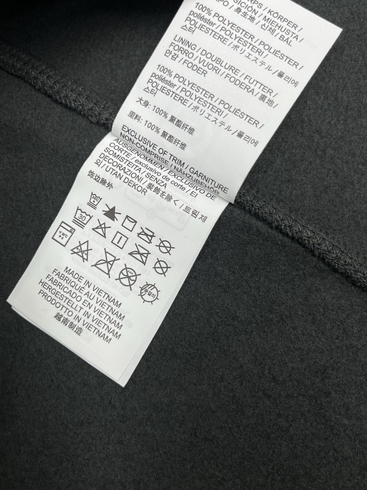 这款衣服是AAAAA 1:1 质量 (非常棒). 使用了和原版一模一样的材料. 商标部分也保持了和一样. 图片拍摄是实物衣服拍摄, 您所收到的实物保证和我们图片一模一样.