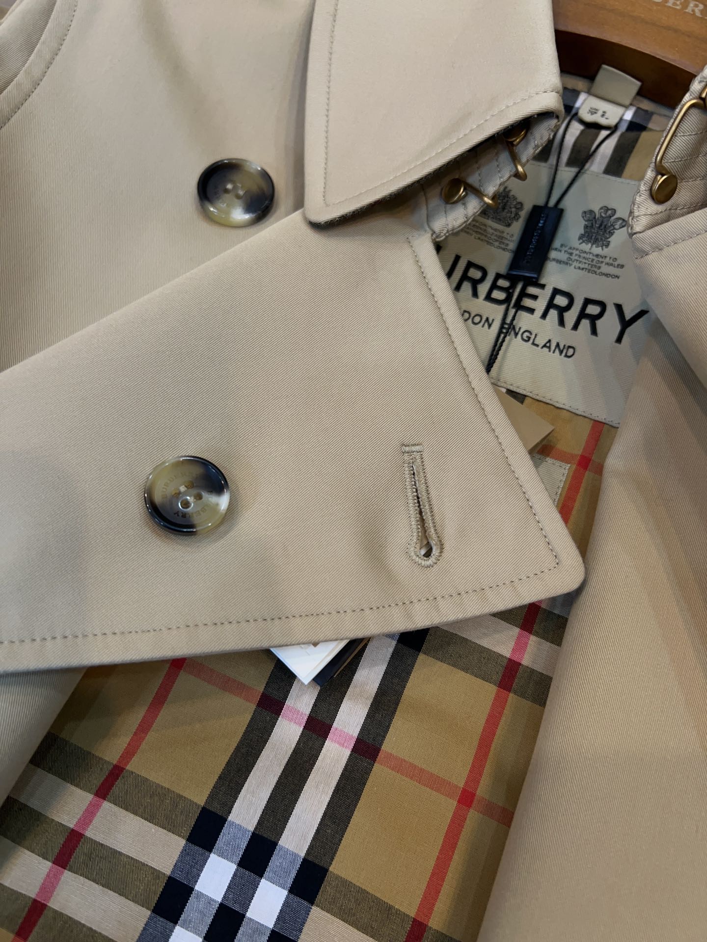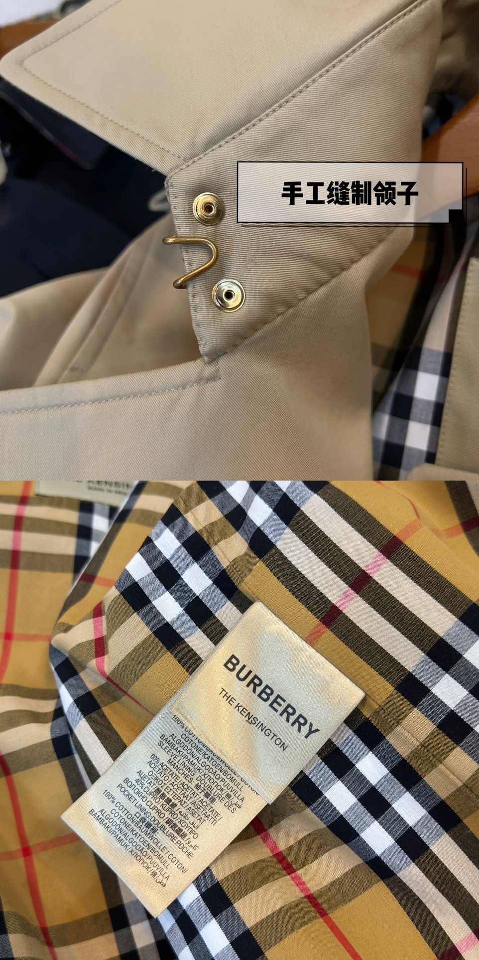 这款衣服是AAAAA 1:1 质量 (非常棒). 使用了和原版一模一样的材料. 商标部分也保持了和巴宝莉/Burberry一样. 图片拍摄是实物衣服拍摄, 您所收到的实物保证和我们图片一模一样.