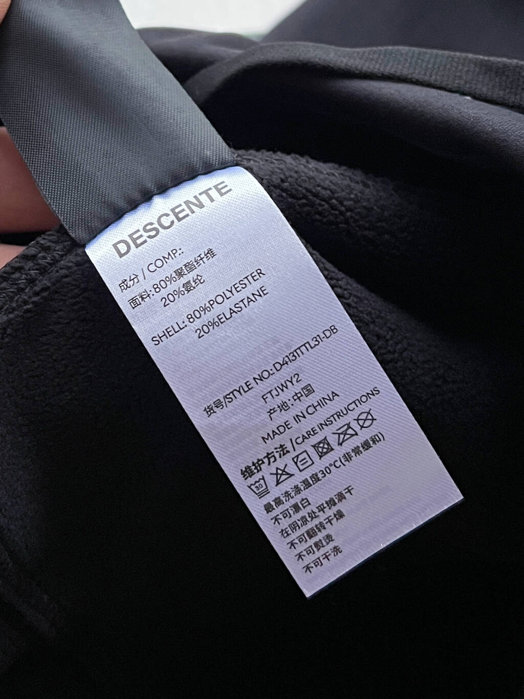 这款衣服是AAAAA 1:1 质量 (非常棒). 使用了和原版一模一样的材料. 商标部分也保持了和Descente一样. 图片拍摄是实物衣服拍摄, 您所收到的实物保证和我们图片一模一样.