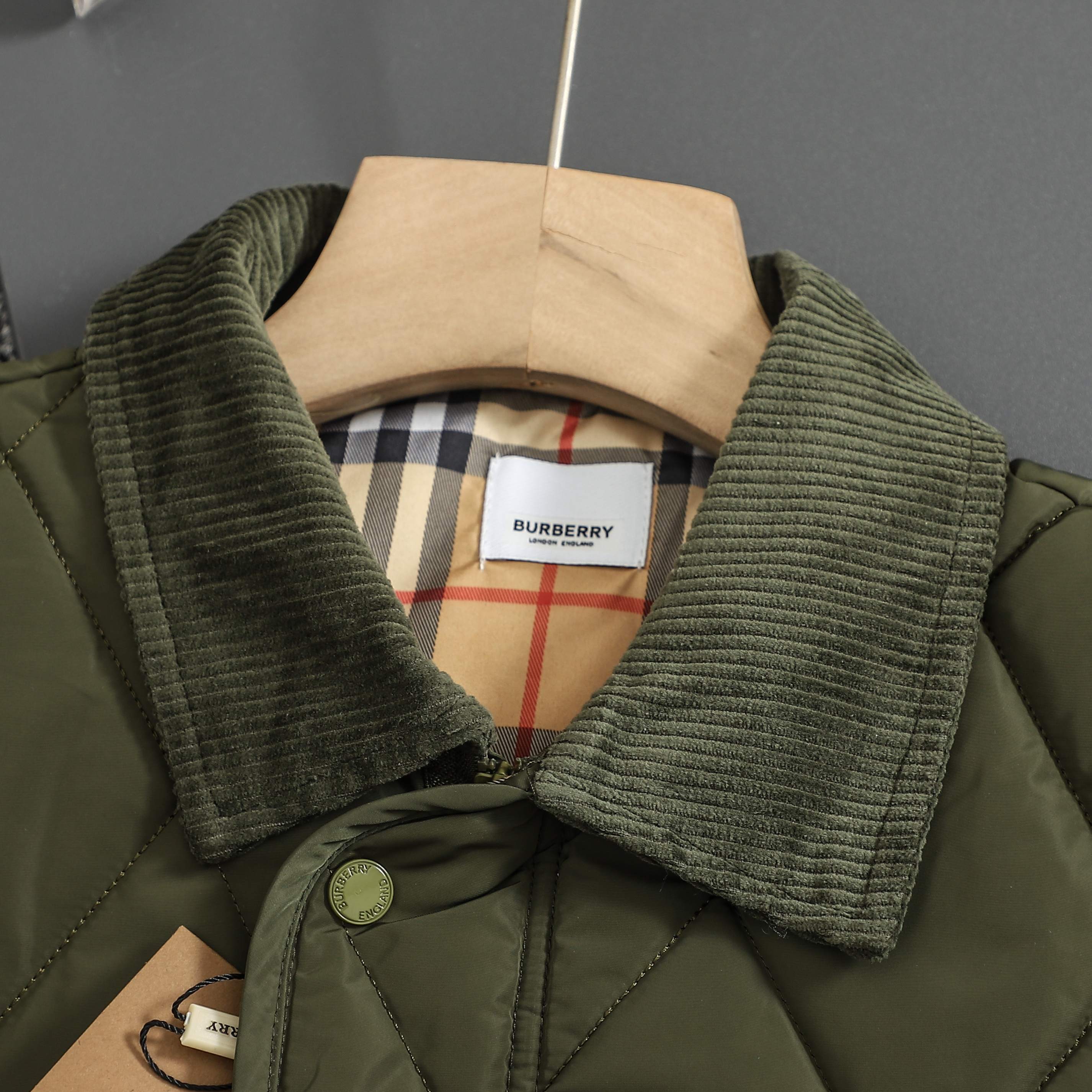 这款衣服是AAAAA 1:1 质量 (非常棒). 使用了和原版一模一样的材料. 商标部分也保持了和巴宝莉/Burberry一样. 图片拍摄是实物衣服拍摄, 您所收到的实物保证和我们图片一模一样.