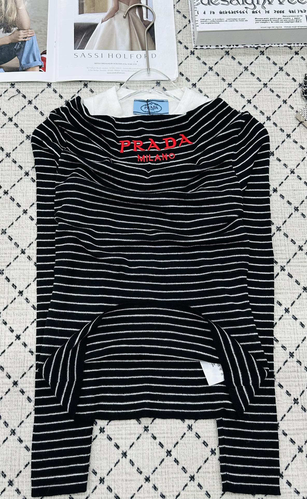 这款衣服是AAAAA 1:1 质量 (非常棒). 使用了和原版一模一样的材料. 商标部分也保持了和普拉达/Prada一样. 图片拍摄是实物衣服拍摄, 您所收到的实物保证和我们图片一模一样.