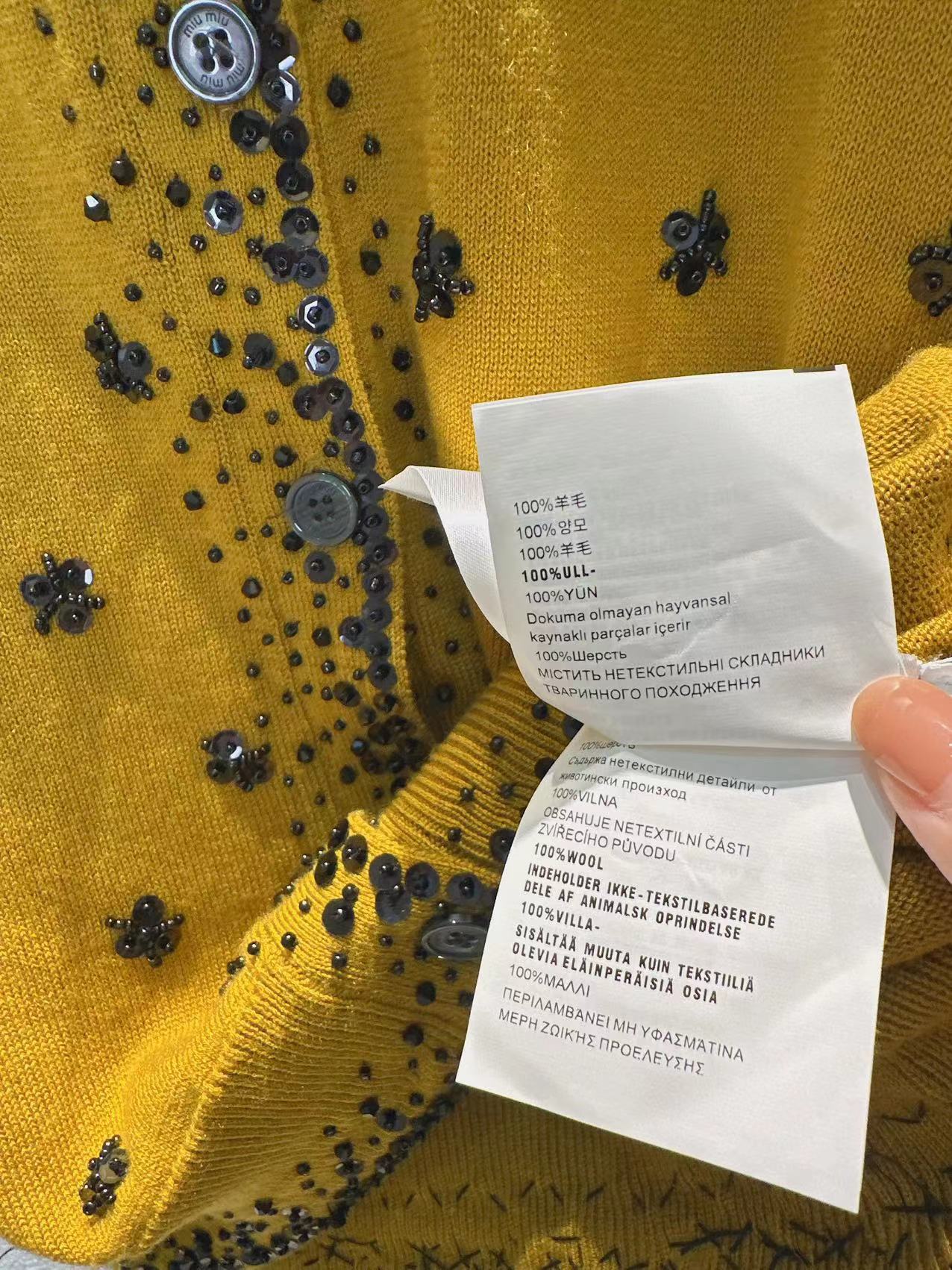 这款衣服是AAAAA 1:1 质量 (非常棒). 使用了和原版一模一样的材料. 商标部分也保持了和缪缪/Miu Miu一样. 图片拍摄是实物衣服拍摄, 您所收到的实物保证和我们图片一模一样.