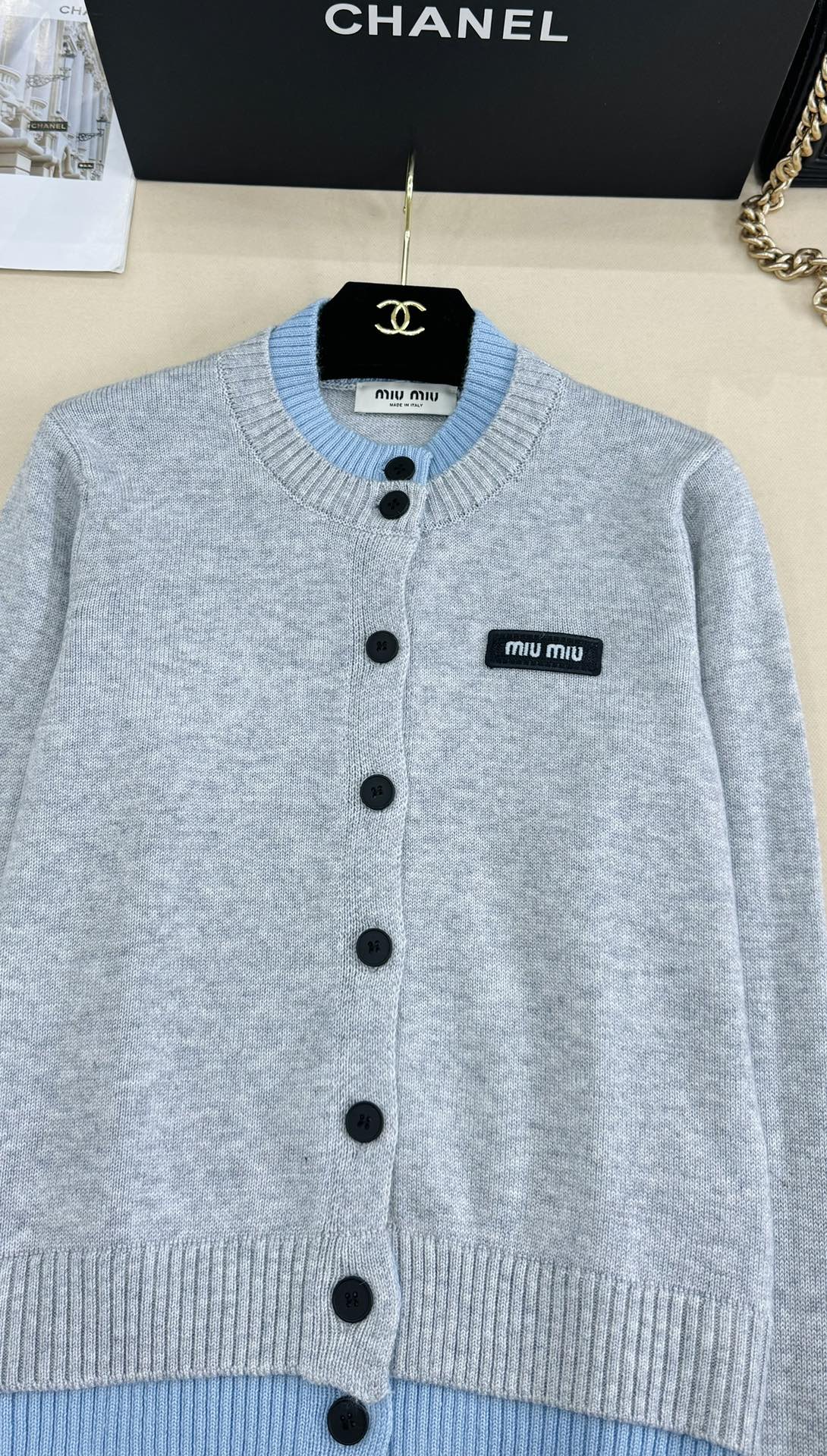 这款衣服是AAAAA 1:1 质量 (非常棒). 使用了和原版一模一样的材料. 商标部分也保持了和缪缪/Miu Miu一样. 图片拍摄是实物衣服拍摄, 您所收到的实物保证和我们图片一模一样.