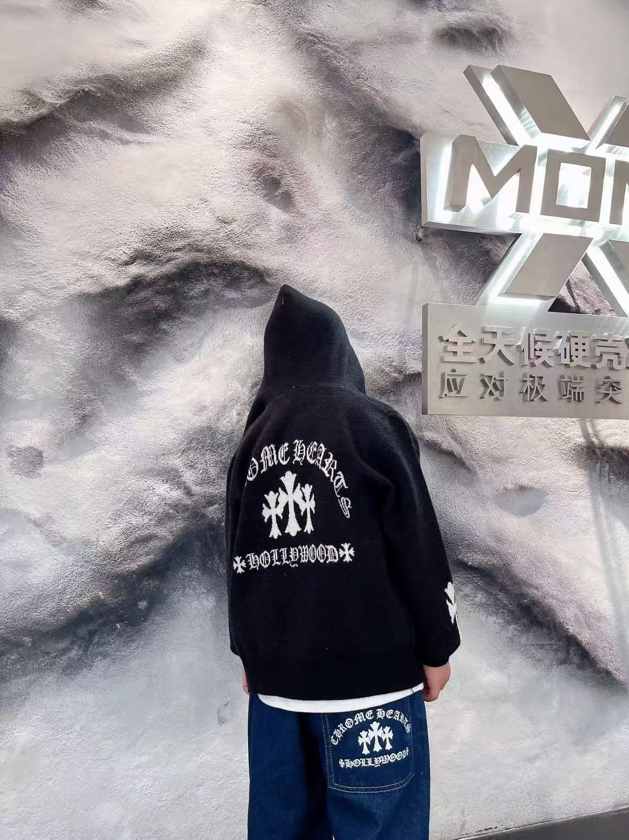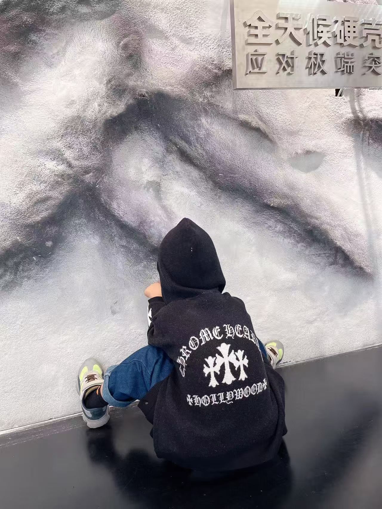 这款children's clothes是AAAAA 1:1 质量 (非常棒). 使用了和原版一模一样的材料. 商标部分也保持了和克罗心/Chrome Hearts一样. 图片拍摄是实物children's clothes拍摄, 您所收到的实物保证和我们图片一模一样.