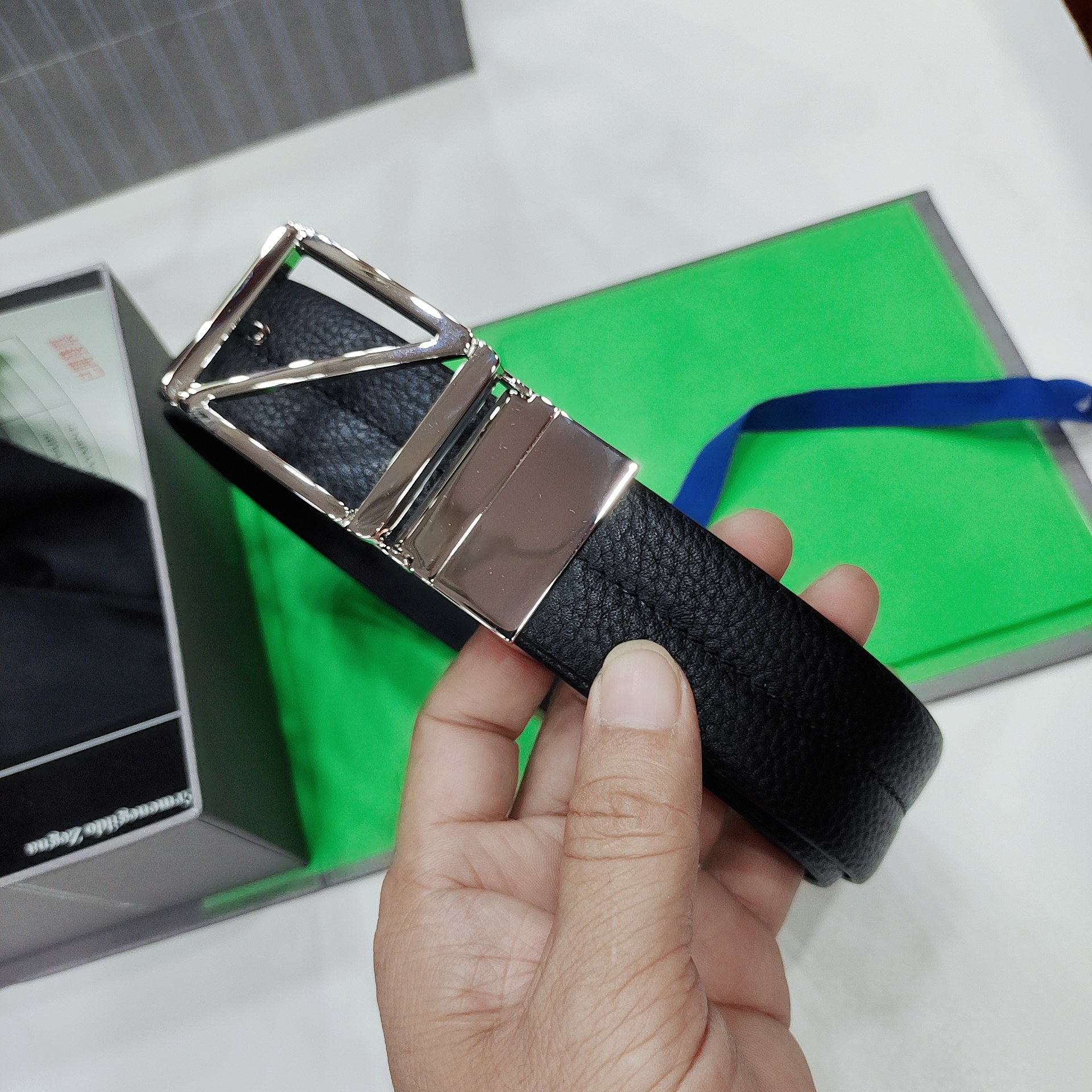 这款皮带是AAAAA 1:1 质量 (非常棒). 使用了和原版一模一样的材料. 商标部分也保持了和杰尼亚/Zegna一样. 图片拍摄是实物皮带拍摄, 您所收到的实物保证和我们图片一模一样.