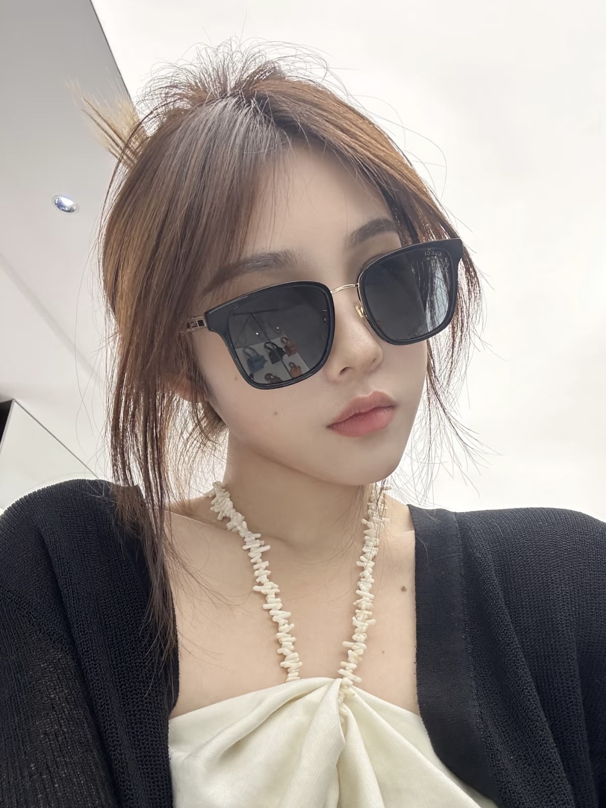 这款太阳眼镜是AAAAA 1:1 质量 (非常棒). 使用了和原版一模一样的材料. 商标部分也保持了和古奇/Gucci一样. 图片拍摄是实物太阳眼镜拍摄, 您所收到的实物保证和我们图片一模一样.