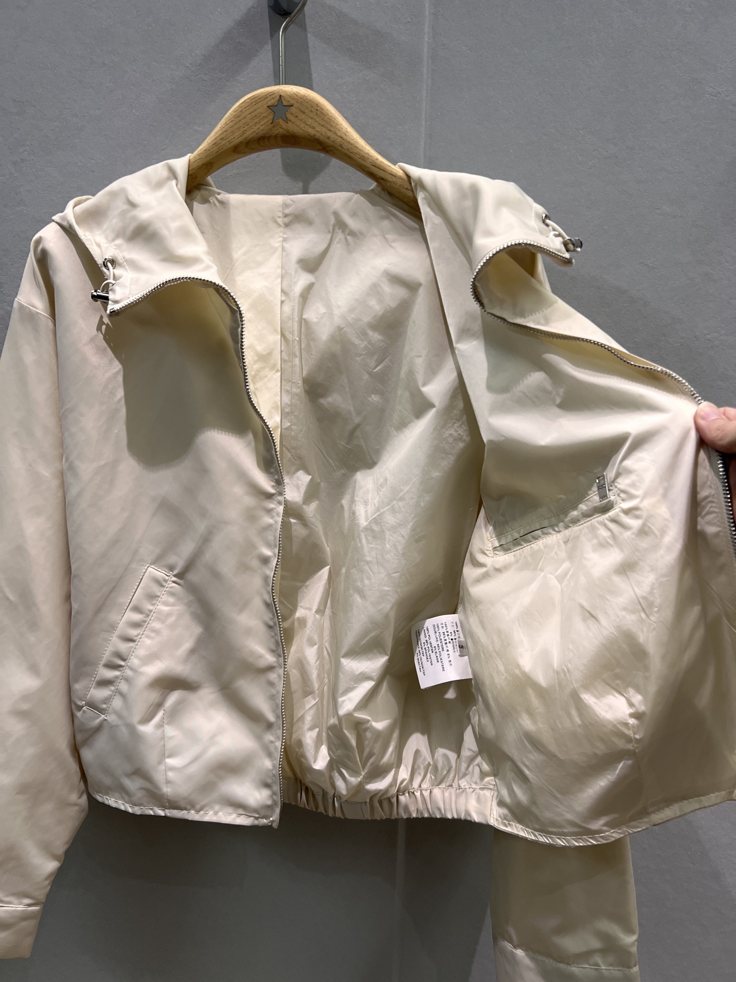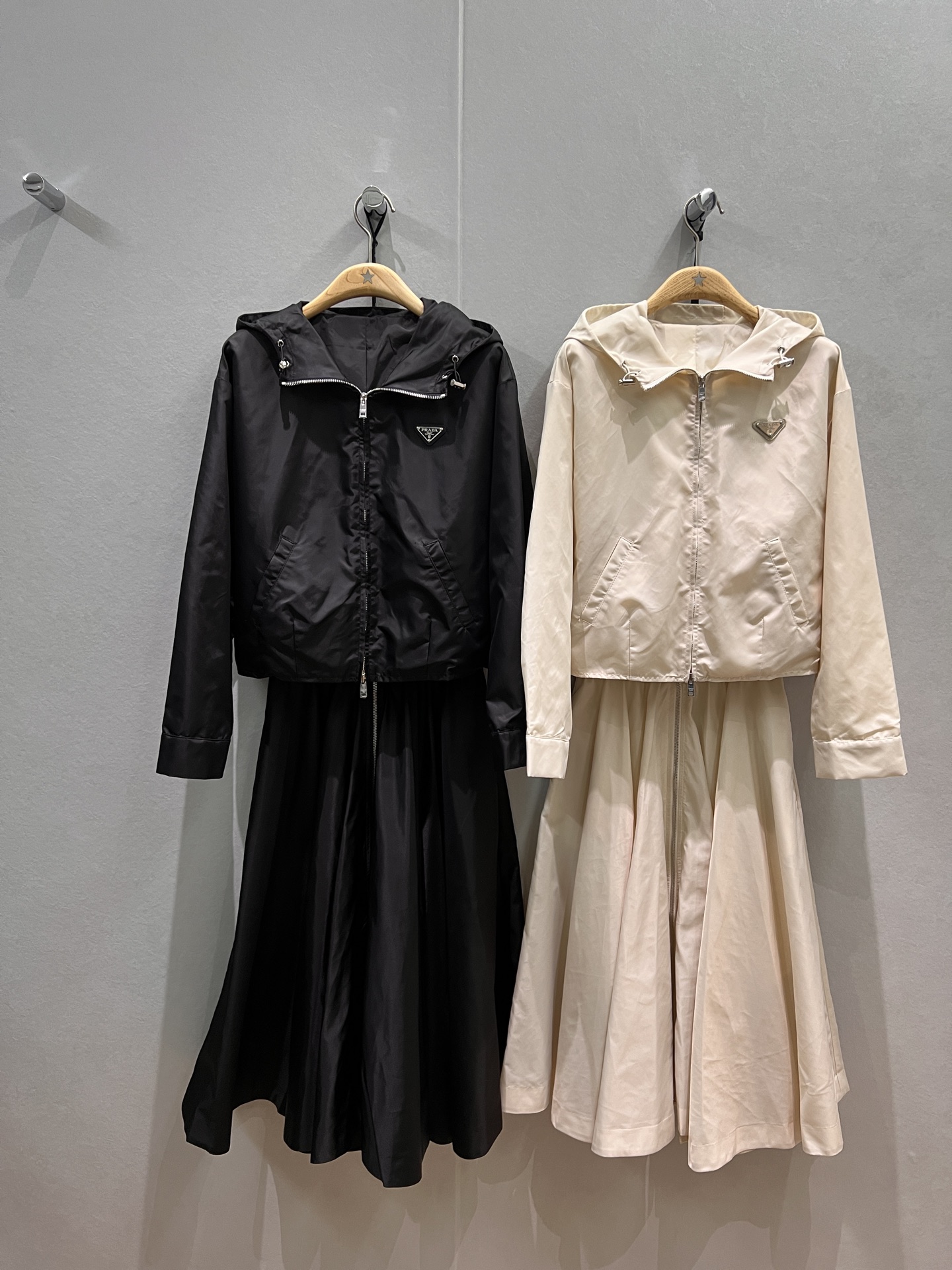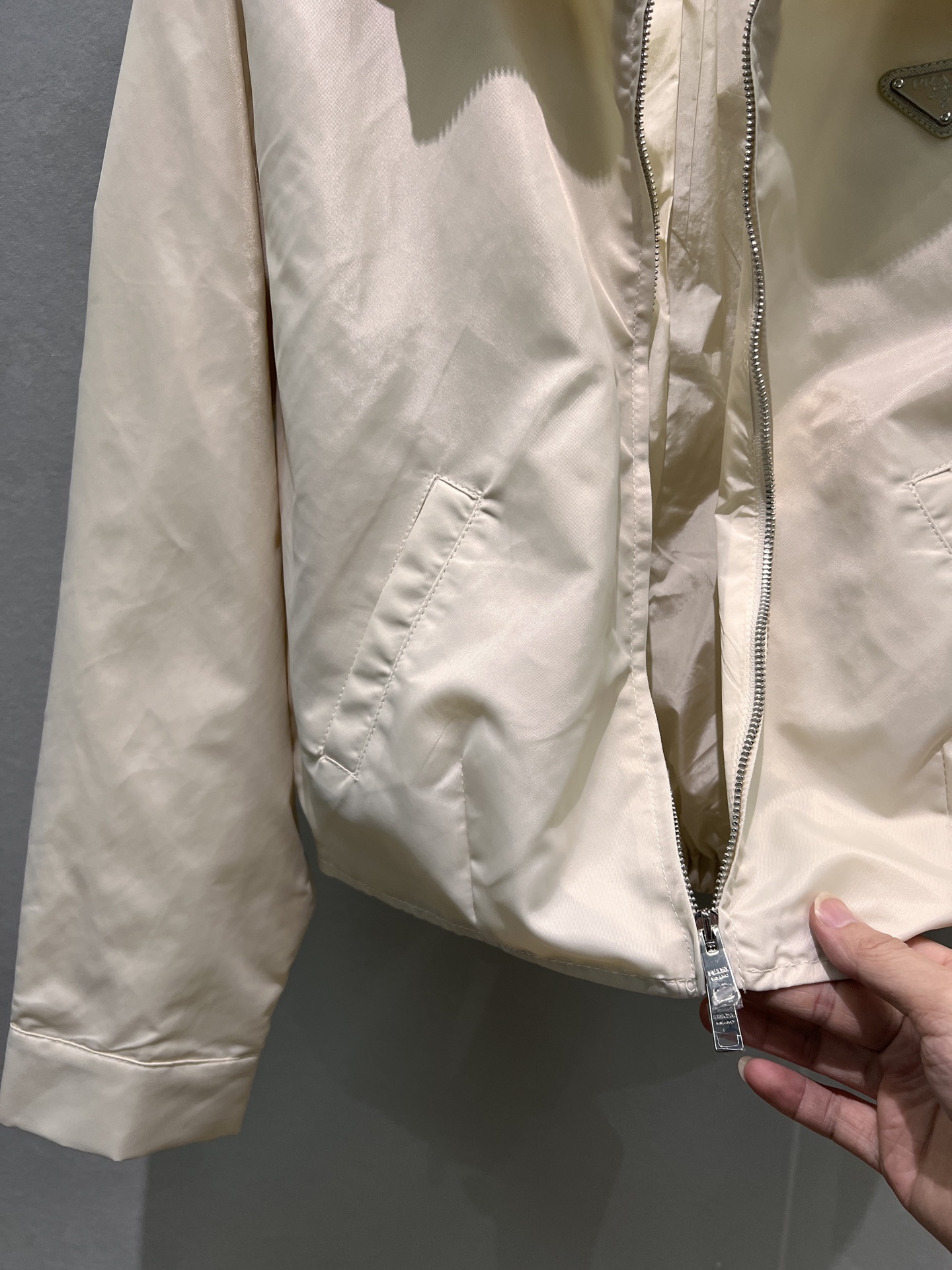 这款衣服是AAAAA 1:1 质量 (非常棒). 使用了和原版一模一样的材料. 商标部分也保持了和普拉达/Prada一样. 图片拍摄是实物衣服拍摄, 您所收到的实物保证和我们图片一模一样.