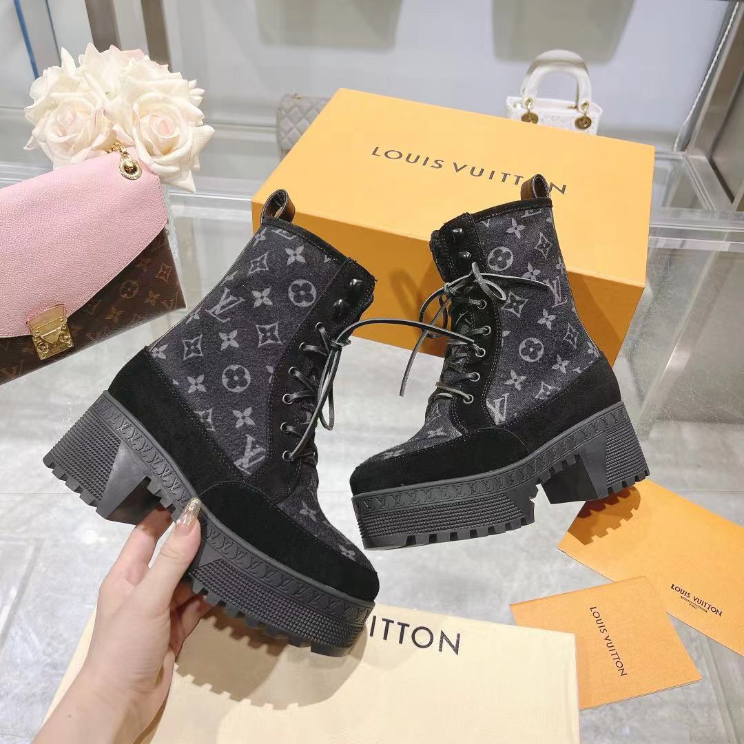 这款鞋子是AAAAA 1:1 质量 (非常棒). 使用了和原版一模一样的材料. 商标部分也保持了和路易威登/Louis Vuitton一样. 图片拍摄是实物鞋子拍摄, 您所收到的实物保证和我们图片一模一样.