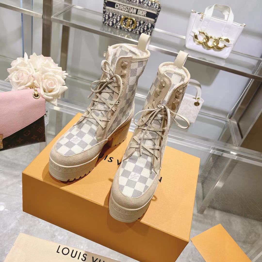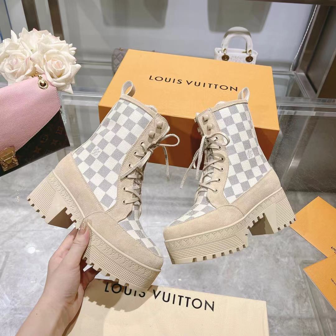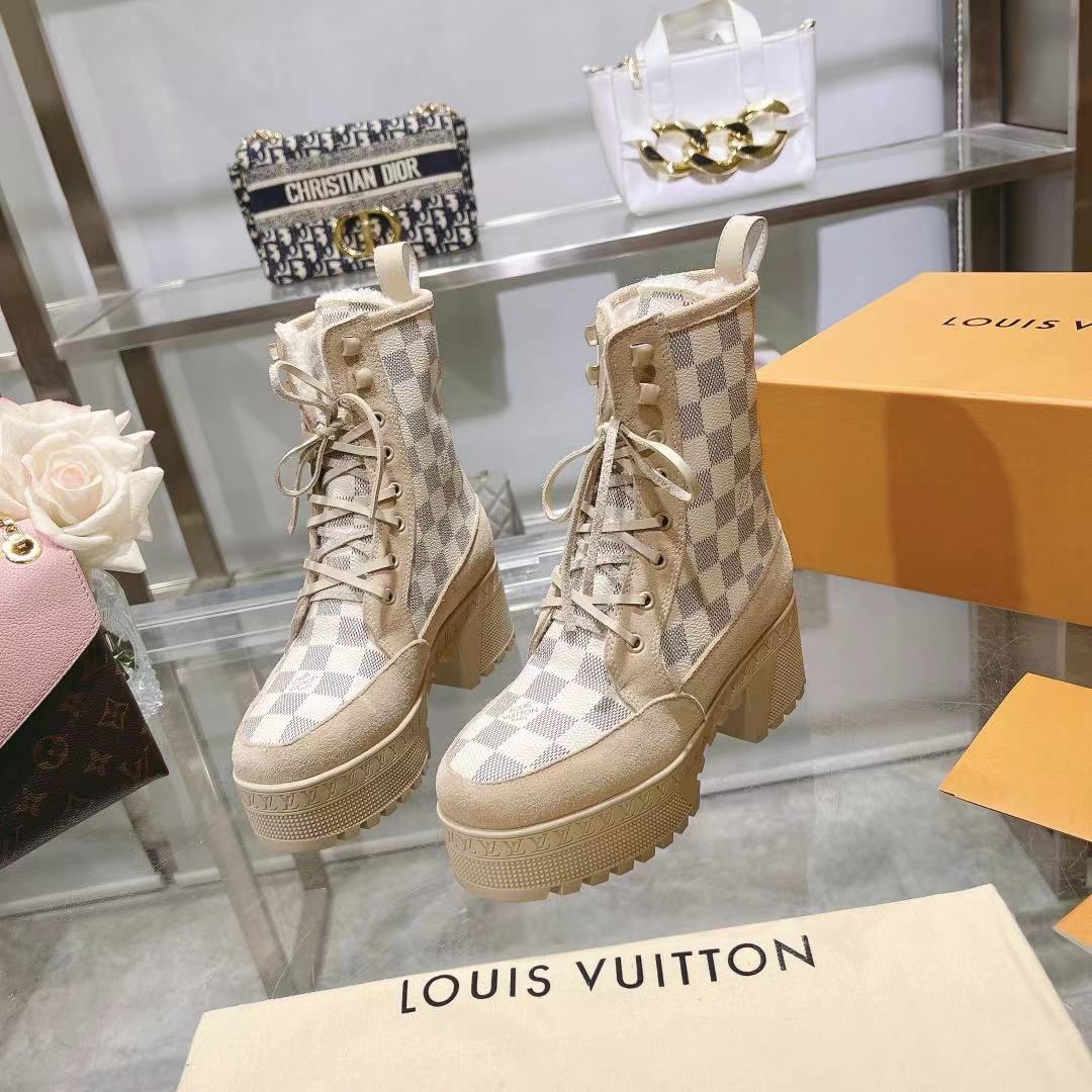 这款鞋子是AAAAA 1:1 质量 (非常棒). 使用了和原版一模一样的材料. 商标部分也保持了和路易威登/Louis Vuitton一样. 图片拍摄是实物鞋子拍摄, 您所收到的实物保证和我们图片一模一样.