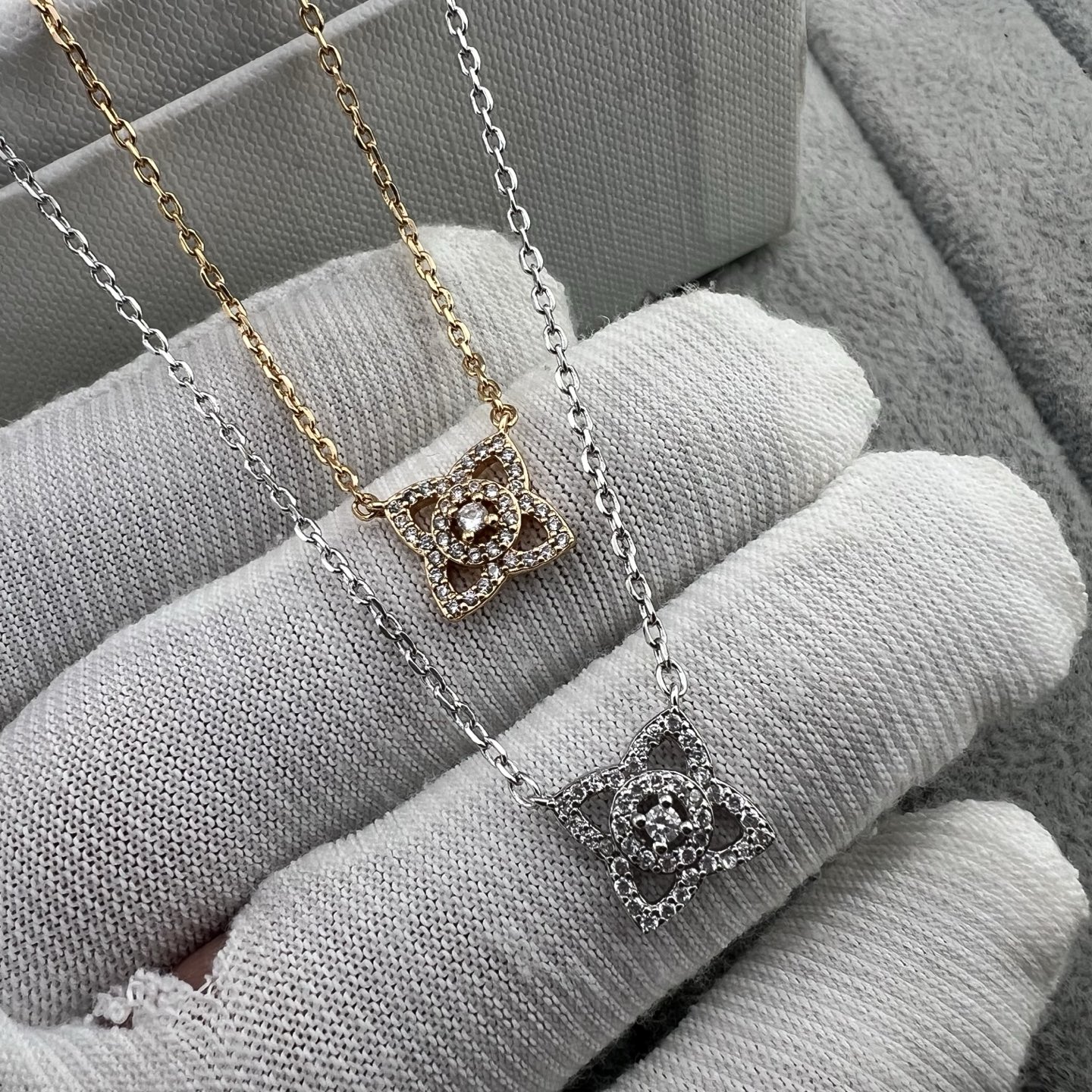 这款首饰是AAAAA 1:1 质量 (非常棒). 使用了和原版一模一样的材料. 商标部分也保持了和一样. 图片拍摄是实物首饰拍摄, 您所收到的实物保证和我们图片一模一样.