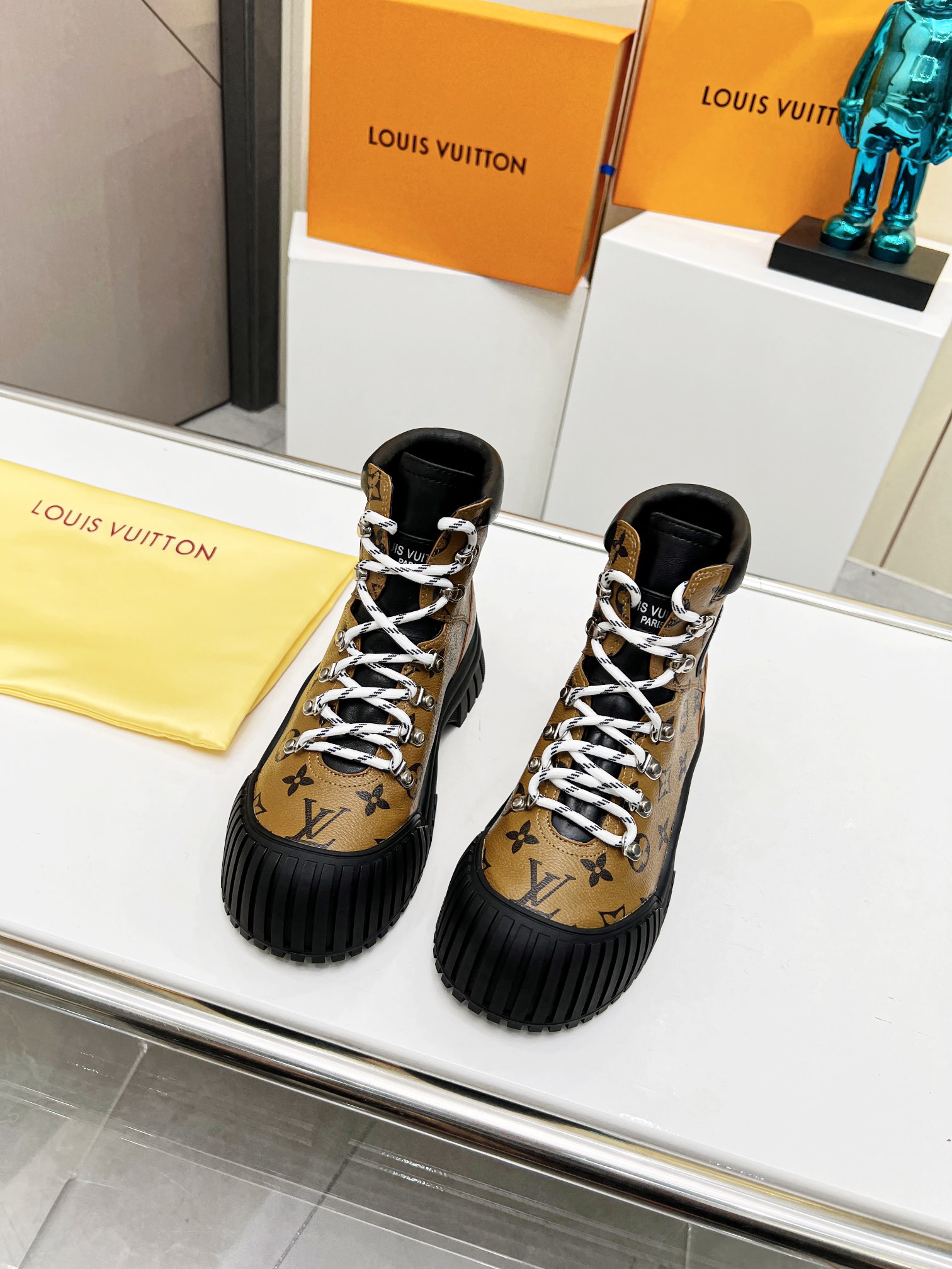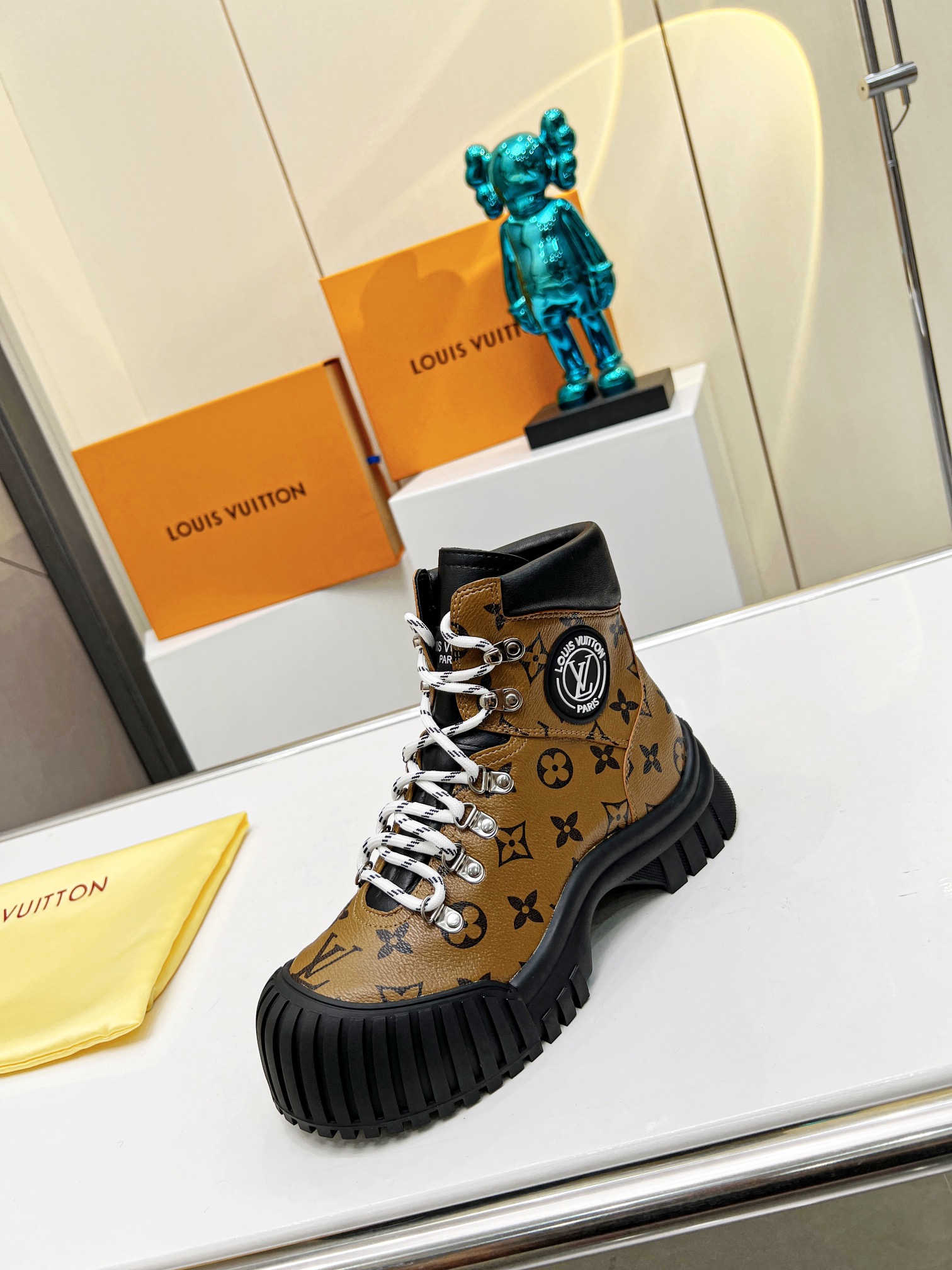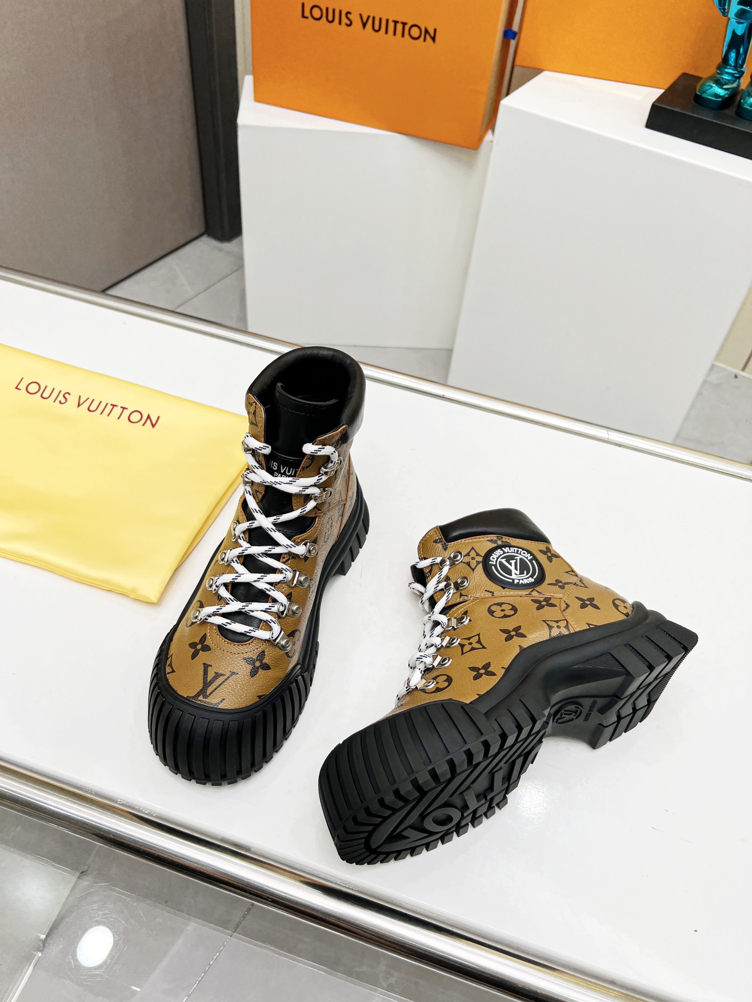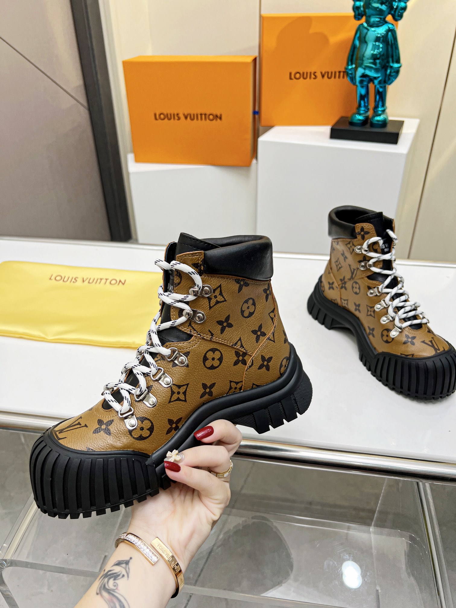 这款鞋子是AAAAA 1:1 质量 (非常棒). 使用了和原版一模一样的材料. 商标部分也保持了和路易威登/Louis Vuitton一样. 图片拍摄是实物鞋子拍摄, 您所收到的实物保证和我们图片一模一样.