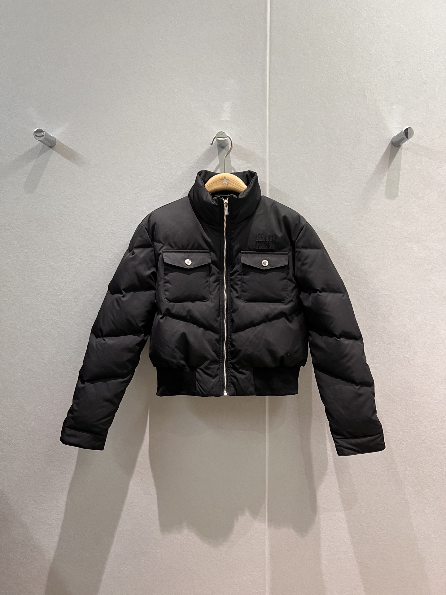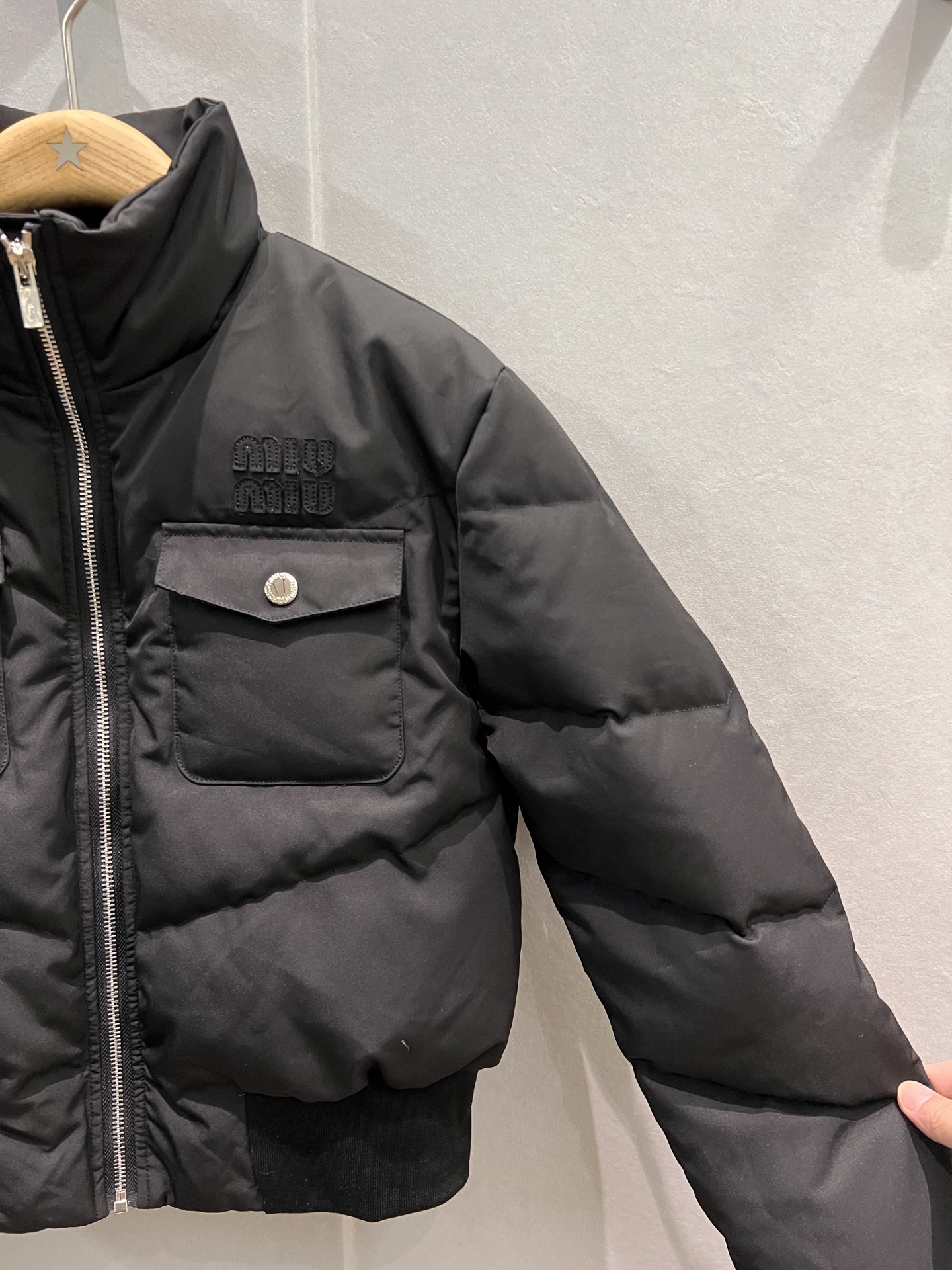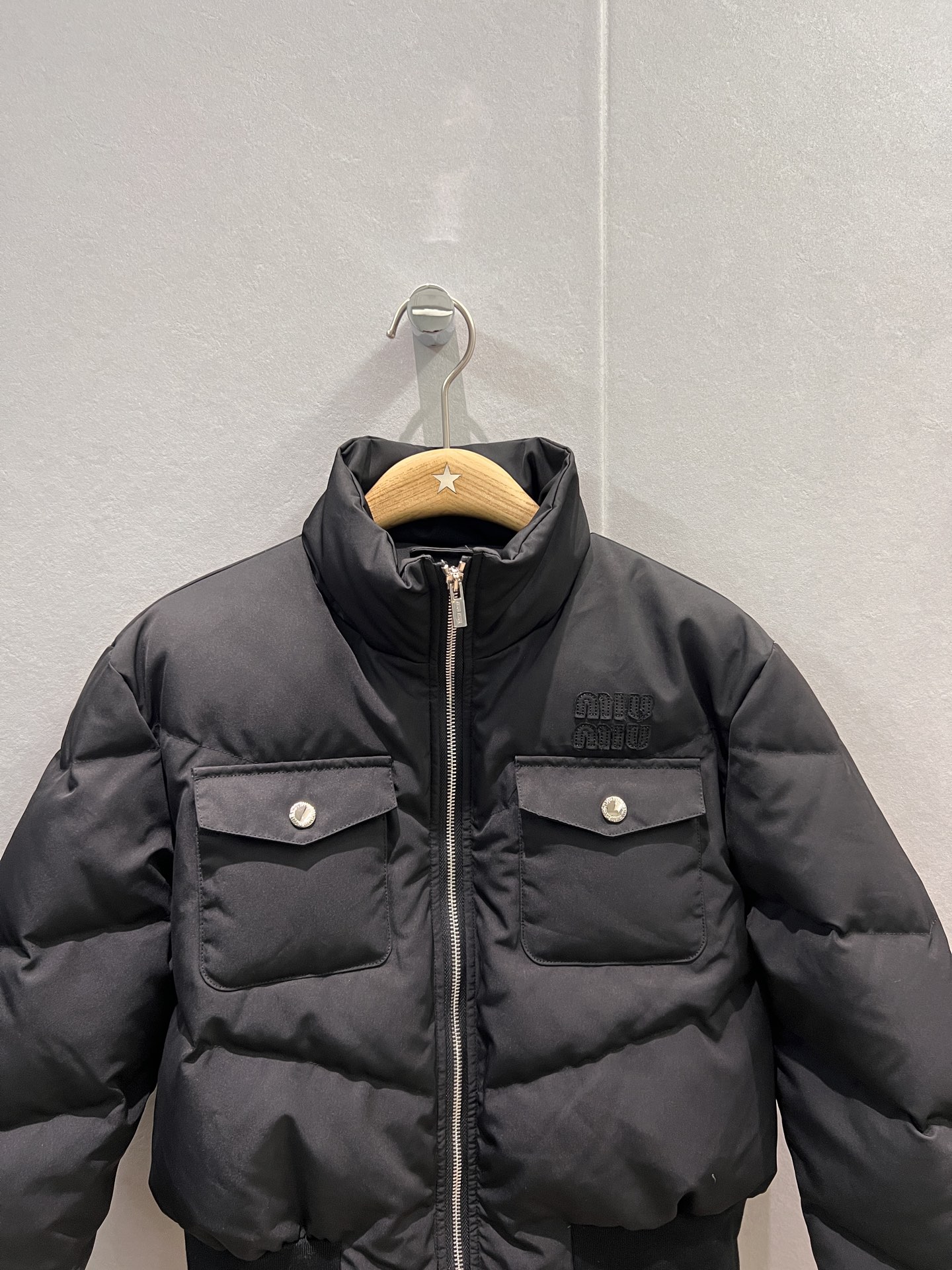 这款衣服是AAAAA 1:1 质量 (非常棒). 使用了和原版一模一样的材料. 商标部分也保持了和缪缪/Miu Miu一样. 图片拍摄是实物衣服拍摄, 您所收到的实物保证和我们图片一模一样.