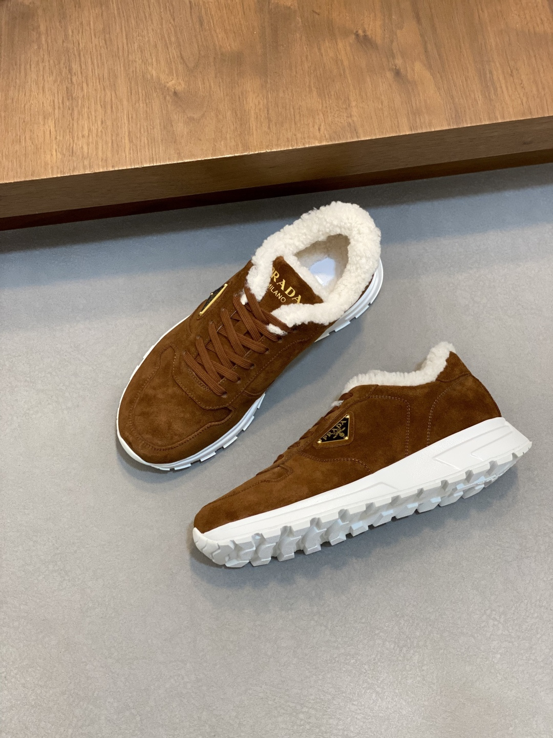 这款鞋子是AAAAA 1:1 质量 (非常棒). 使用了和原版一模一样的材料. 商标部分也保持了和普拉达/Prada一样. 图片拍摄是实物鞋子拍摄, 您所收到的实物保证和我们图片一模一样.