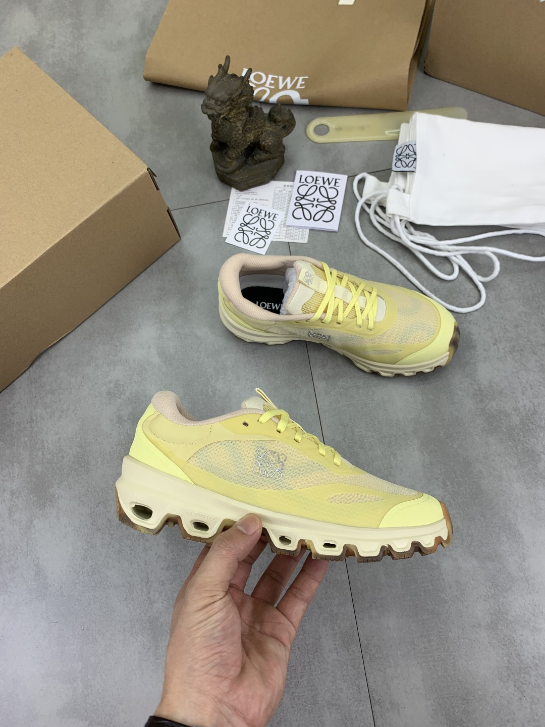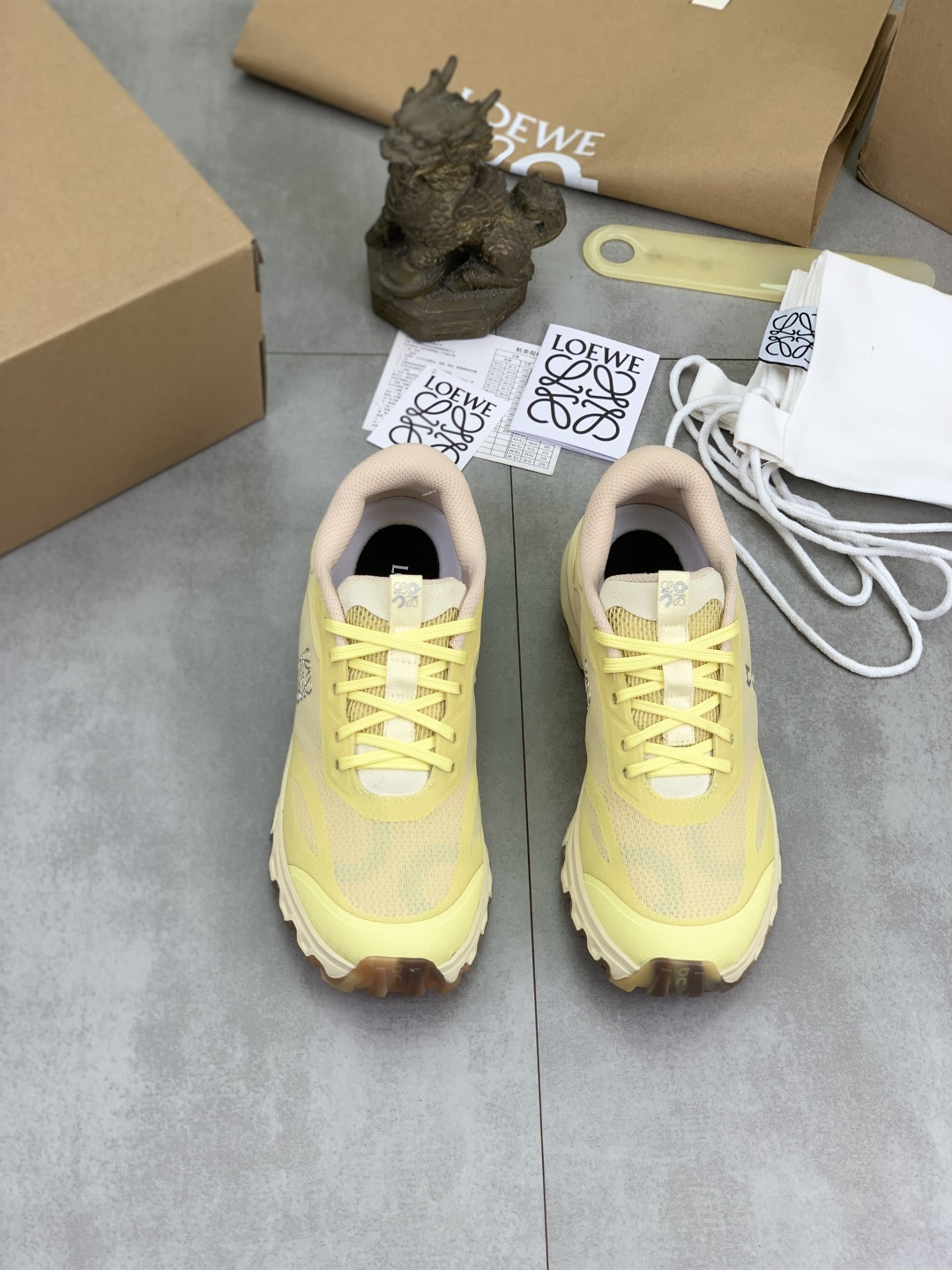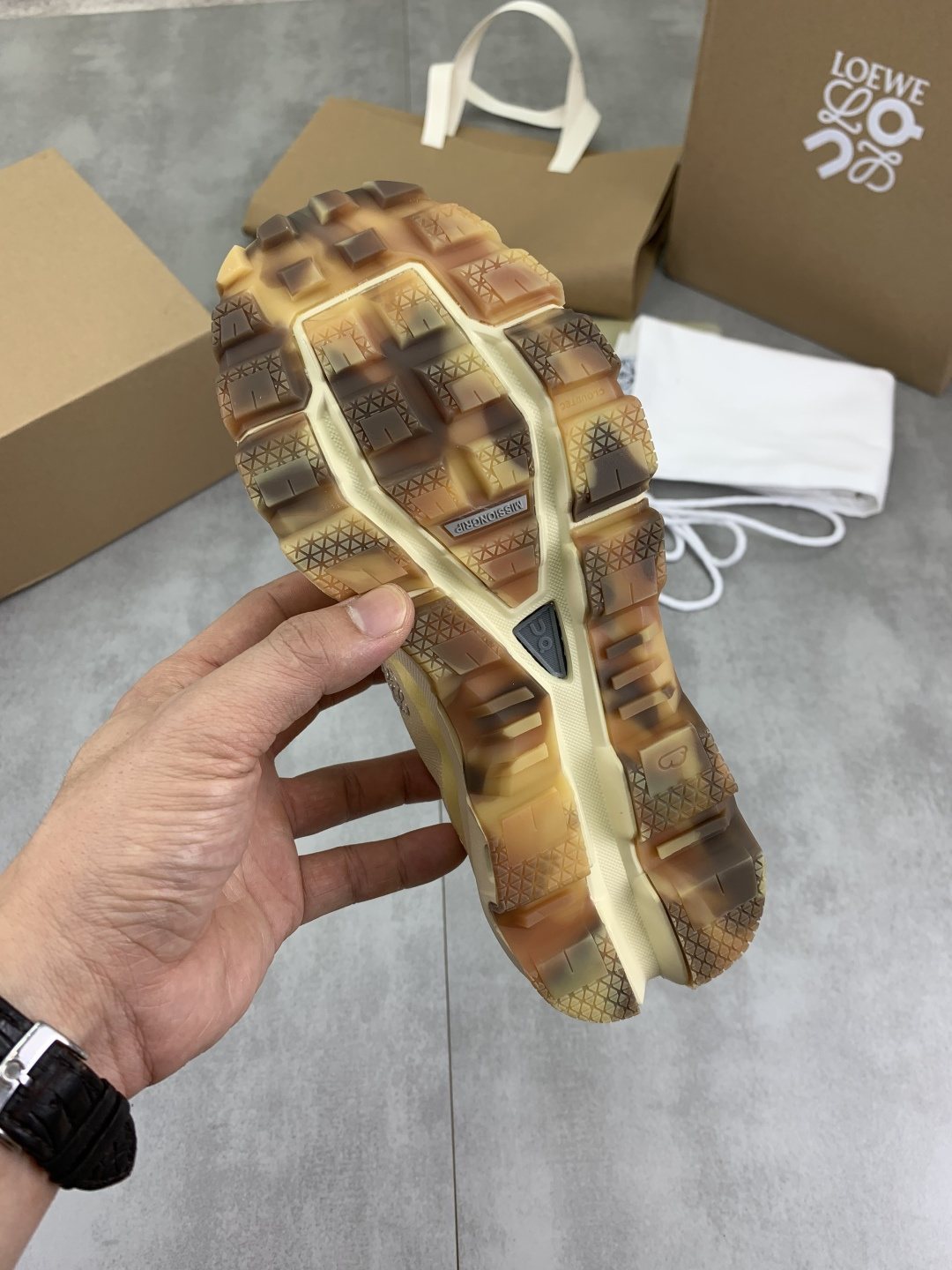 这款鞋子是AAAAA 1:1 质量 (非常棒). 使用了和原版一模一样的材料. 商标部分也保持了和罗意威/Loewe一样. 图片拍摄是实物鞋子拍摄, 您所收到的实物保证和我们图片一模一样.