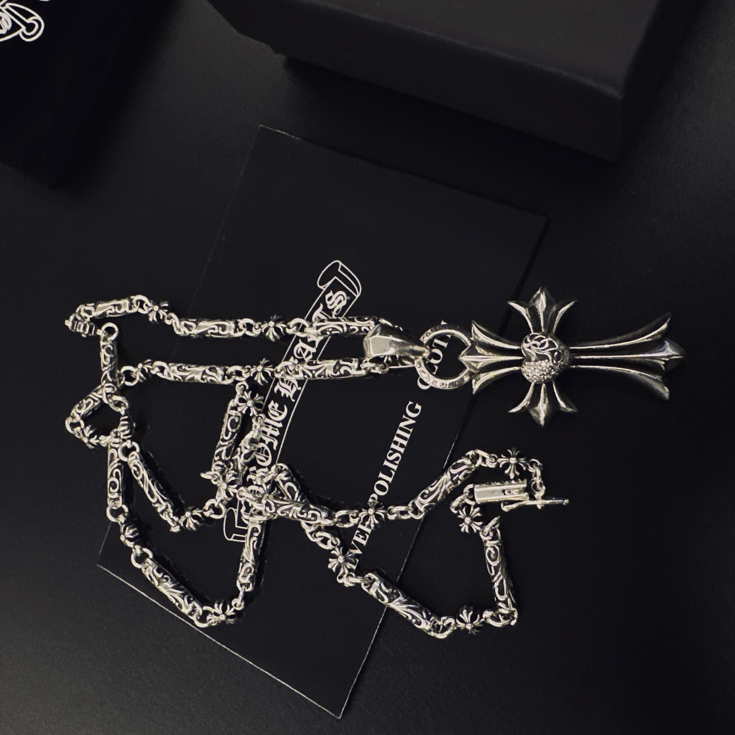 这款首饰是AAAAA 1:1 质量 (非常棒). 使用了和原版一模一样的材料. 商标部分也保持了和克罗心/Chrome Hearts一样. 图片拍摄是实物首饰拍摄, 您所收到的实物保证和我们图片一模一样.