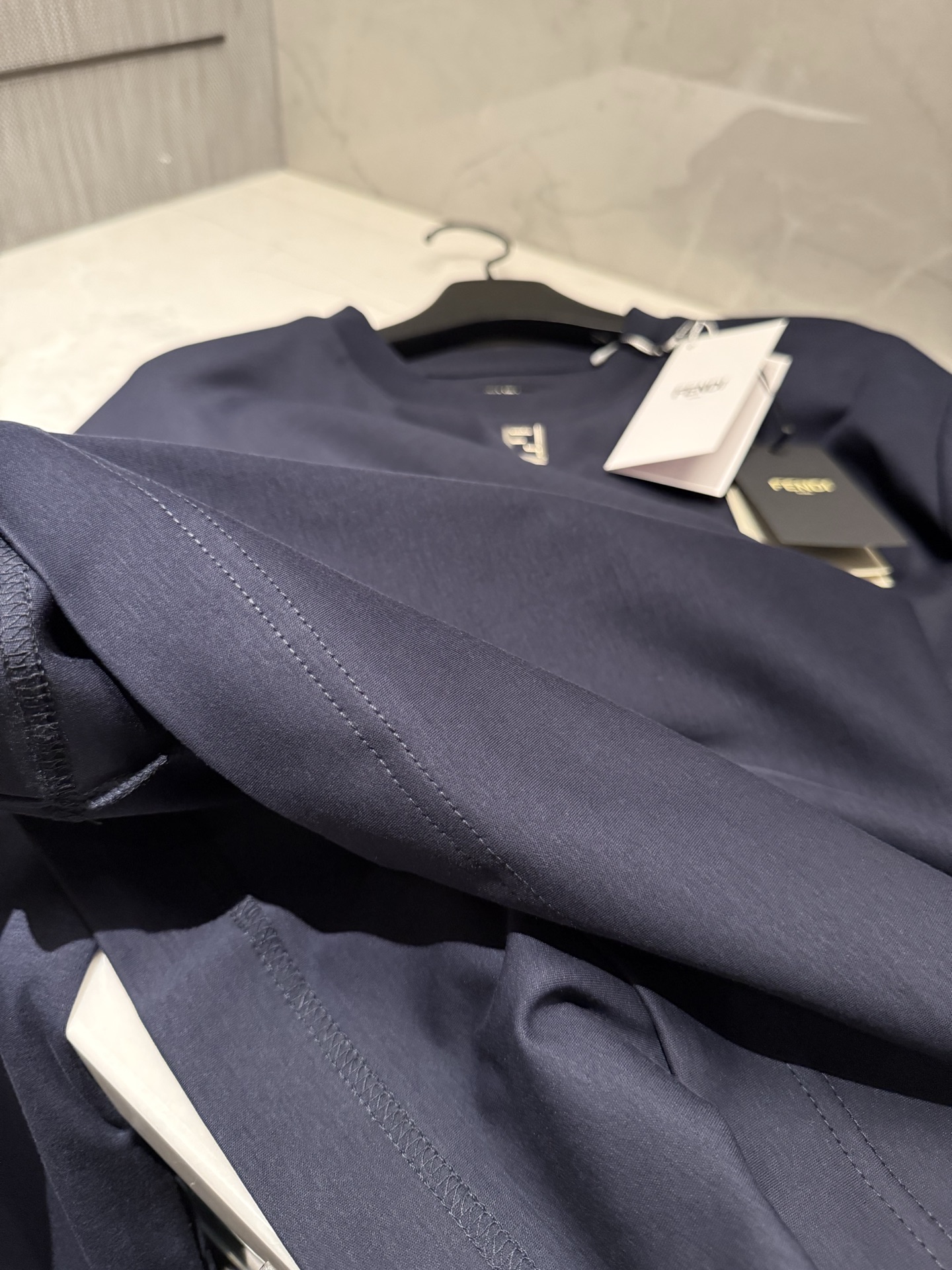 这款衣服是AAAAA 1:1 质量 (非常棒). 使用了和原版一模一样的材料. 商标部分也保持了和芬迪/Fendi一样. 图片拍摄是实物衣服拍摄, 您所收到的实物保证和我们图片一模一样.