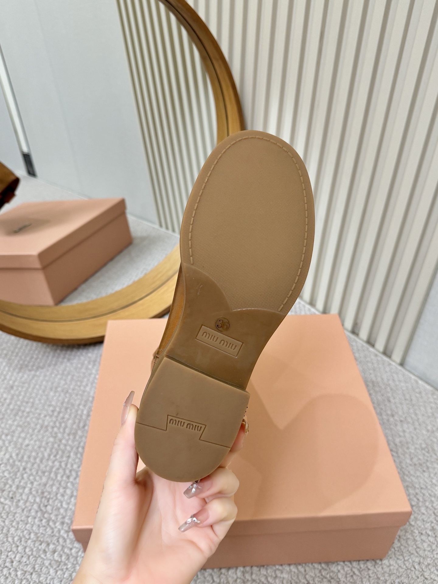 这款鞋子是AAAAA 1:1 质量 (非常棒). 使用了和原版一模一样的材料. 商标部分也保持了和缪缪/Miu Miu一样. 图片拍摄是实物鞋子拍摄, 您所收到的实物保证和我们图片一模一样.