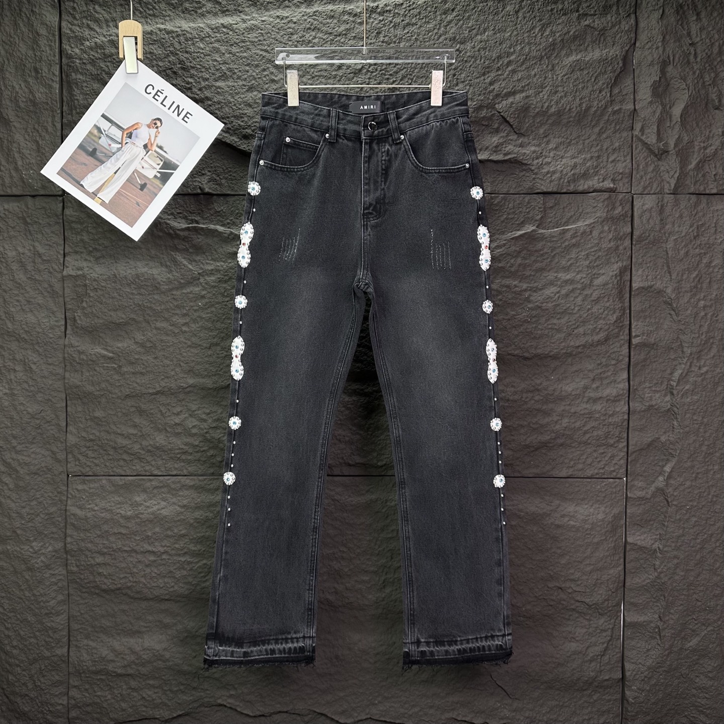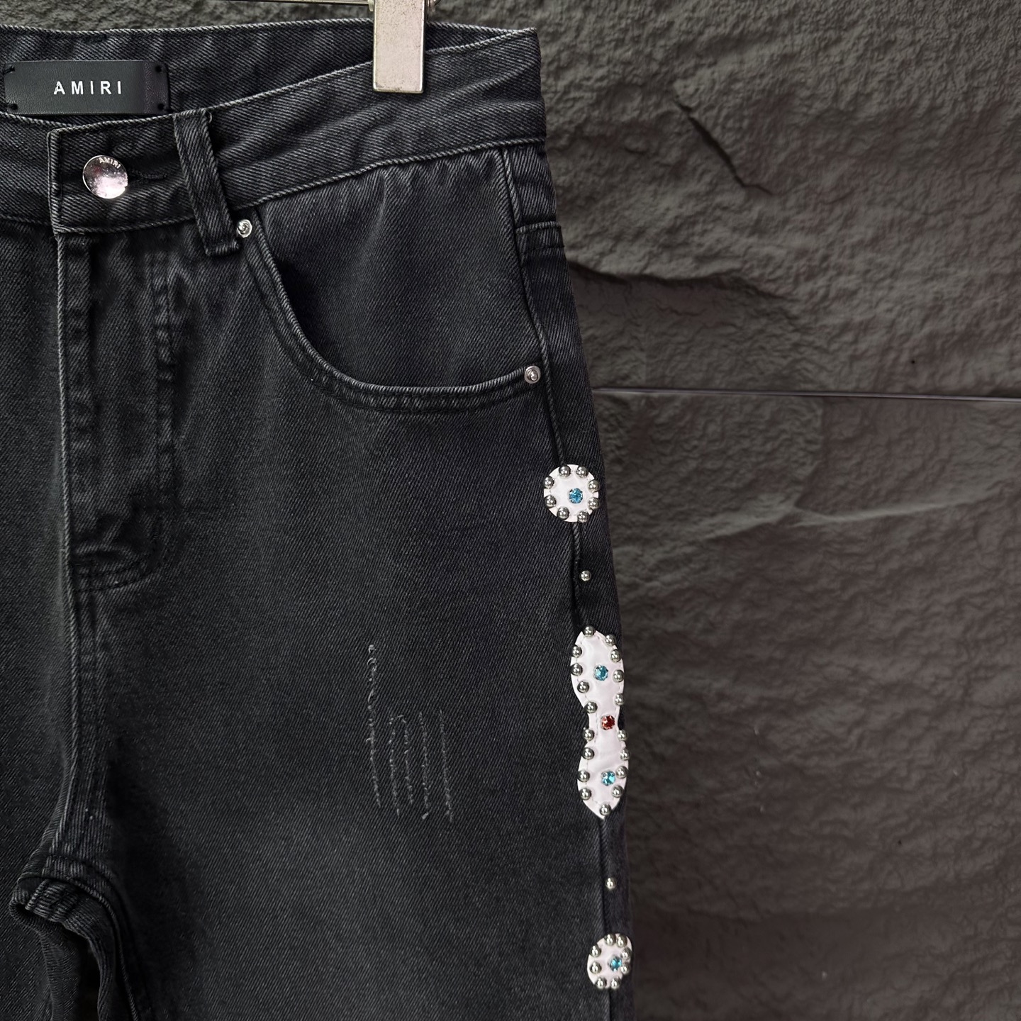 这款衣服是AAAAA 1:1 质量 (非常棒). 使用了和原版一模一样的材料. 商标部分也保持了和AMIRI一样. 图片拍摄是实物衣服拍摄, 您所收到的实物保证和我们图片一模一样.
