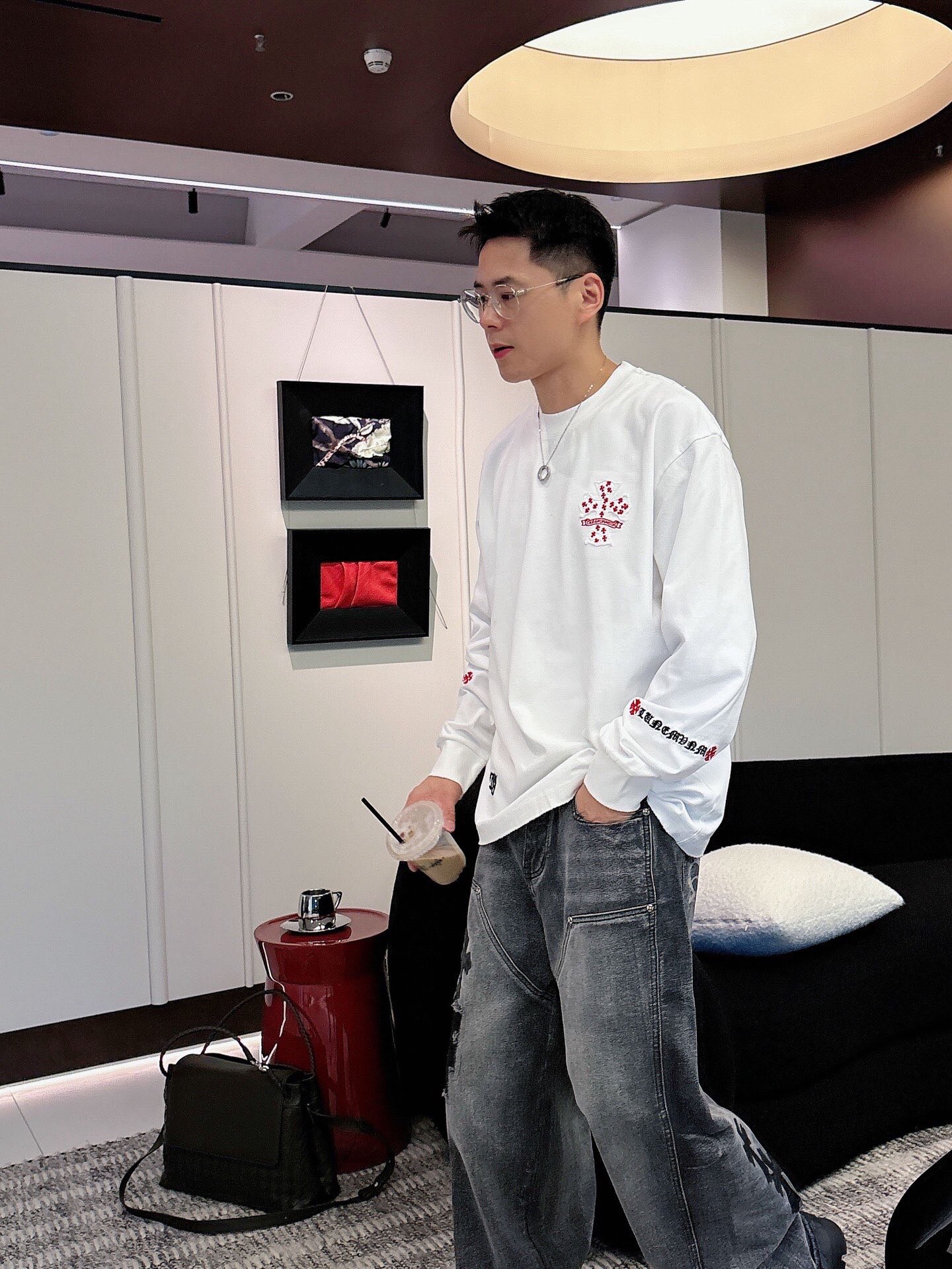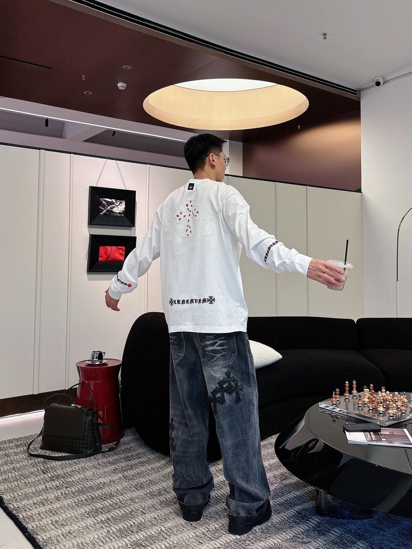这款衣服是AAAAA 1:1 质量 (非常棒). 使用了和原版一模一样的材料. 商标部分也保持了和克罗心/Chrome Hearts一样. 图片拍摄是实物衣服拍摄, 您所收到的实物保证和我们图片一模一样.