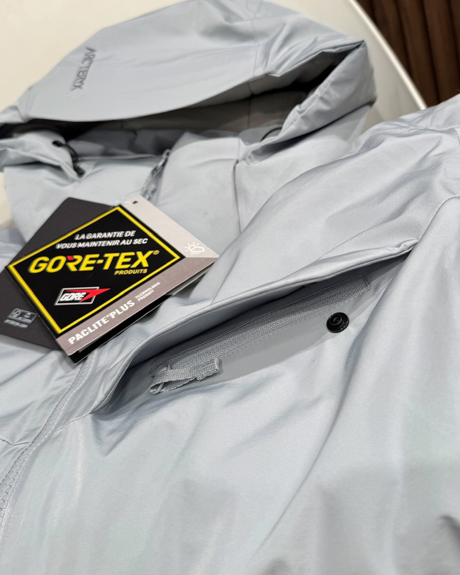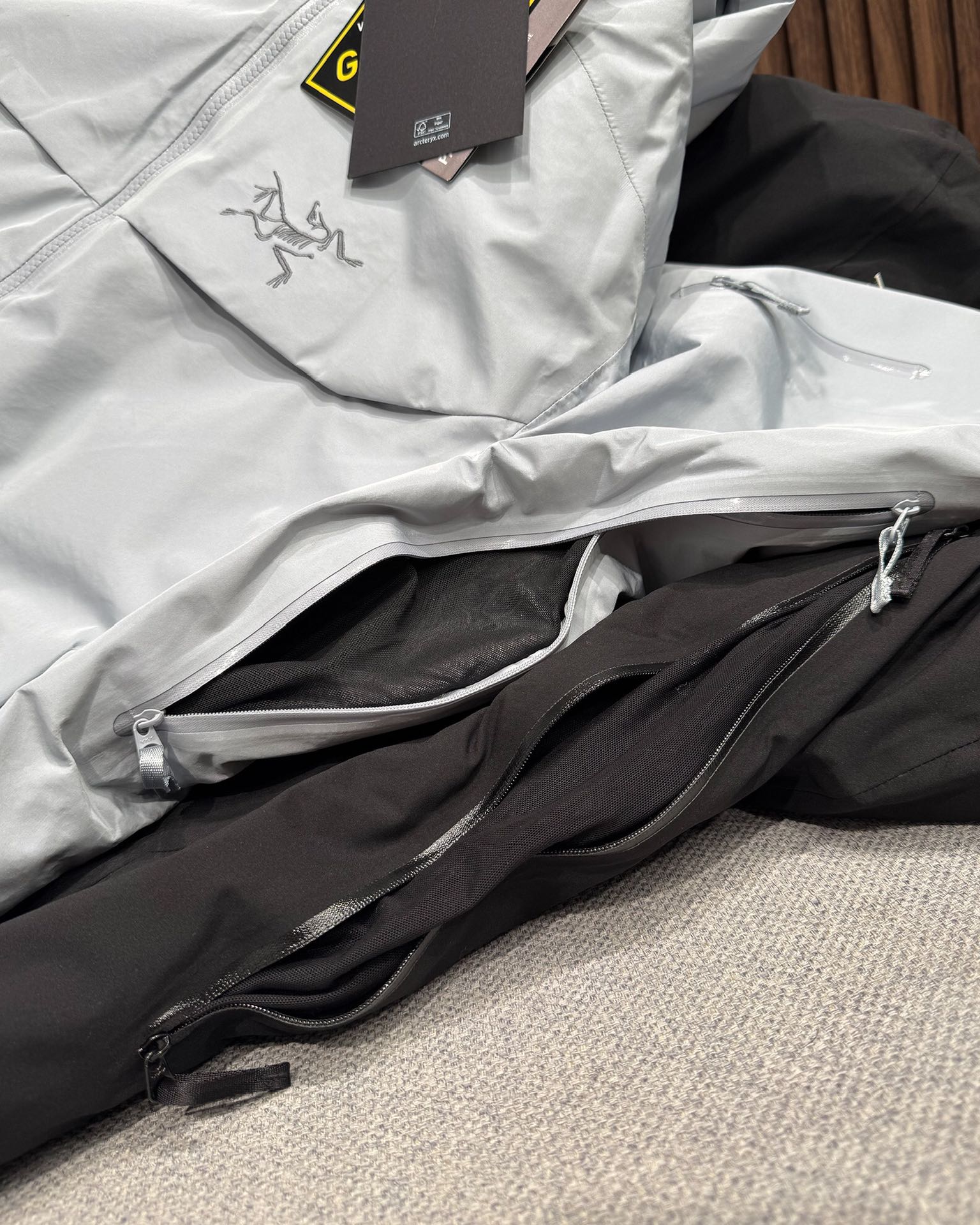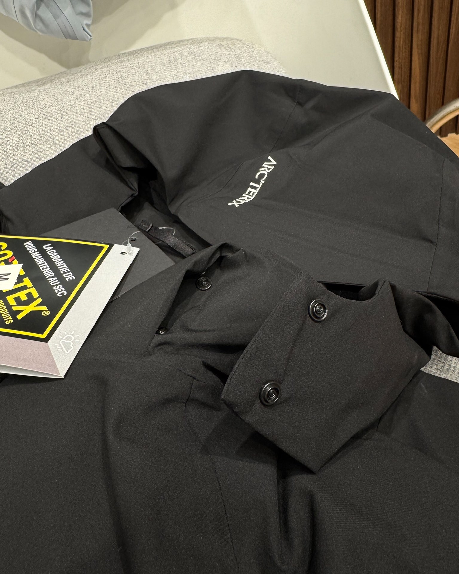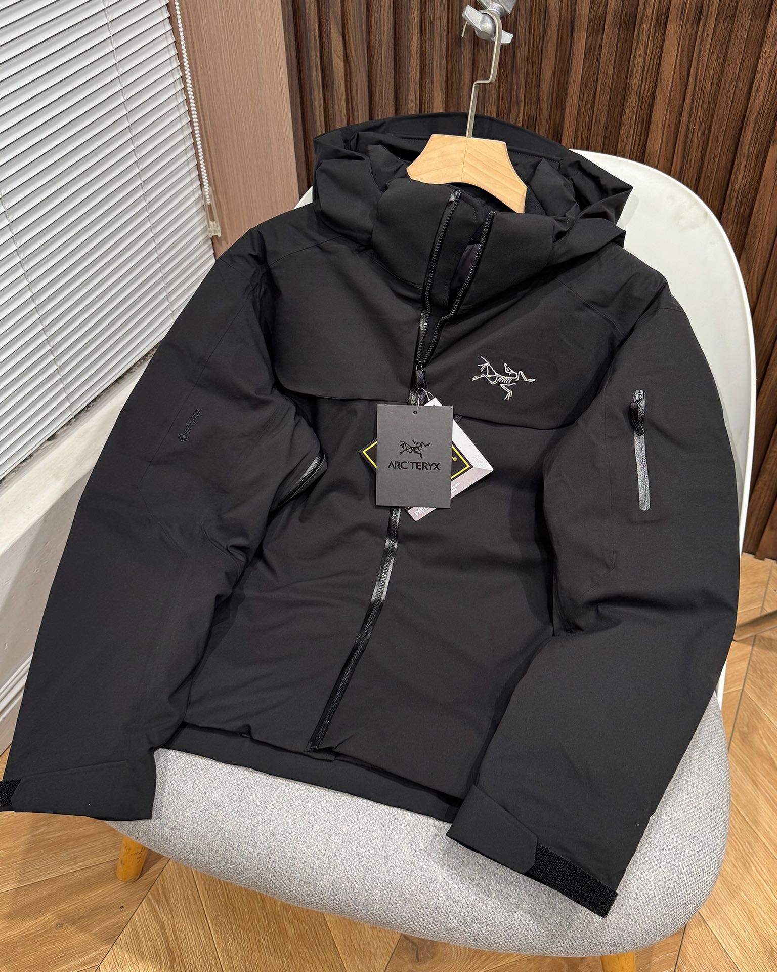 这款衣服是AAAAA 1:1 质量 (非常棒). 使用了和原版一模一样的材料. 商标部分也保持了和ARC'TERYX一样. 图片拍摄是实物衣服拍摄, 您所收到的实物保证和我们图片一模一样.