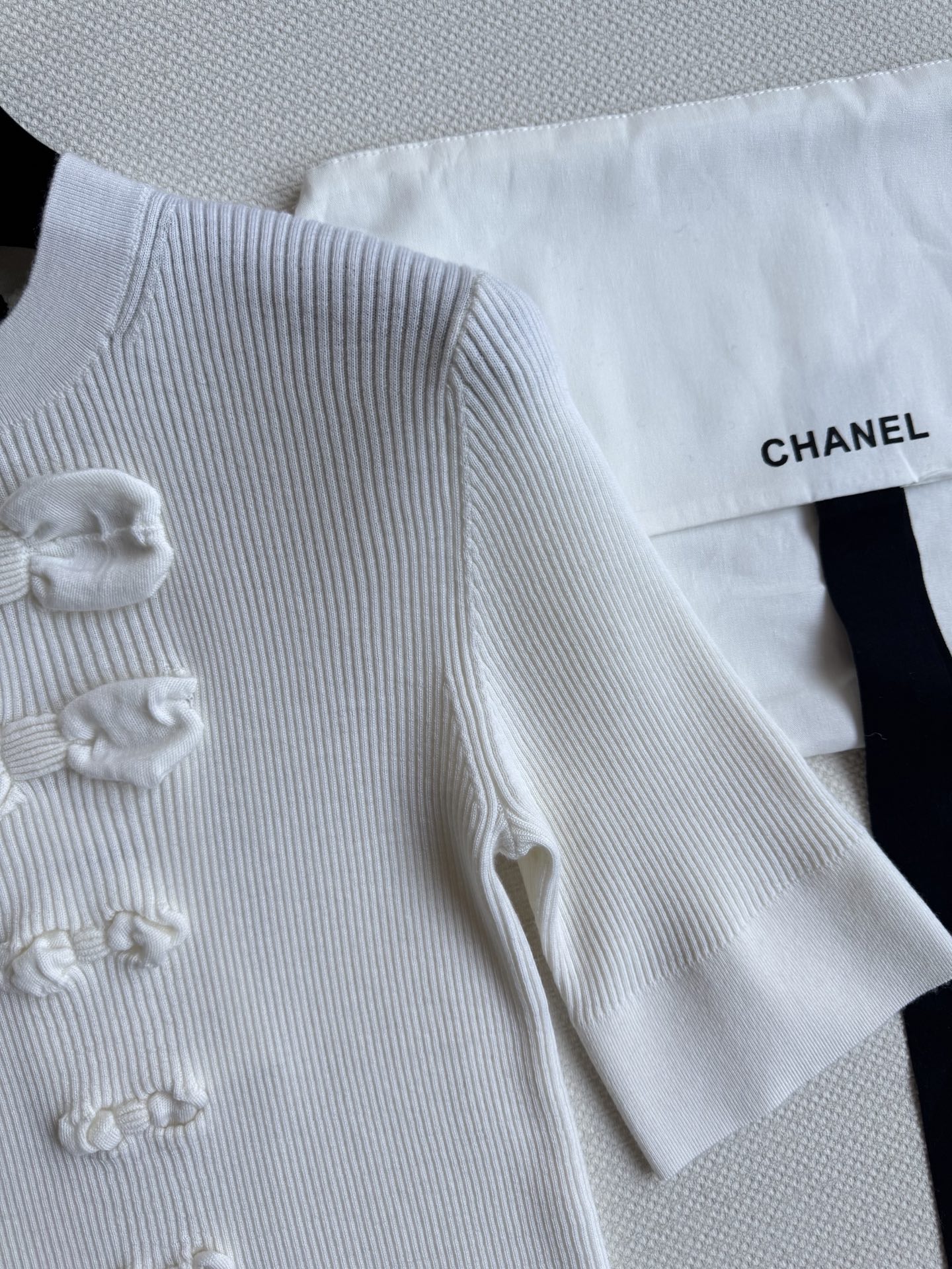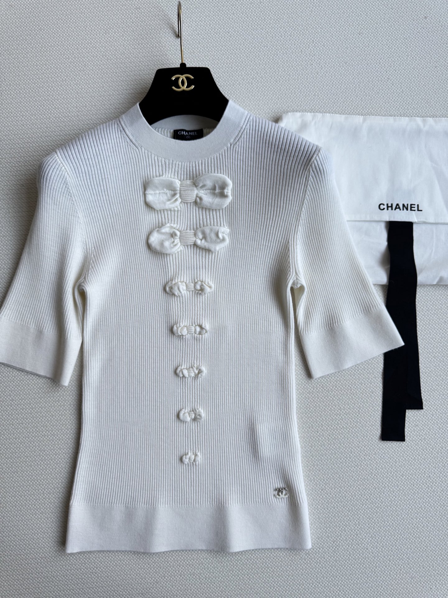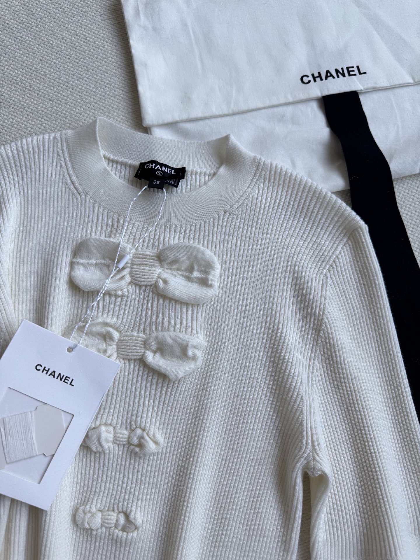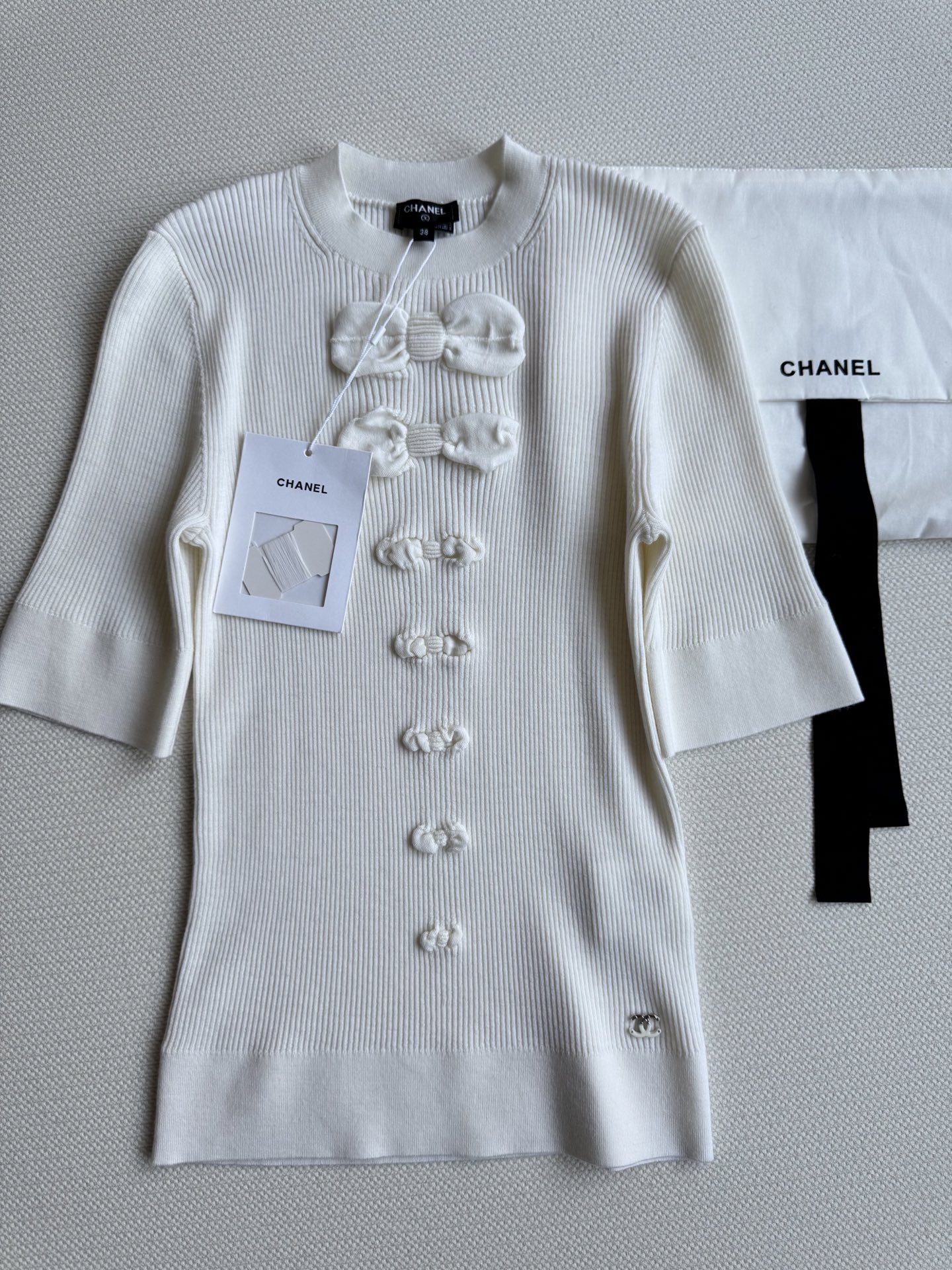 这款衣服是AAAAA 1:1 质量 (非常棒). 使用了和原版一模一样的材料. 商标部分也保持了和香奈儿/Chanel一样. 图片拍摄是实物衣服拍摄, 您所收到的实物保证和我们图片一模一样.