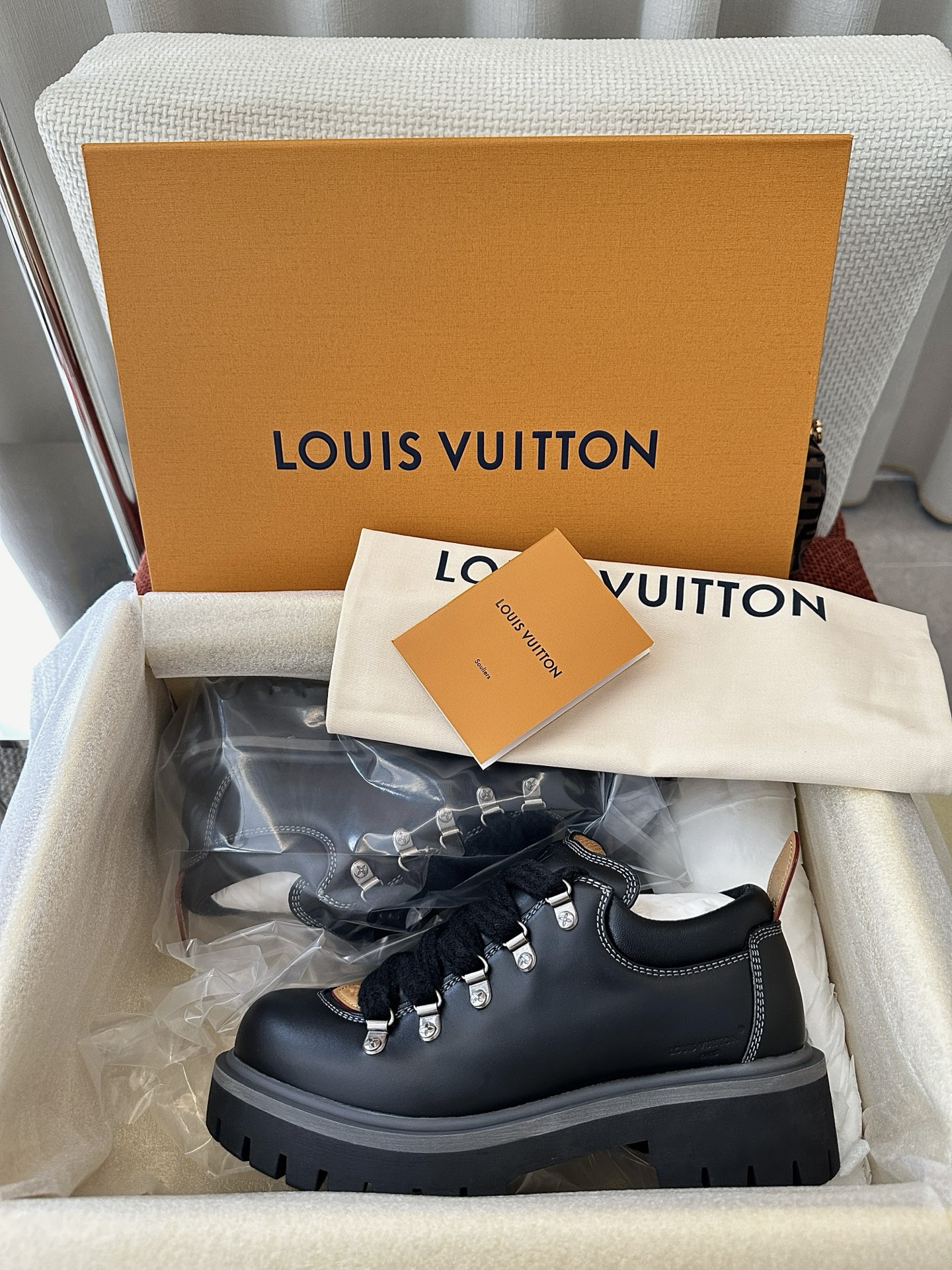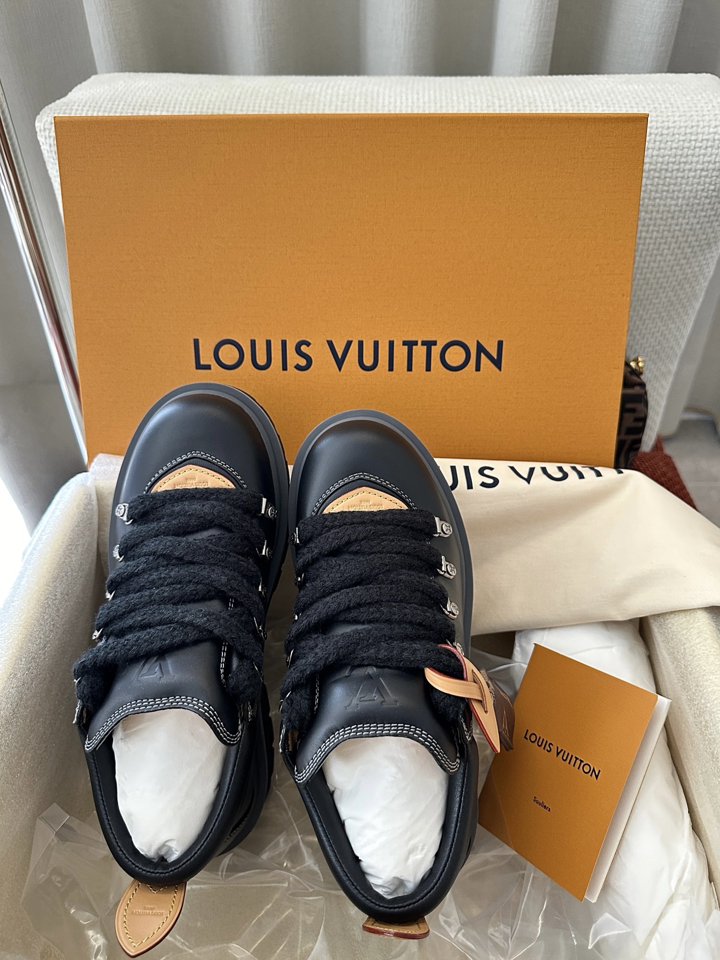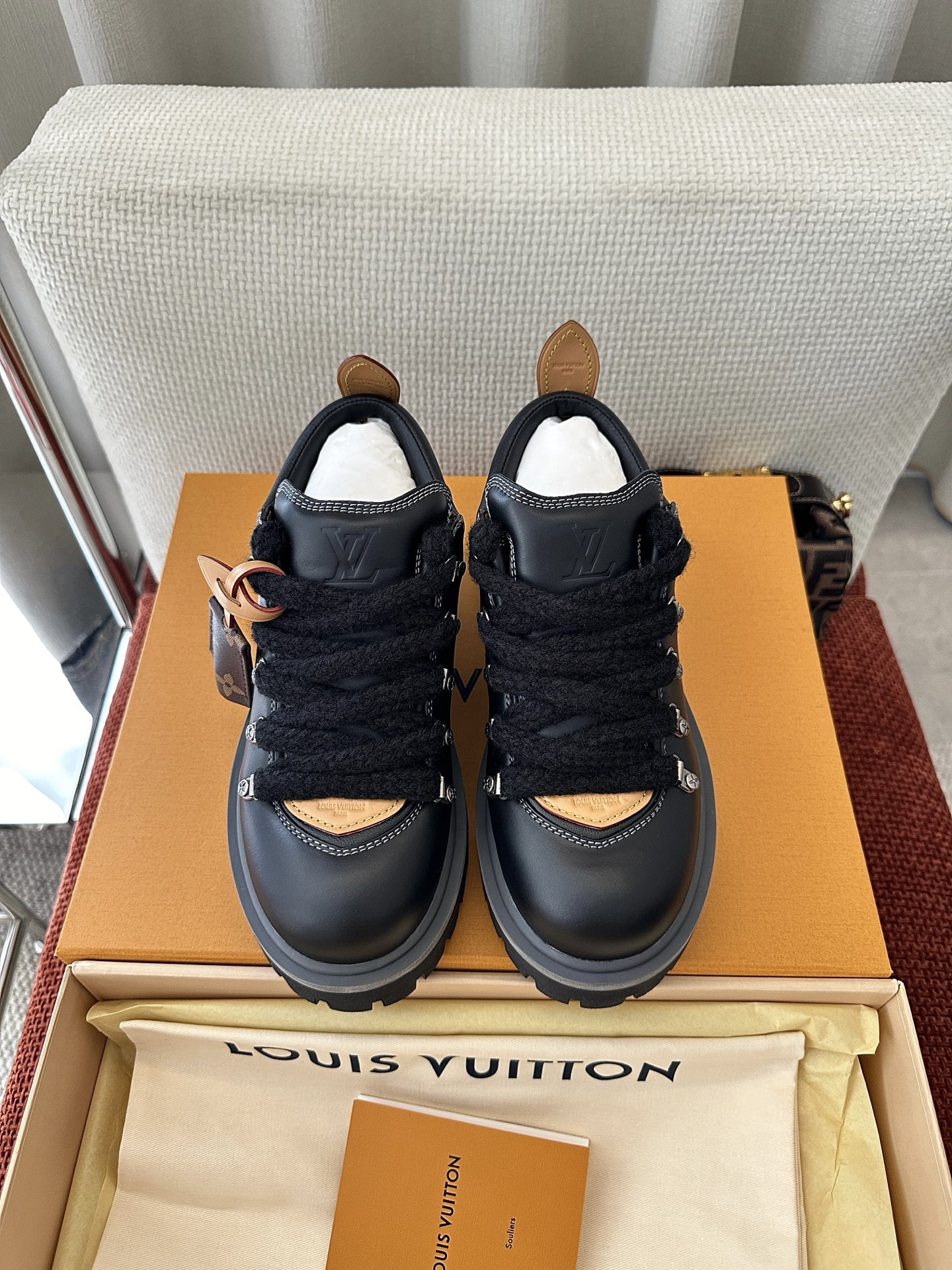 这款鞋子是AAAAA 1:1 质量 (非常棒). 使用了和原版一模一样的材料. 商标部分也保持了和路易威登/Louis Vuitton一样. 图片拍摄是实物鞋子拍摄, 您所收到的实物保证和我们图片一模一样.