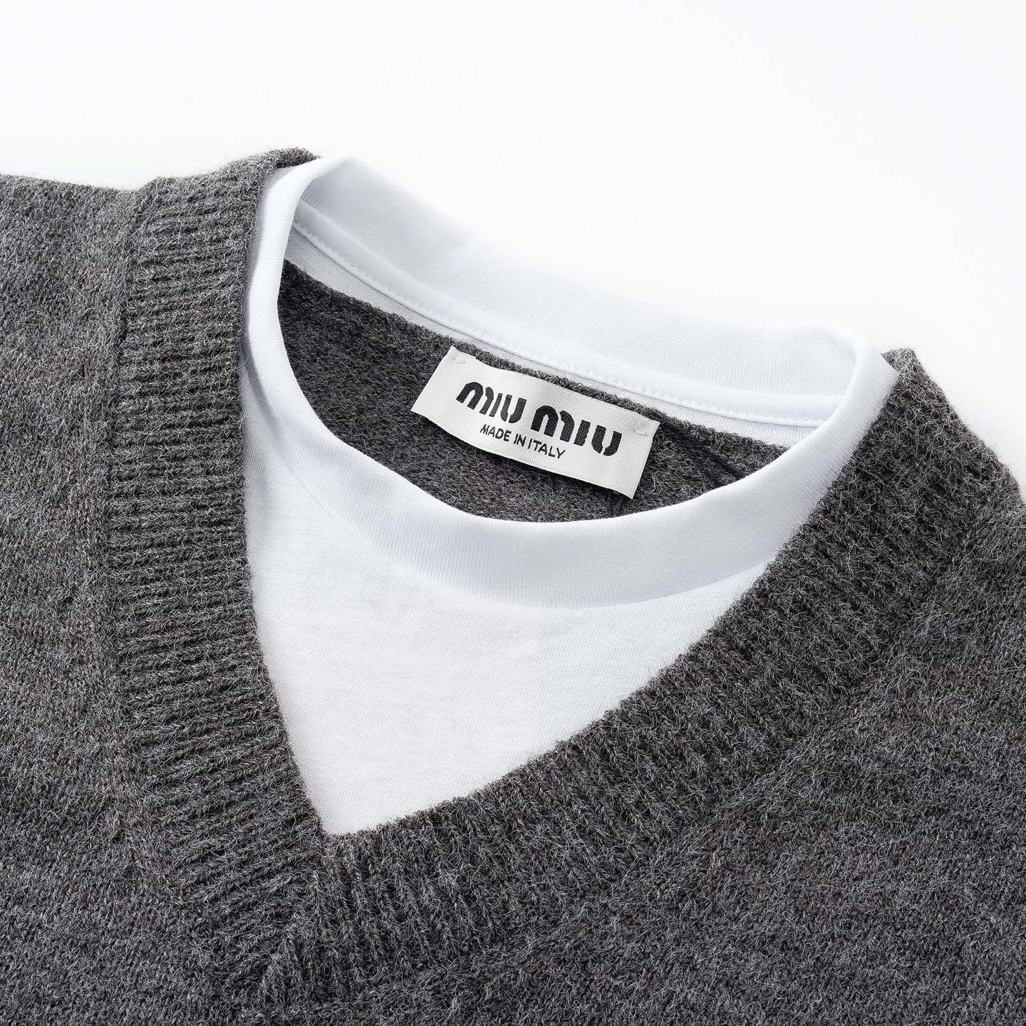 这款衣服是AAAAA 1:1 质量 (非常棒). 使用了和原版一模一样的材料. 商标部分也保持了和缪缪/Miu Miu一样. 图片拍摄是实物衣服拍摄, 您所收到的实物保证和我们图片一模一样.