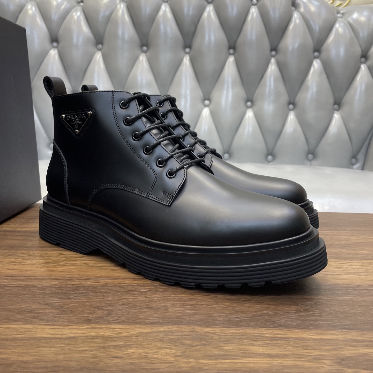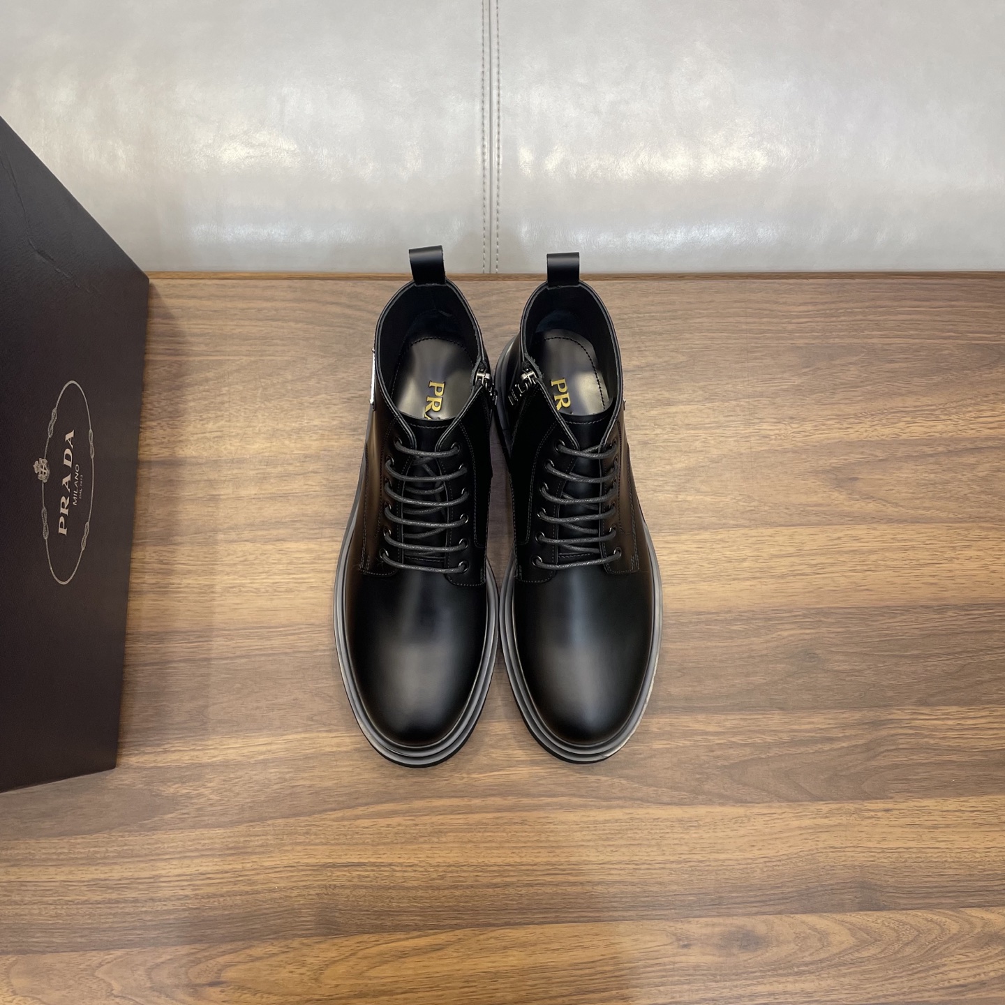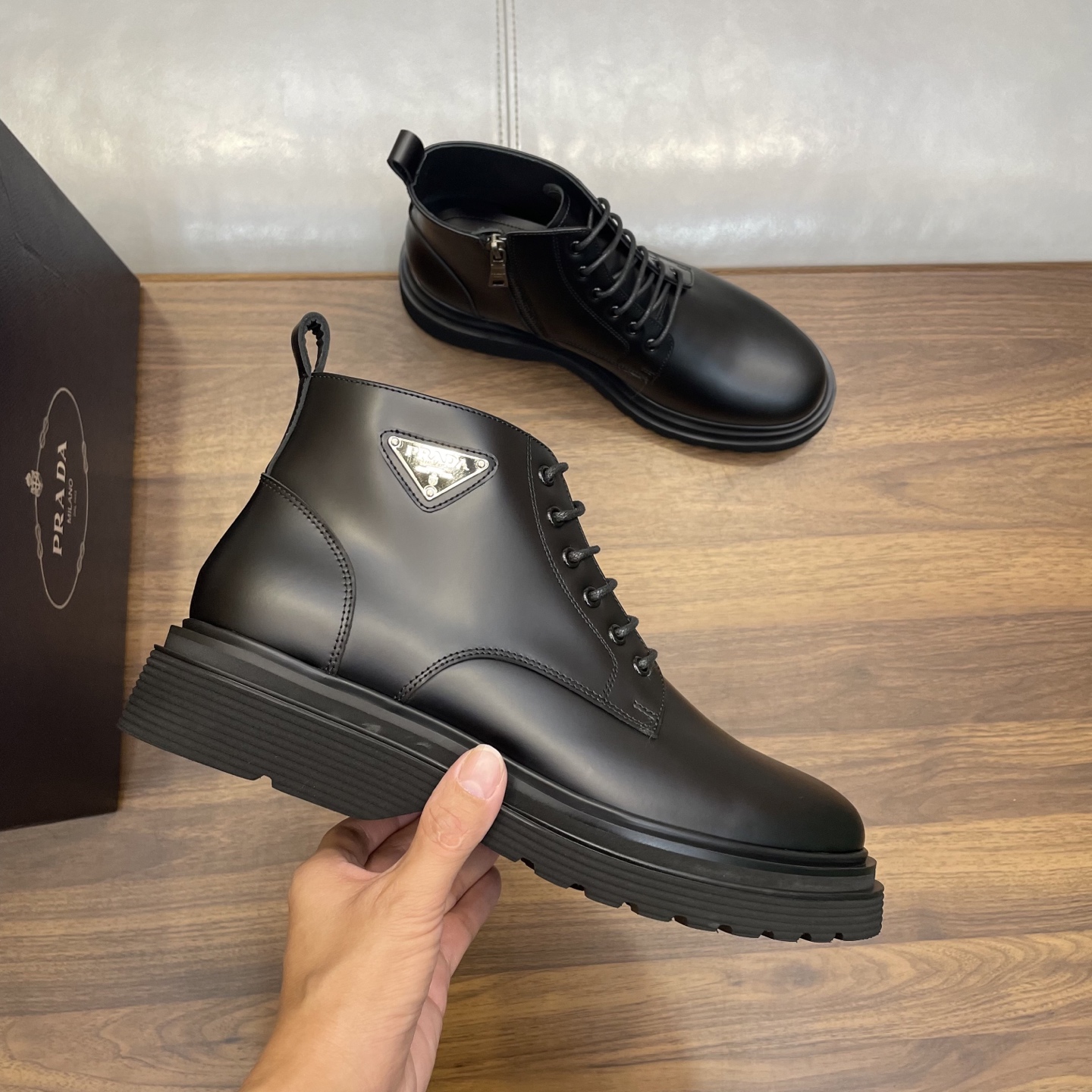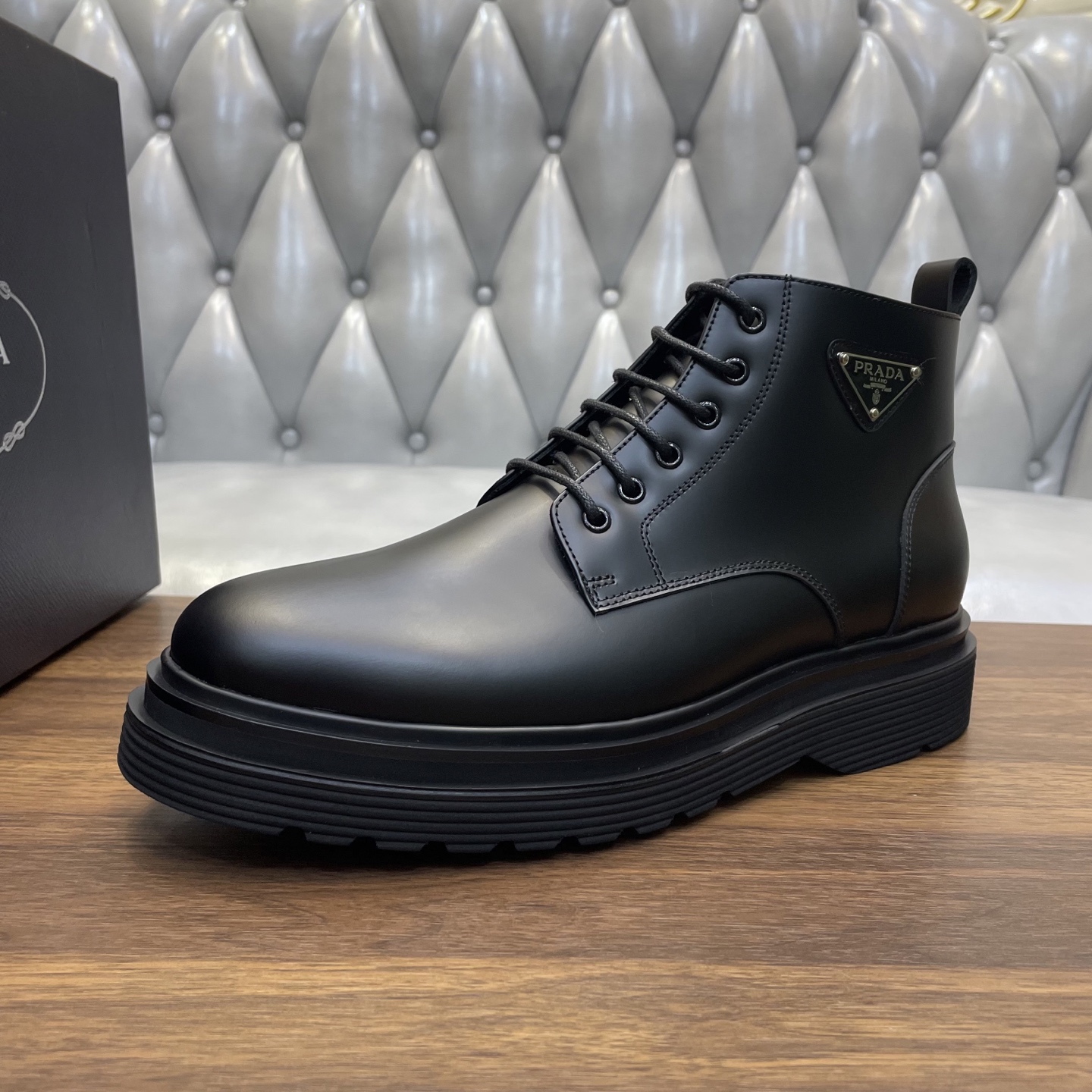 这款鞋子是AAAAA 1:1 质量 (非常棒). 使用了和原版一模一样的材料. 商标部分也保持了和普拉达/Prada一样. 图片拍摄是实物鞋子拍摄, 您所收到的实物保证和我们图片一模一样.