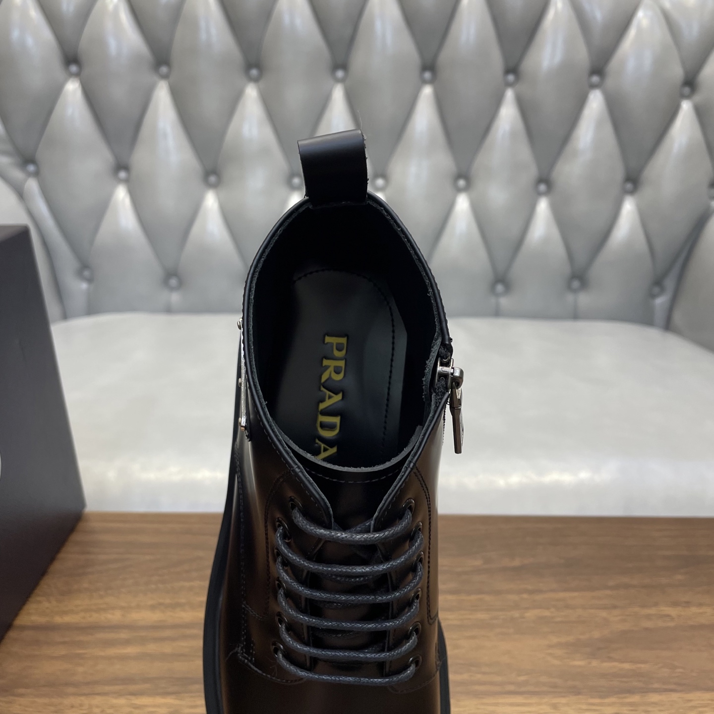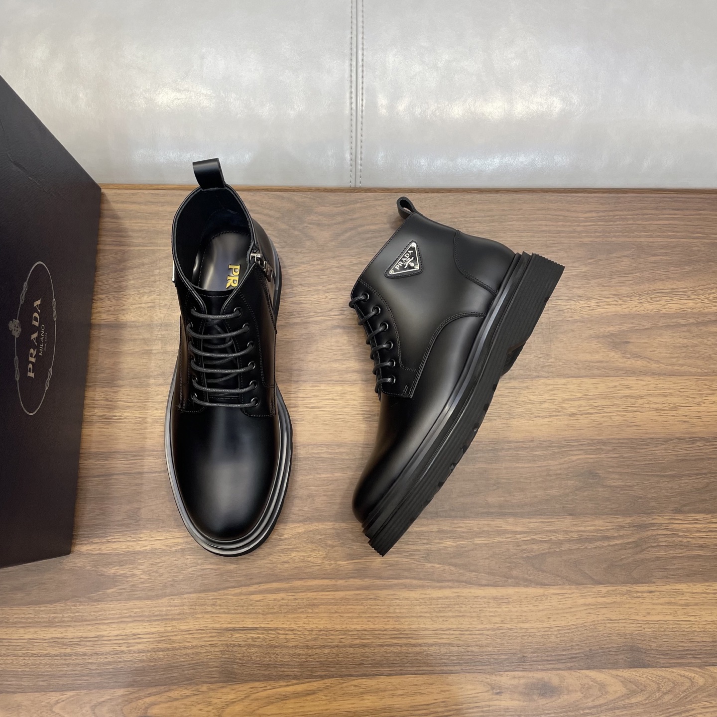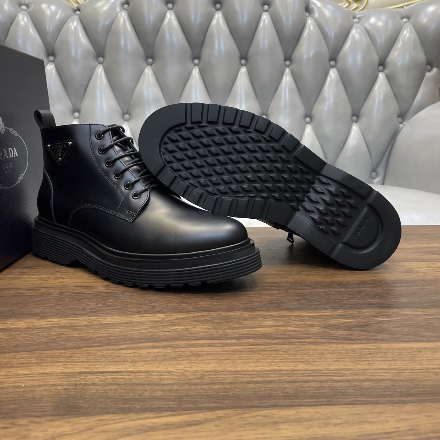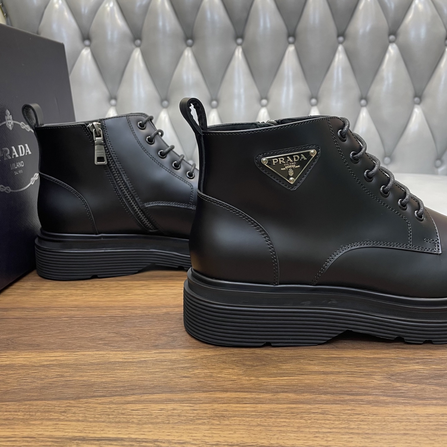 这款鞋子是AAAAA 1:1 质量 (非常棒). 使用了和原版一模一样的材料. 商标部分也保持了和普拉达/Prada一样. 图片拍摄是实物鞋子拍摄, 您所收到的实物保证和我们图片一模一样.
