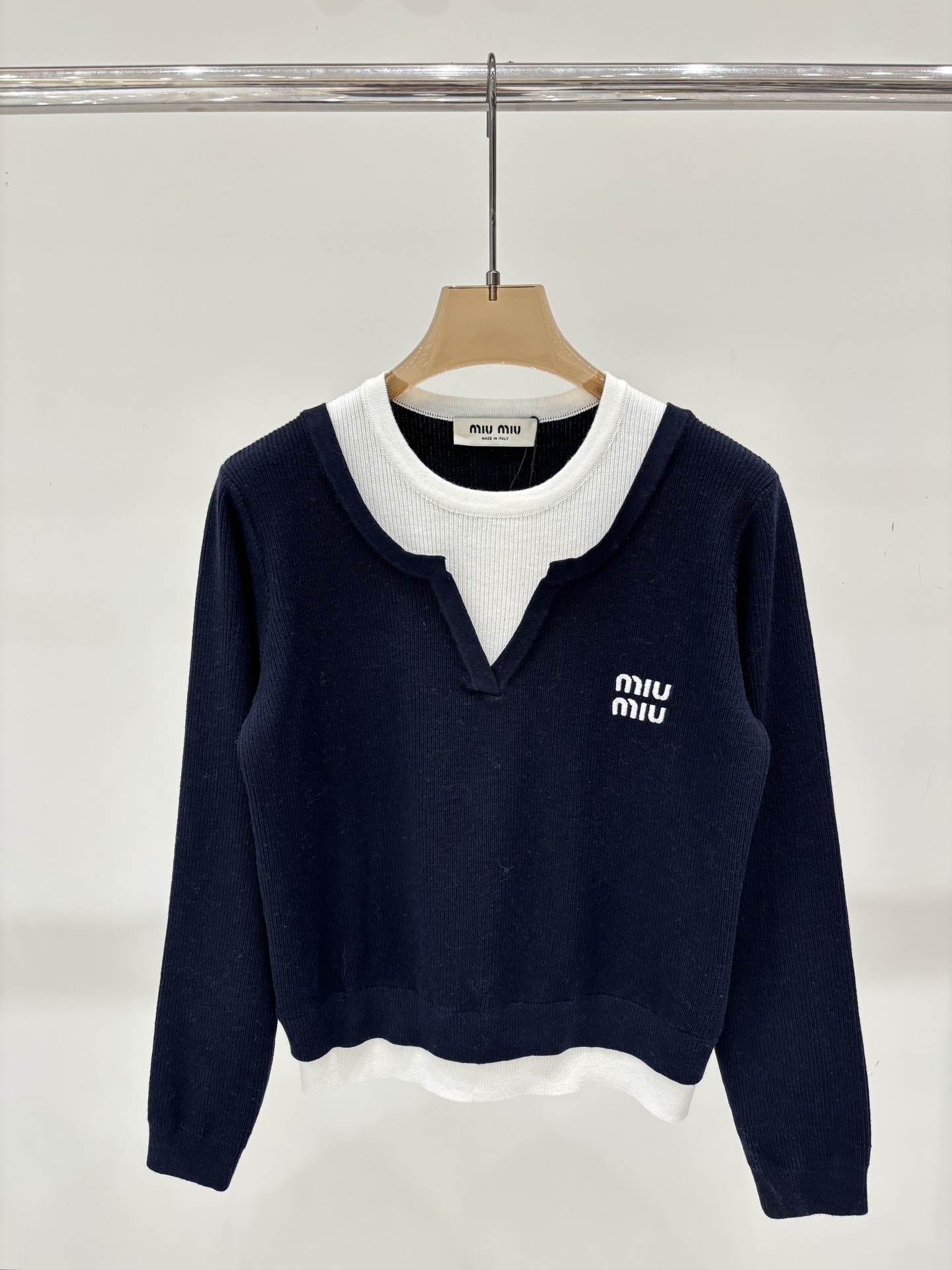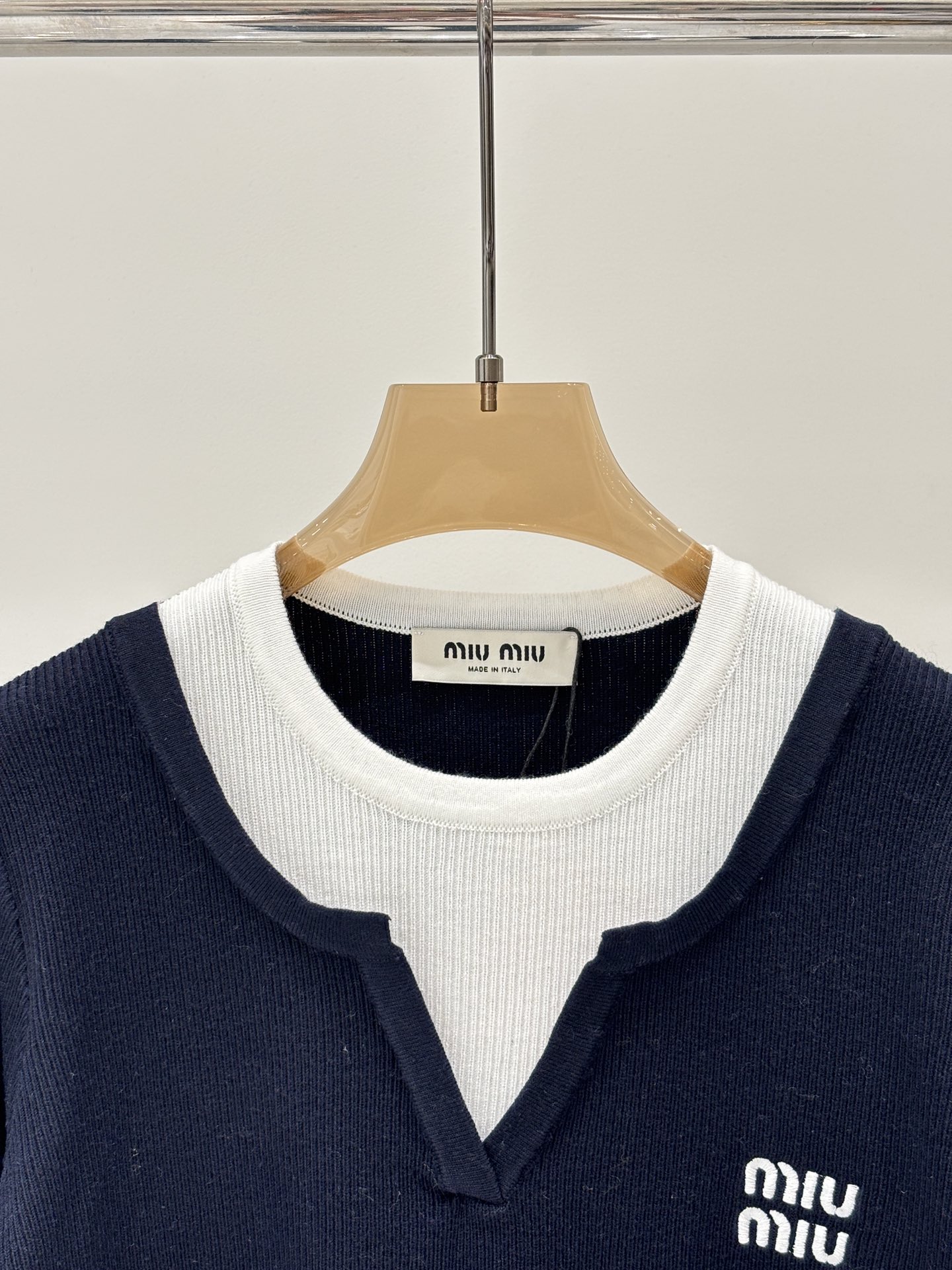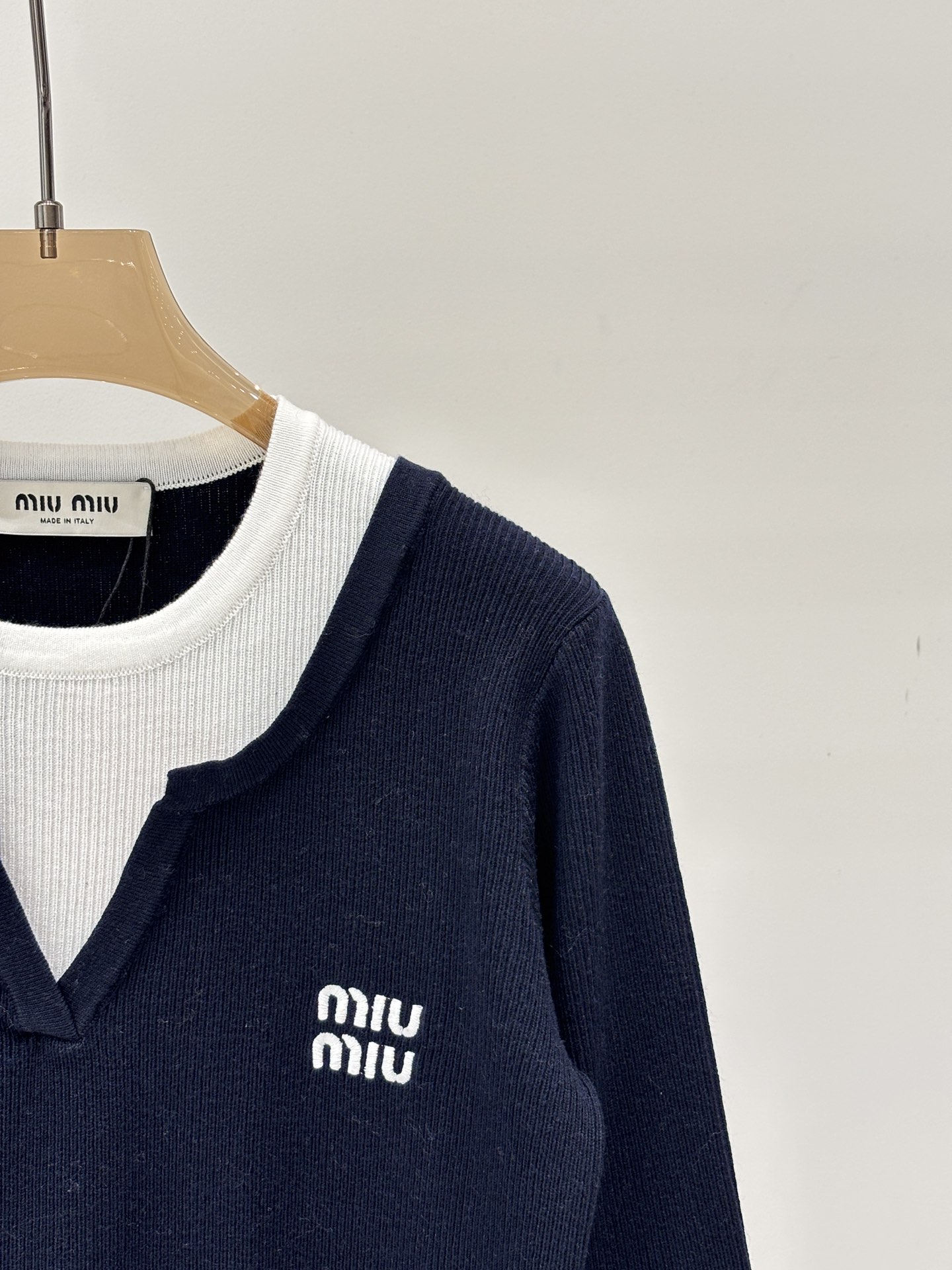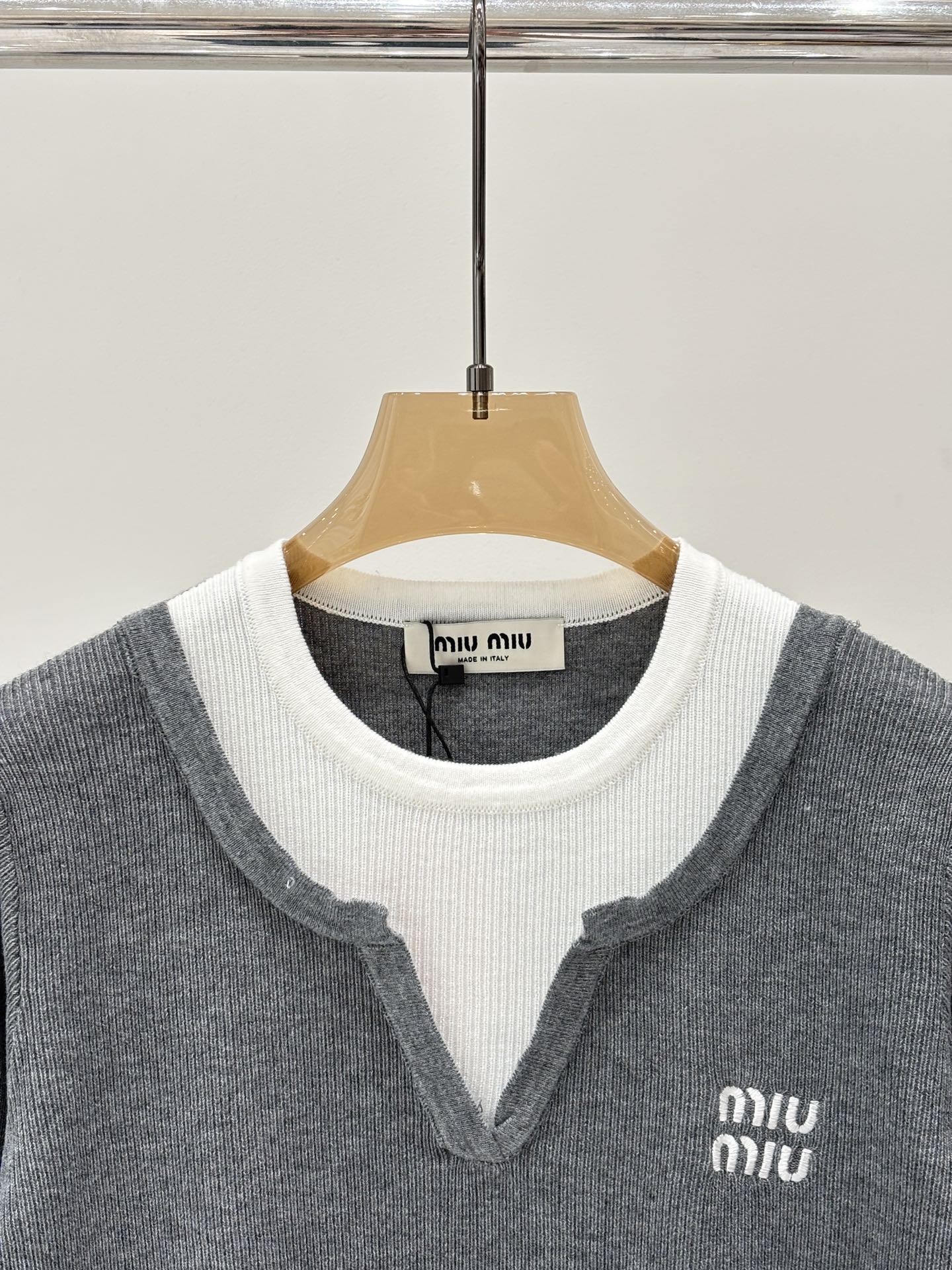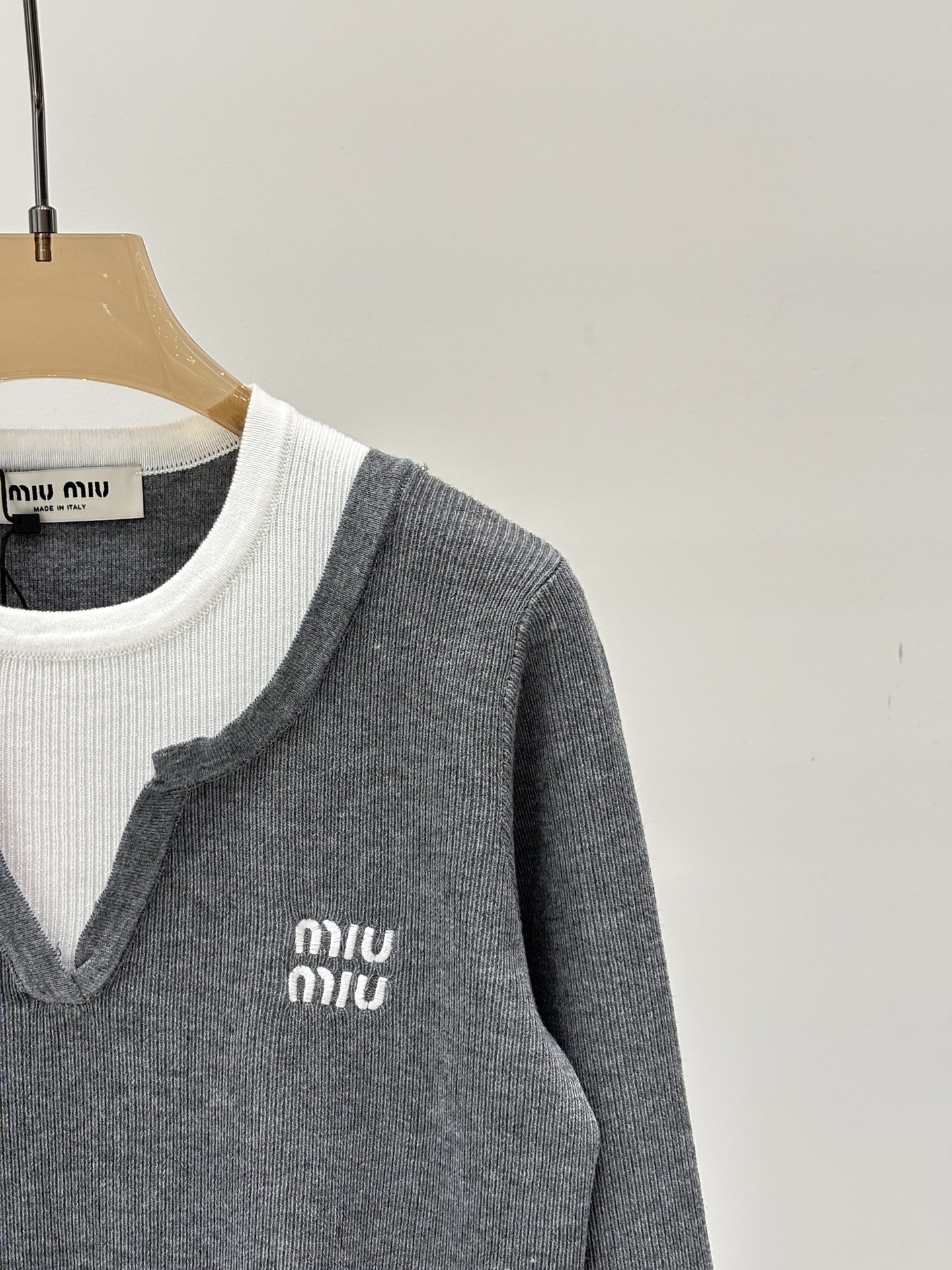这款衣服是AAAAA 1:1 质量 (非常棒). 使用了和原版一模一样的材料. 商标部分也保持了和缪缪/Miu Miu一样. 图片拍摄是实物衣服拍摄, 您所收到的实物保证和我们图片一模一样.