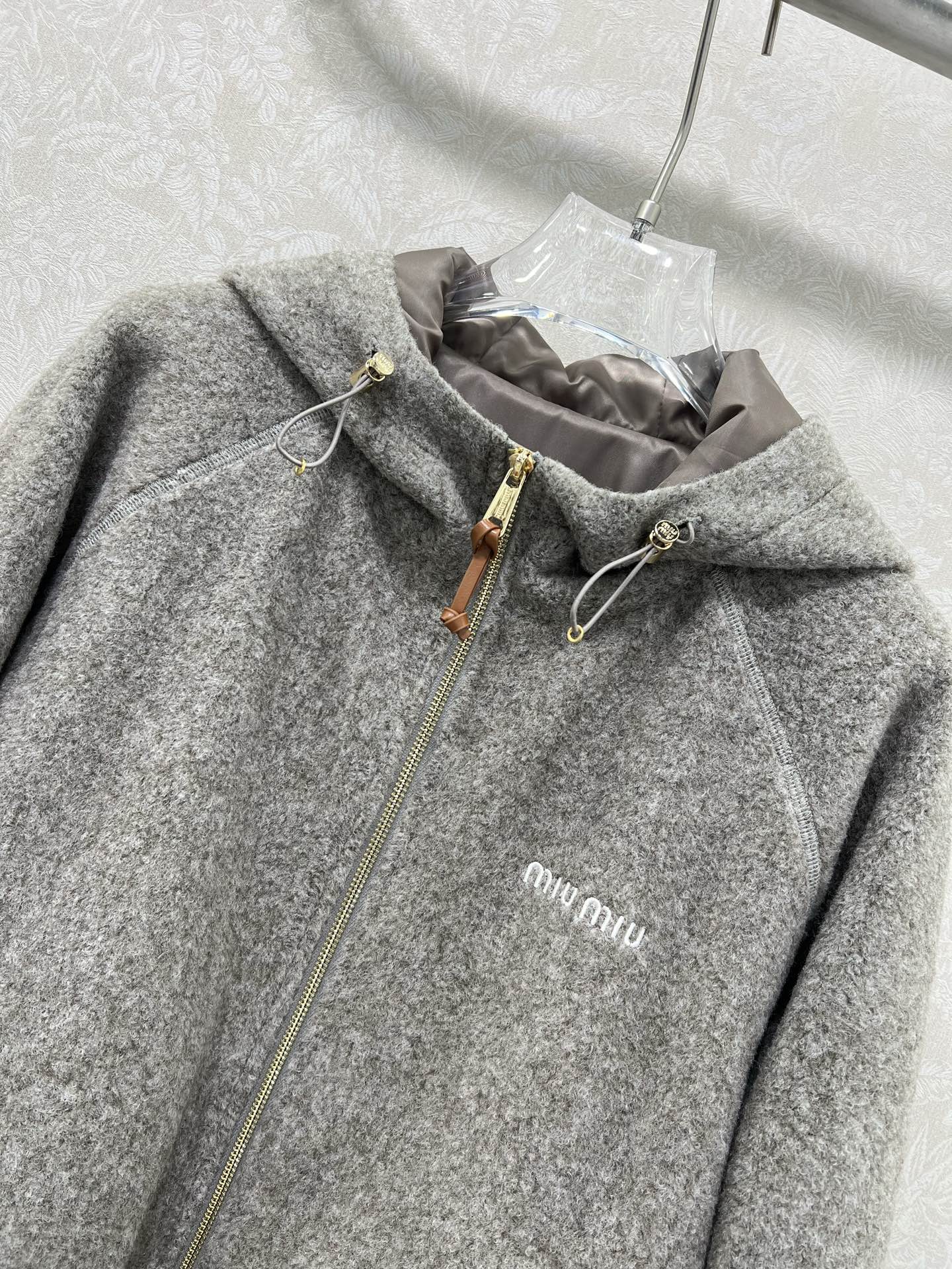 这款衣服是AAAAA 1:1 质量 (非常棒). 使用了和原版一模一样的材料. 商标部分也保持了和缪缪/Miu Miu一样. 图片拍摄是实物衣服拍摄, 您所收到的实物保证和我们图片一模一样.
