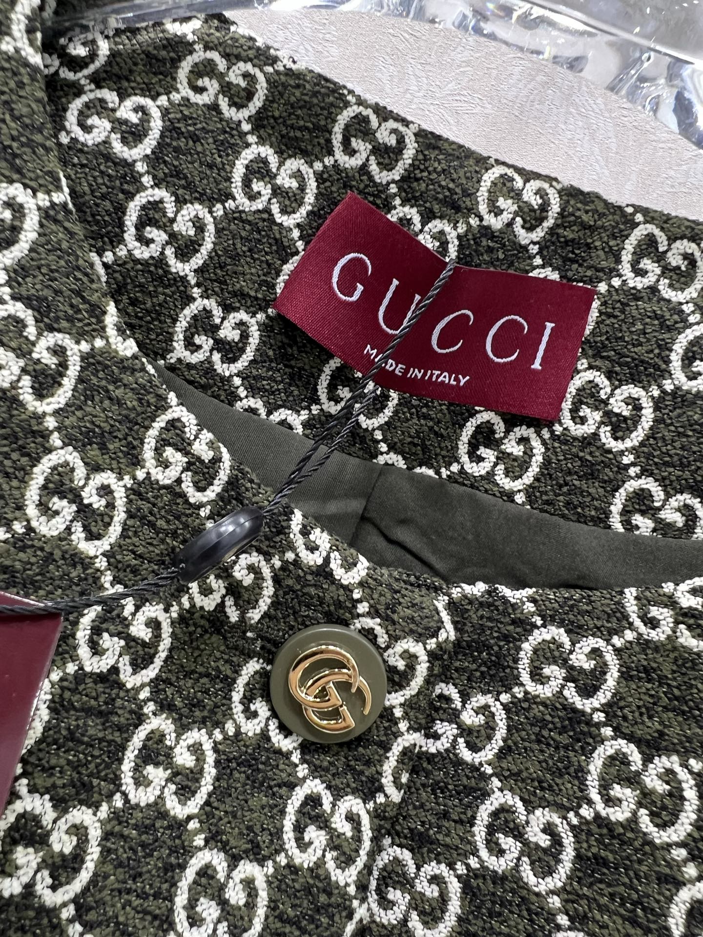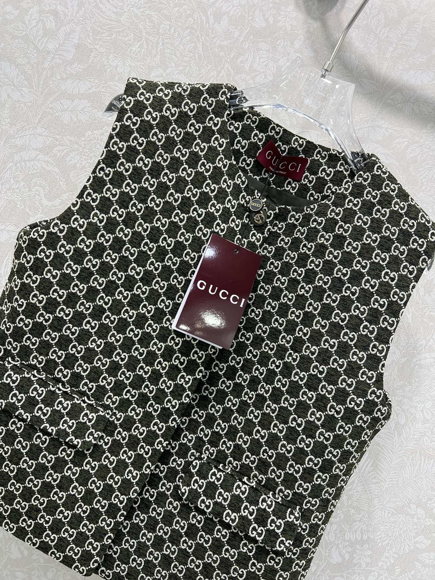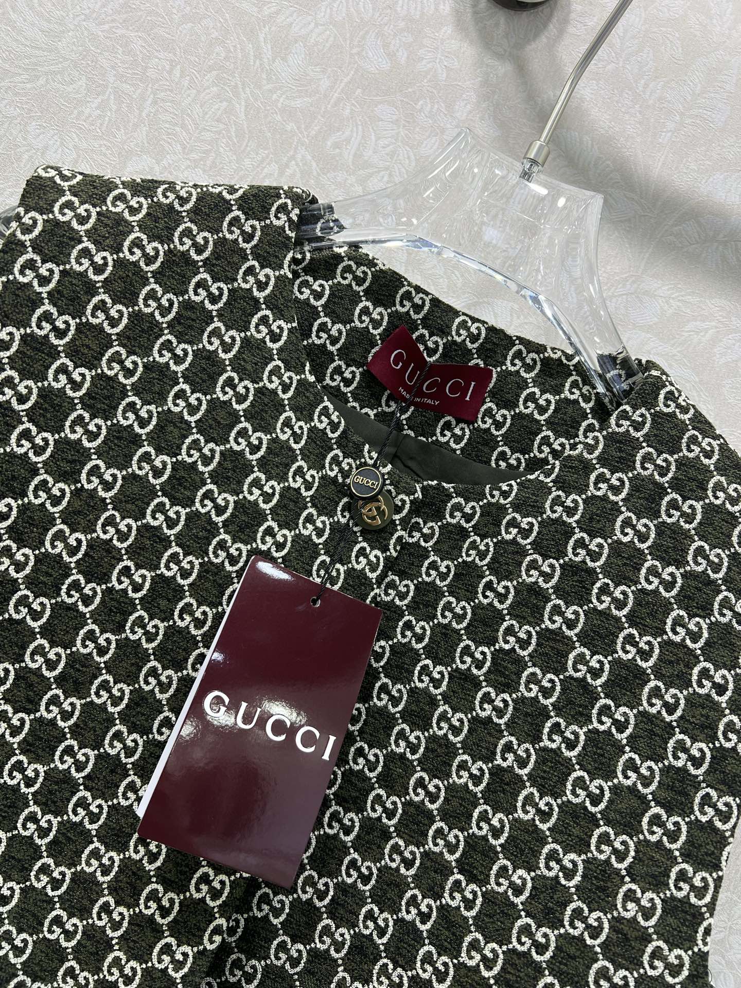 这款衣服是AAAAA 1:1 质量 (非常棒). 使用了和原版一模一样的材料. 商标部分也保持了和古奇/Gucci一样. 图片拍摄是实物衣服拍摄, 您所收到的实物保证和我们图片一模一样.