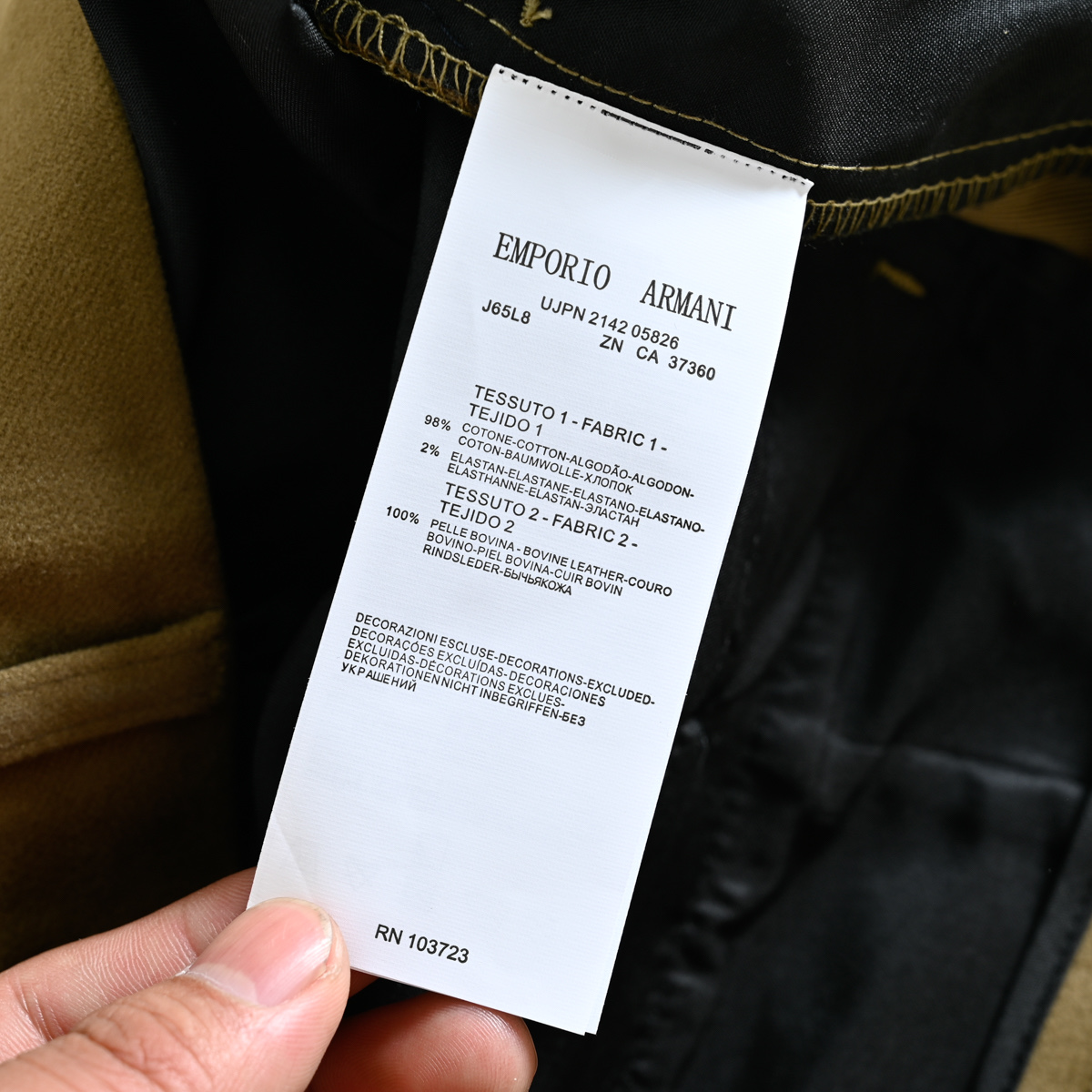 这款衣服是AAAAA 1:1 质量 (非常棒). 使用了和原版一模一样的材料. 商标部分也保持了和阿玛尼/Armani一样. 图片拍摄是实物衣服拍摄, 您所收到的实物保证和我们图片一模一样.
