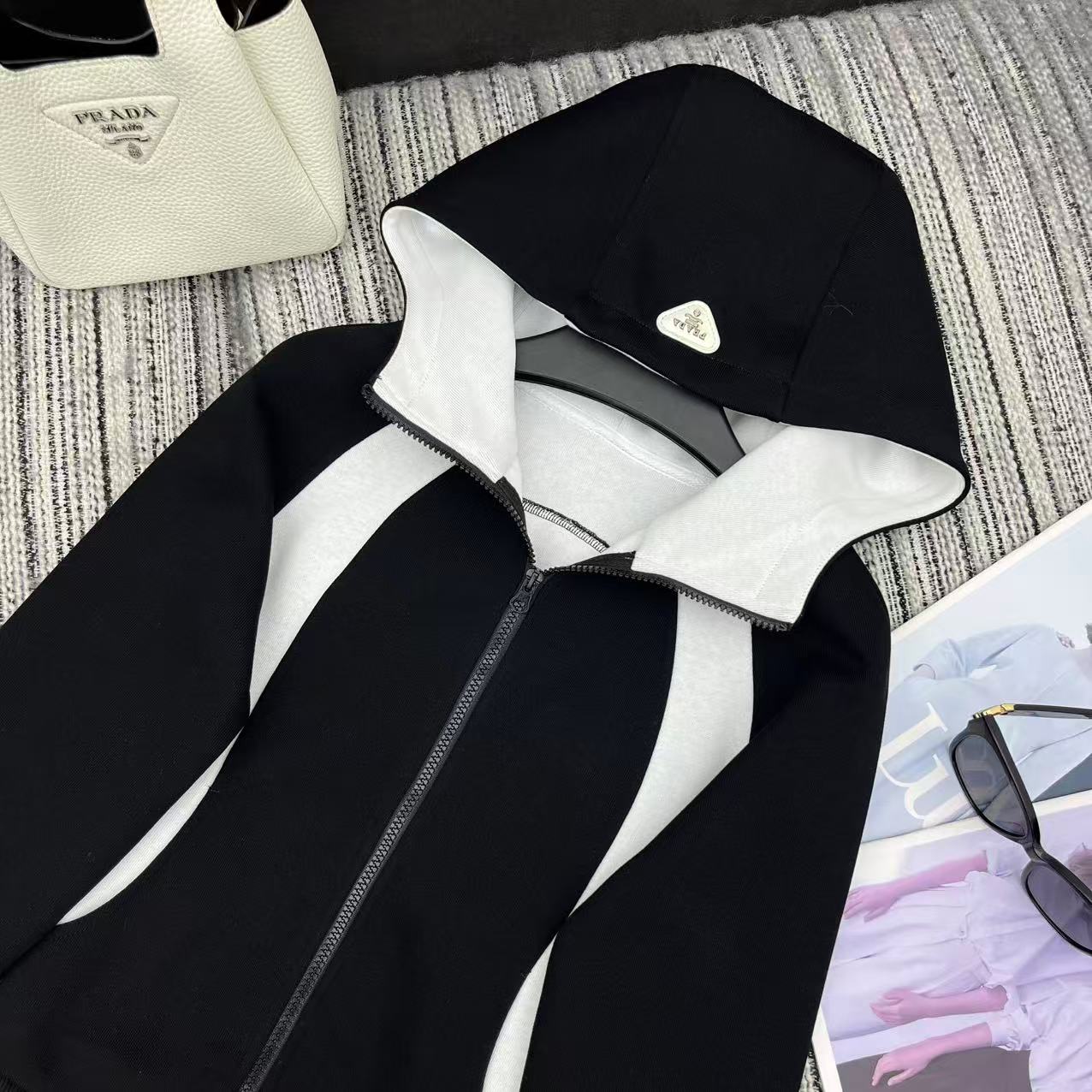 这款衣服是AAAAA 1:1 质量 (非常棒). 使用了和原版一模一样的材料. 商标部分也保持了和普拉达/Prada一样. 图片拍摄是实物衣服拍摄, 您所收到的实物保证和我们图片一模一样.
