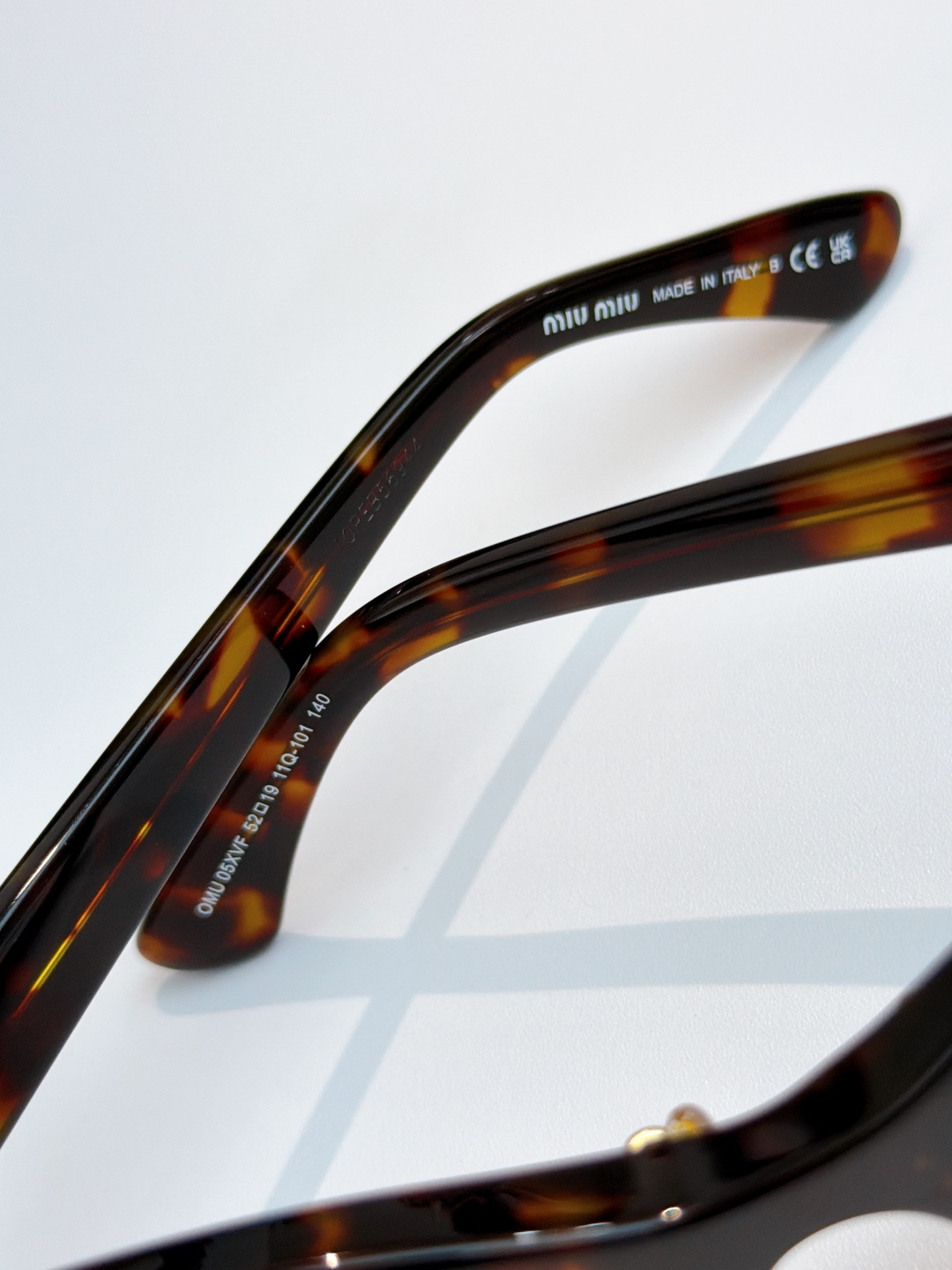 这款太阳眼镜是AAAAA 1:1 质量 (非常棒). 使用了和原版一模一样的材料. 商标部分也保持了和缪缪/Miu Miu一样. 图片拍摄是实物太阳眼镜拍摄, 您所收到的实物保证和我们图片一模一样.