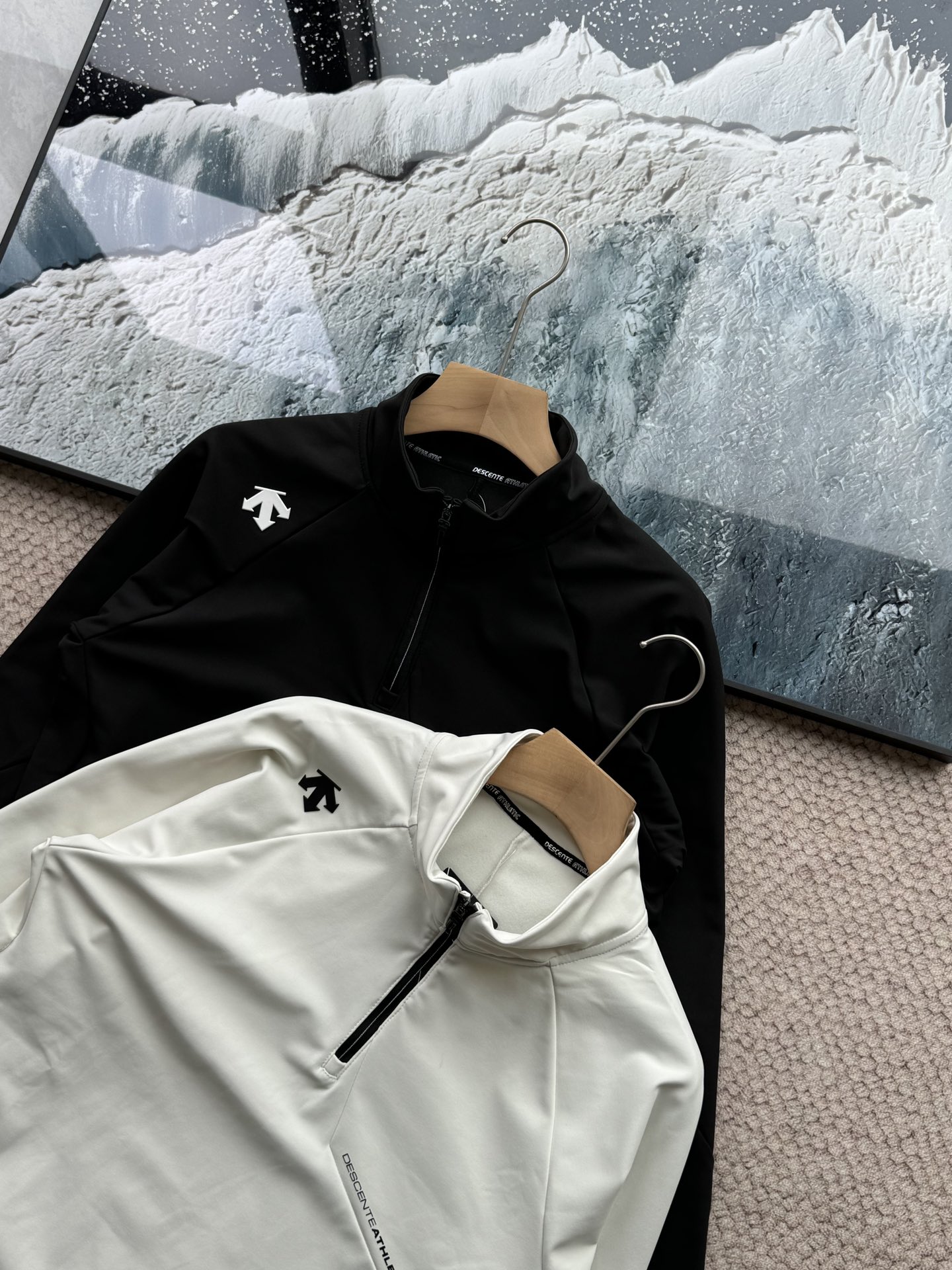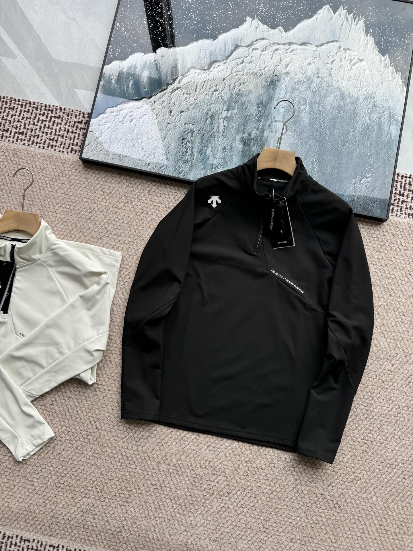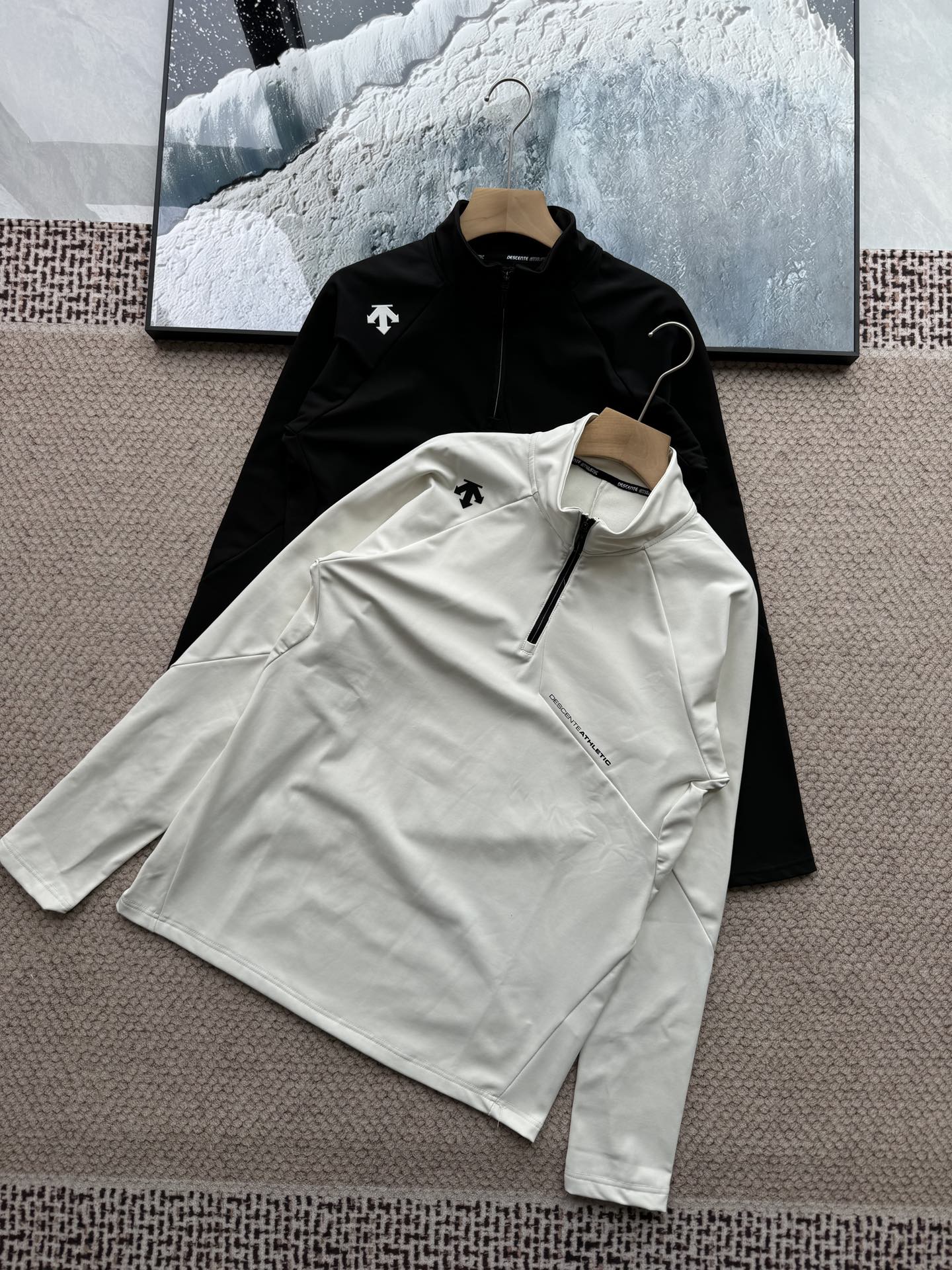 这款衣服是AAAAA 1:1 质量 (非常棒). 使用了和原版一模一样的材料. 商标部分也保持了和Descente一样. 图片拍摄是实物衣服拍摄, 您所收到的实物保证和我们图片一模一样.