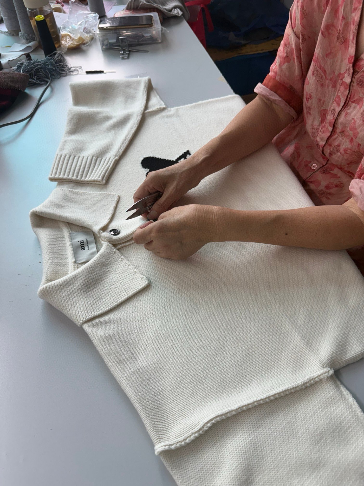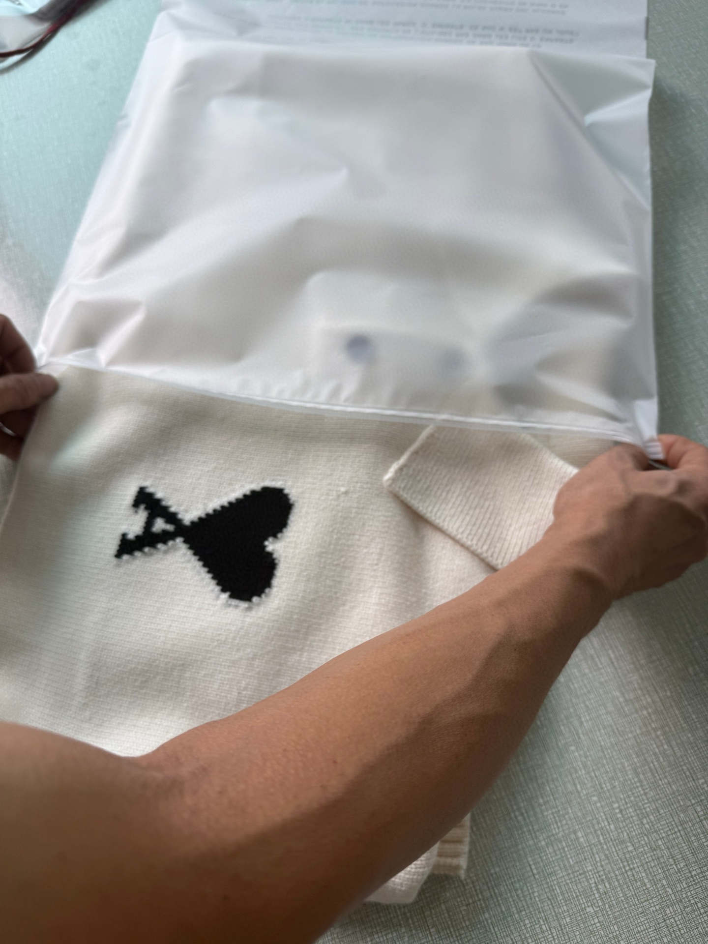 这款衣服是AAAAA 1:1 质量 (非常棒). 使用了和原版一模一样的材料. 商标部分也保持了和Ami一样. 图片拍摄是实物衣服拍摄, 您所收到的实物保证和我们图片一模一样.