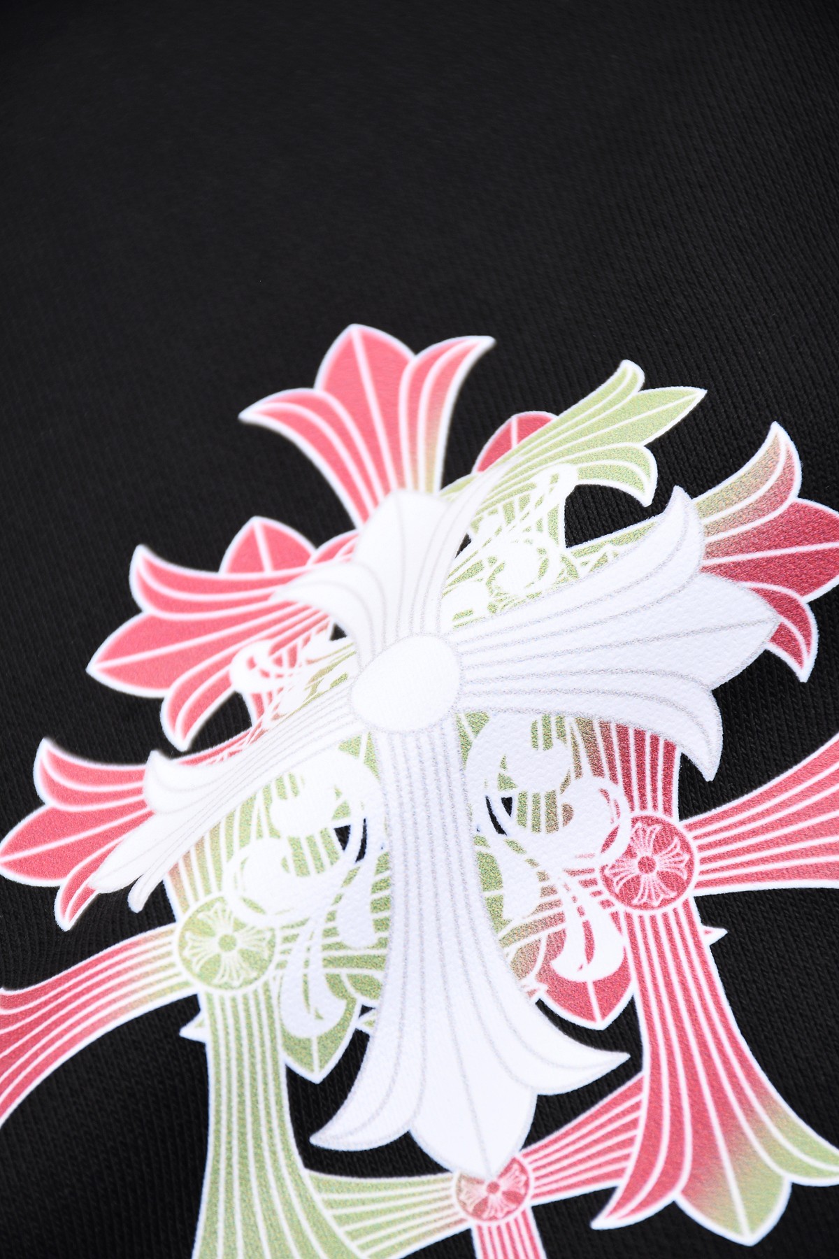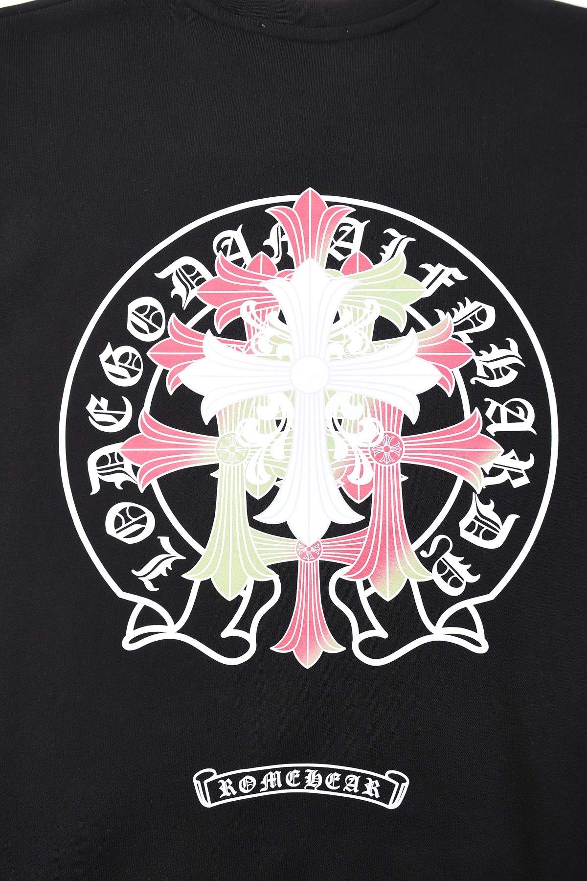 这款衣服是AAAAA 1:1 质量 (非常棒). 使用了和原版一模一样的材料. 商标部分也保持了和克罗心/Chrome Hearts一样. 图片拍摄是实物衣服拍摄, 您所收到的实物保证和我们图片一模一样.