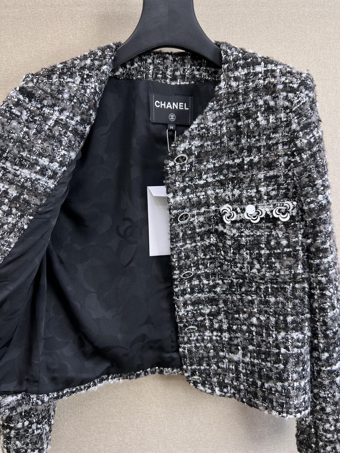 这款衣服是AAAAA 1:1 质量 (非常棒). 使用了和原版一模一样的材料. 商标部分也保持了和香奈儿/Chanel一样. 图片拍摄是实物衣服拍摄, 您所收到的实物保证和我们图片一模一样.