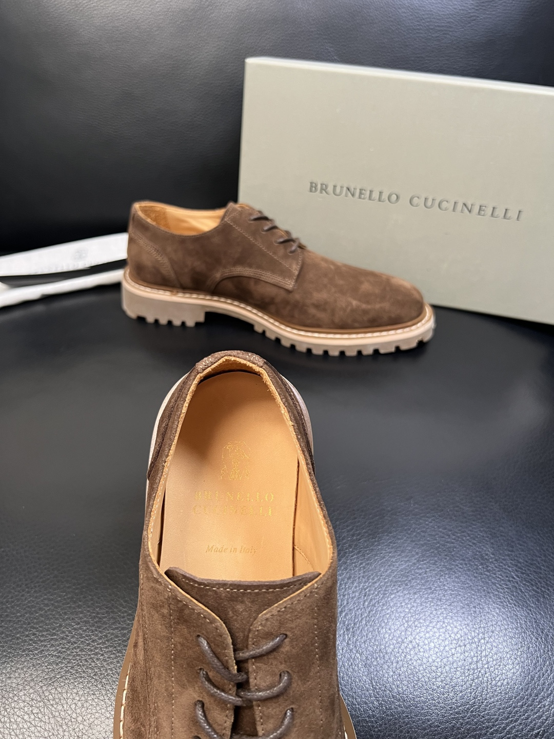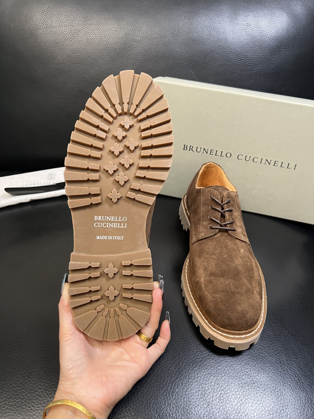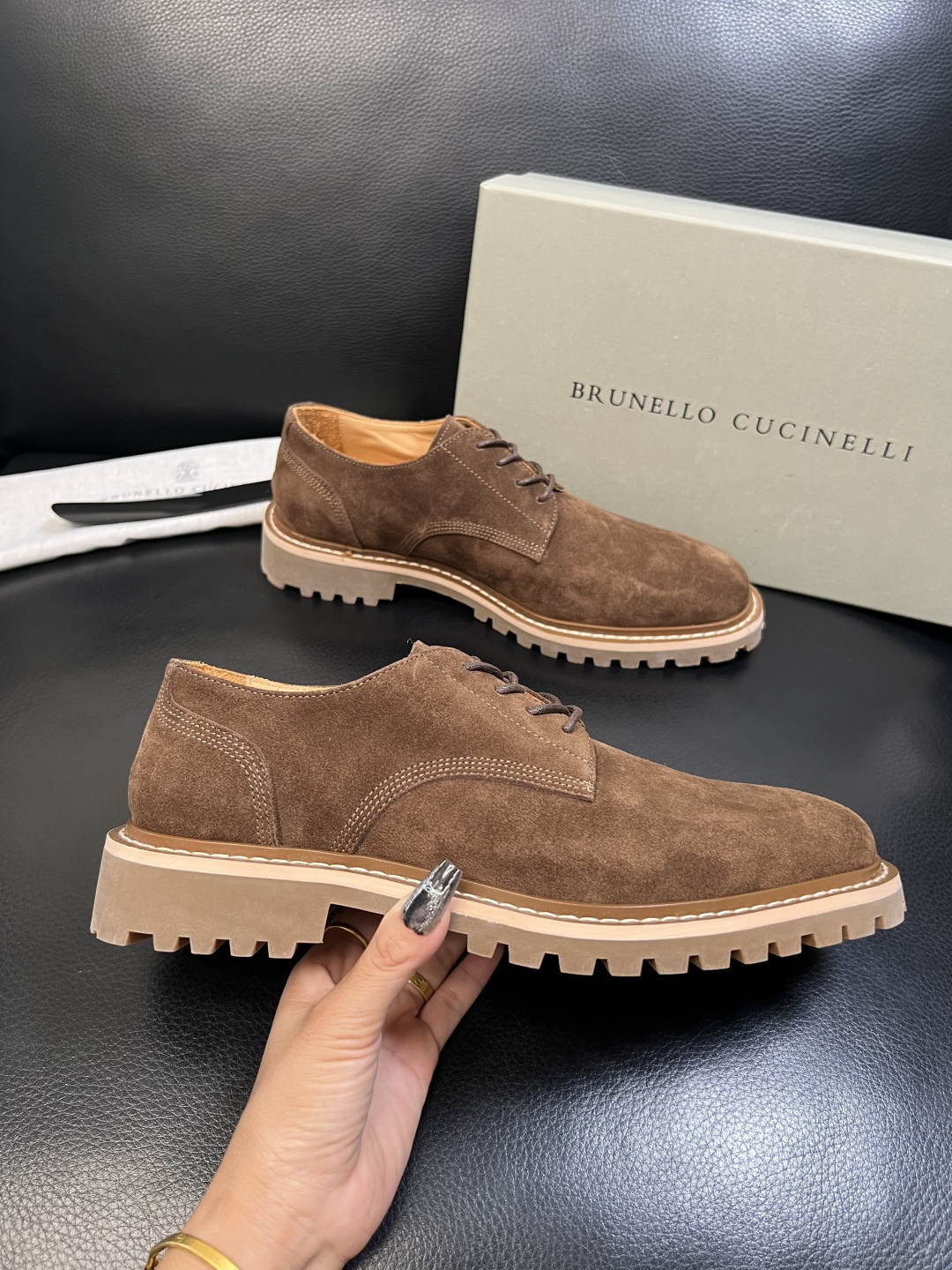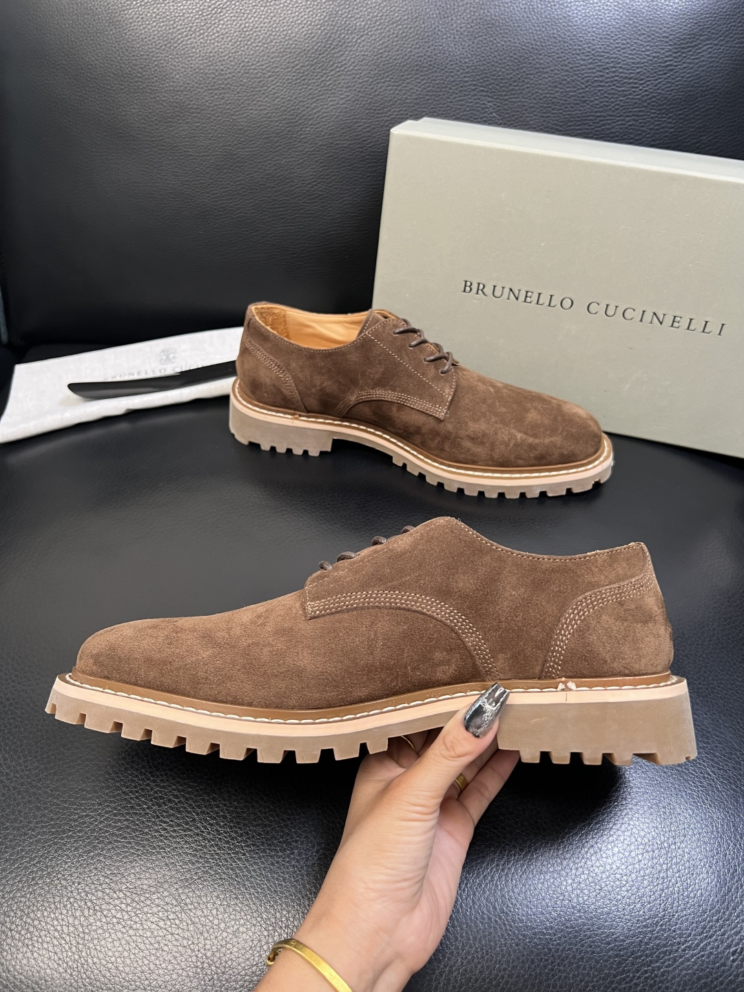 这款鞋子是AAAAA 1:1 质量 (非常棒). 使用了和原版一模一样的材料. 商标部分也保持了和Brunello Cucinelli一样. 图片拍摄是实物鞋子拍摄, 您所收到的实物保证和我们图片一模一样.