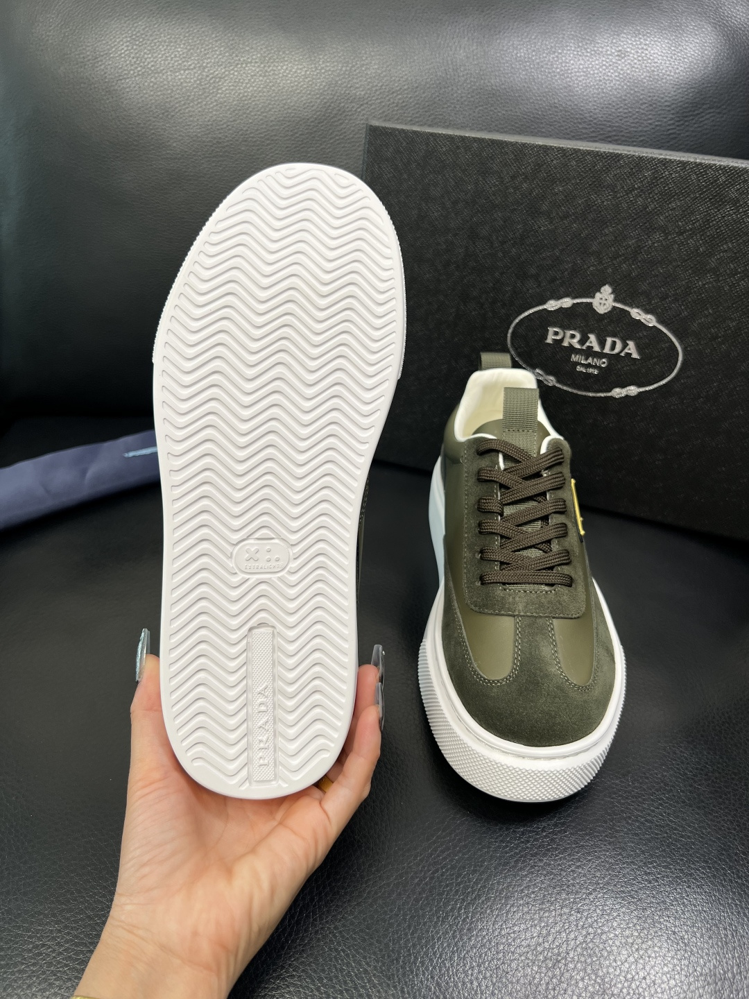 这款鞋子是AAAAA 1:1 质量 (非常棒). 使用了和原版一模一样的材料. 商标部分也保持了和普拉达/Prada一样. 图片拍摄是实物鞋子拍摄, 您所收到的实物保证和我们图片一模一样.