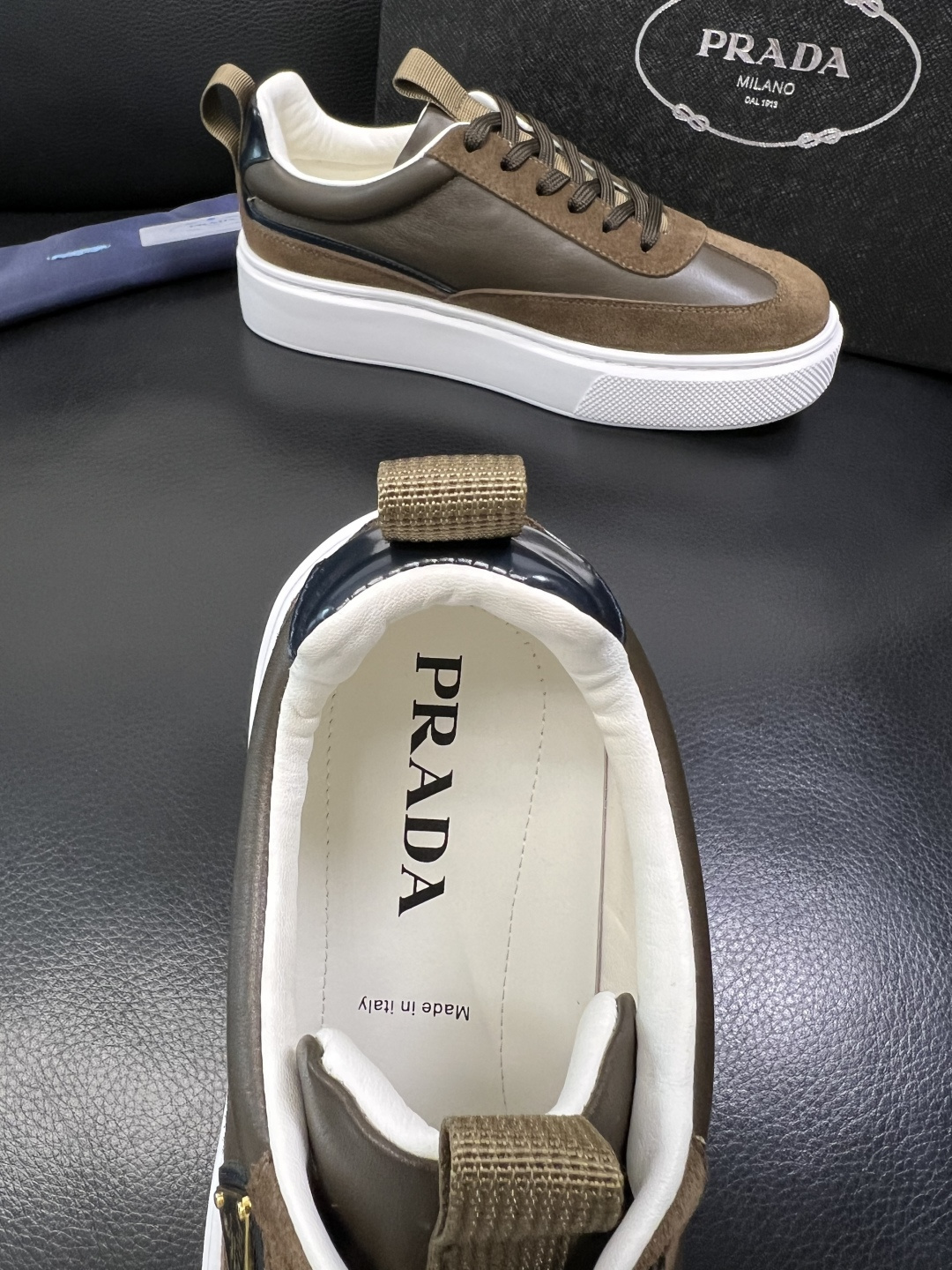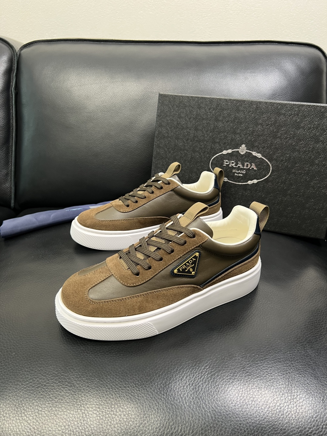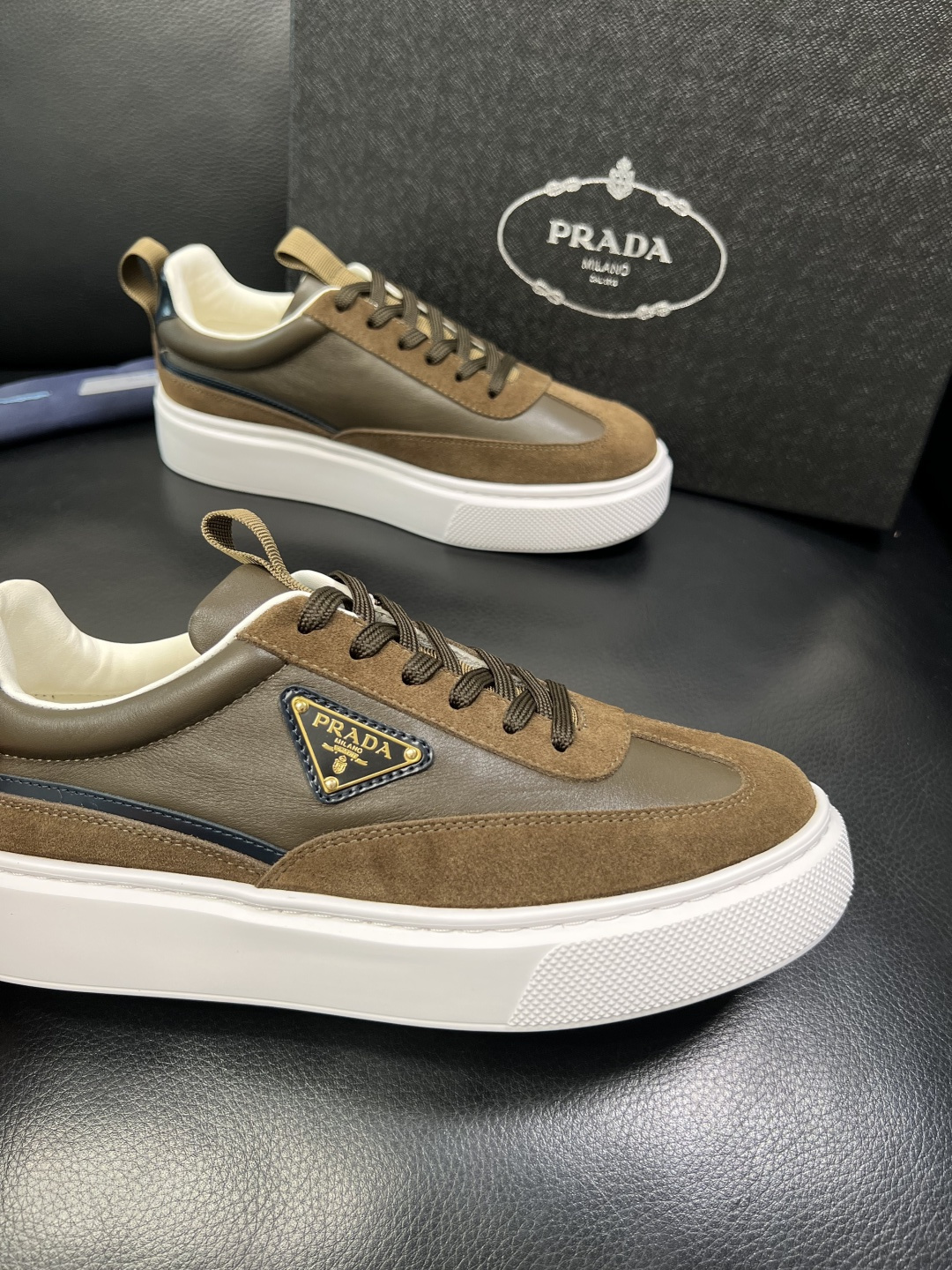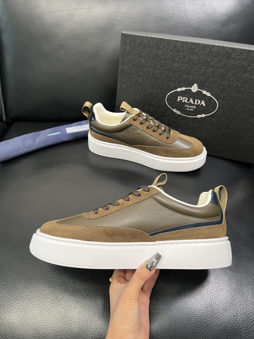 这款鞋子是AAAAA 1:1 质量 (非常棒). 使用了和原版一模一样的材料. 商标部分也保持了和普拉达/Prada一样. 图片拍摄是实物鞋子拍摄, 您所收到的实物保证和我们图片一模一样.