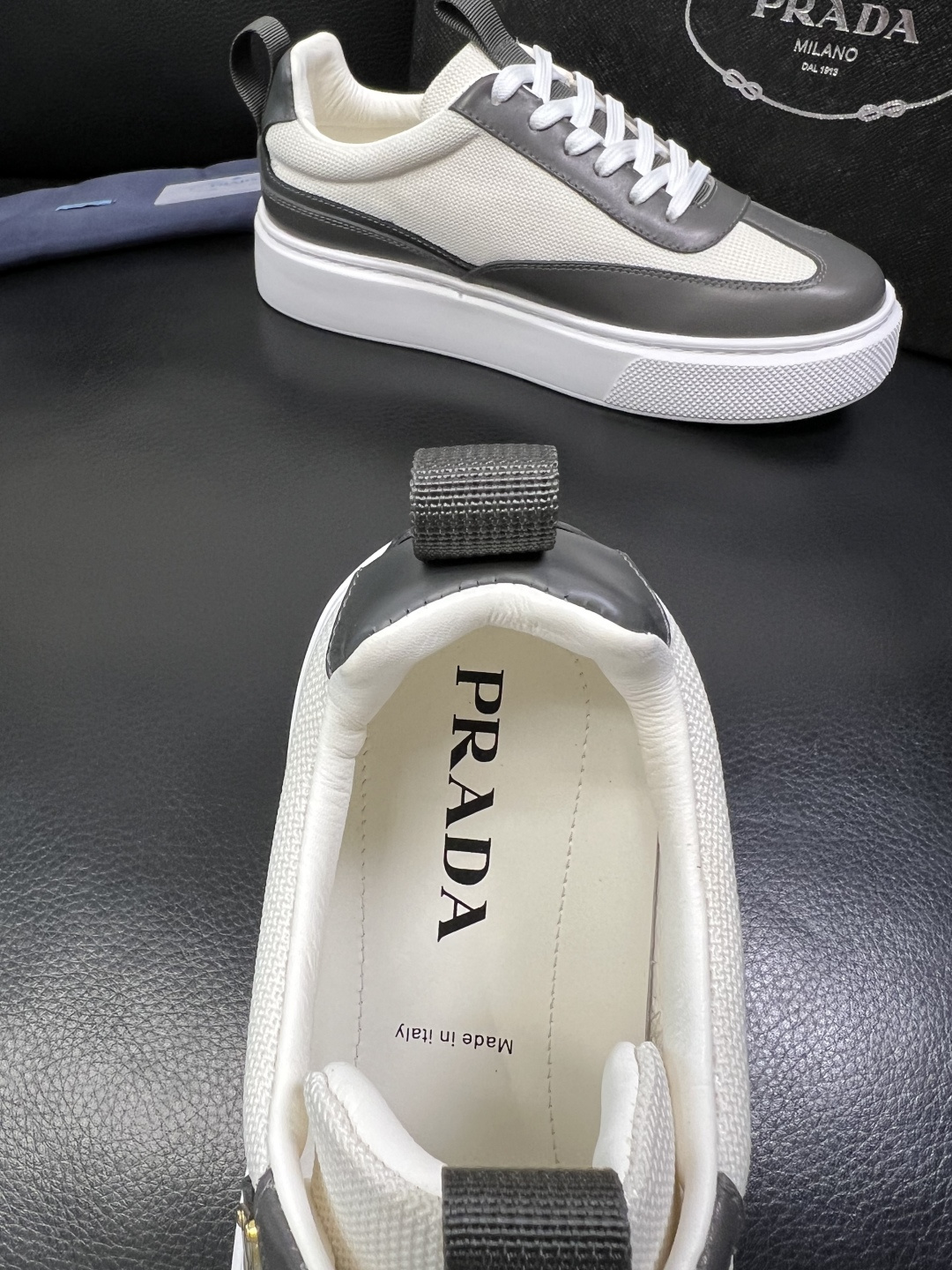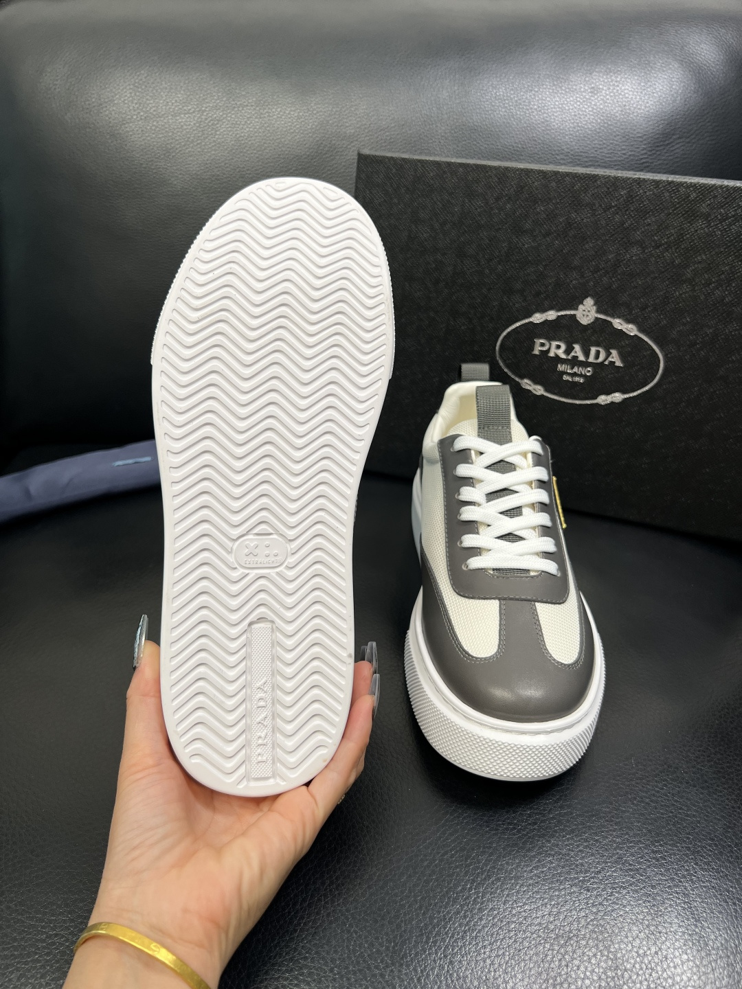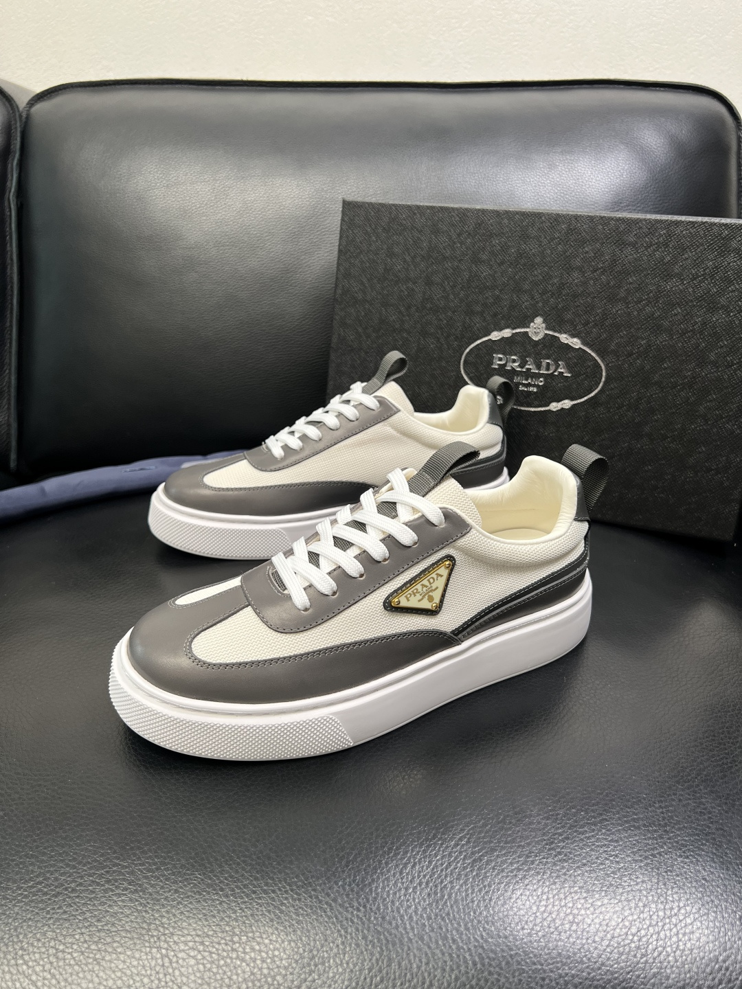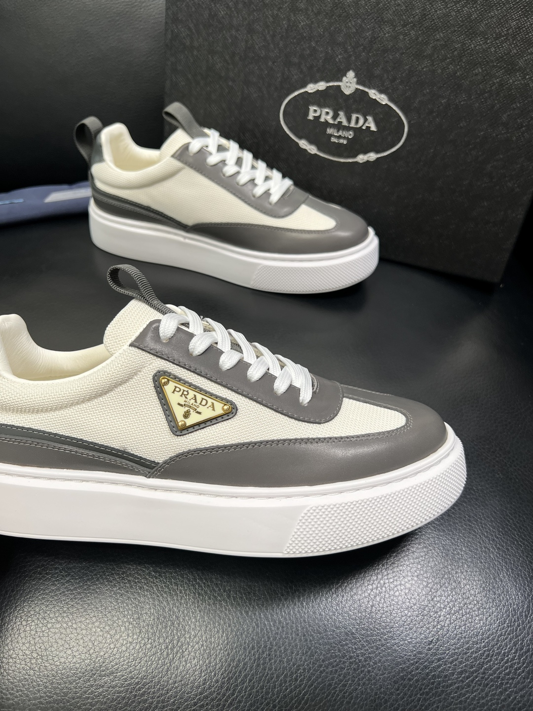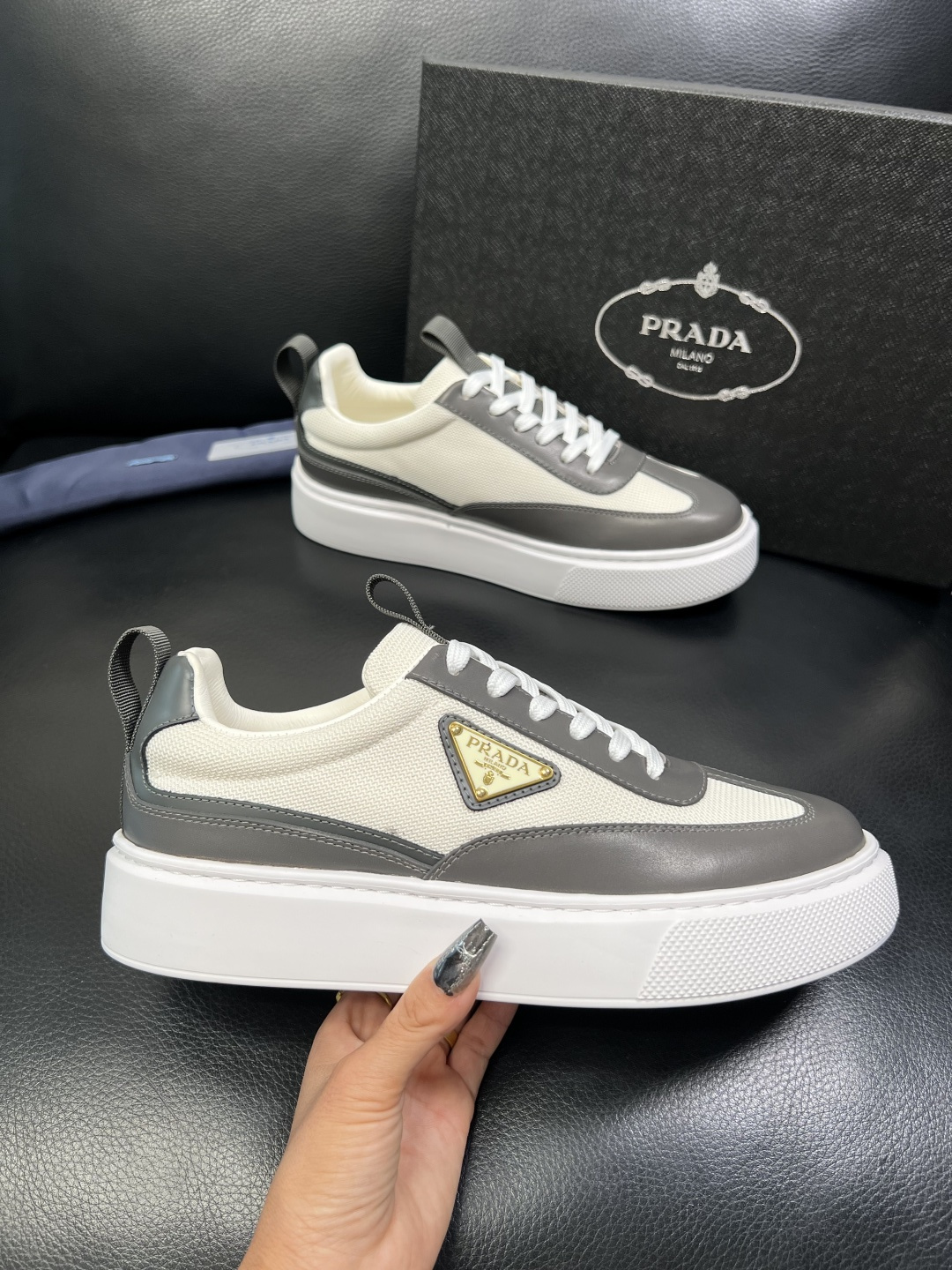 这款鞋子是AAAAA 1:1 质量 (非常棒). 使用了和原版一模一样的材料. 商标部分也保持了和普拉达/Prada一样. 图片拍摄是实物鞋子拍摄, 您所收到的实物保证和我们图片一模一样.