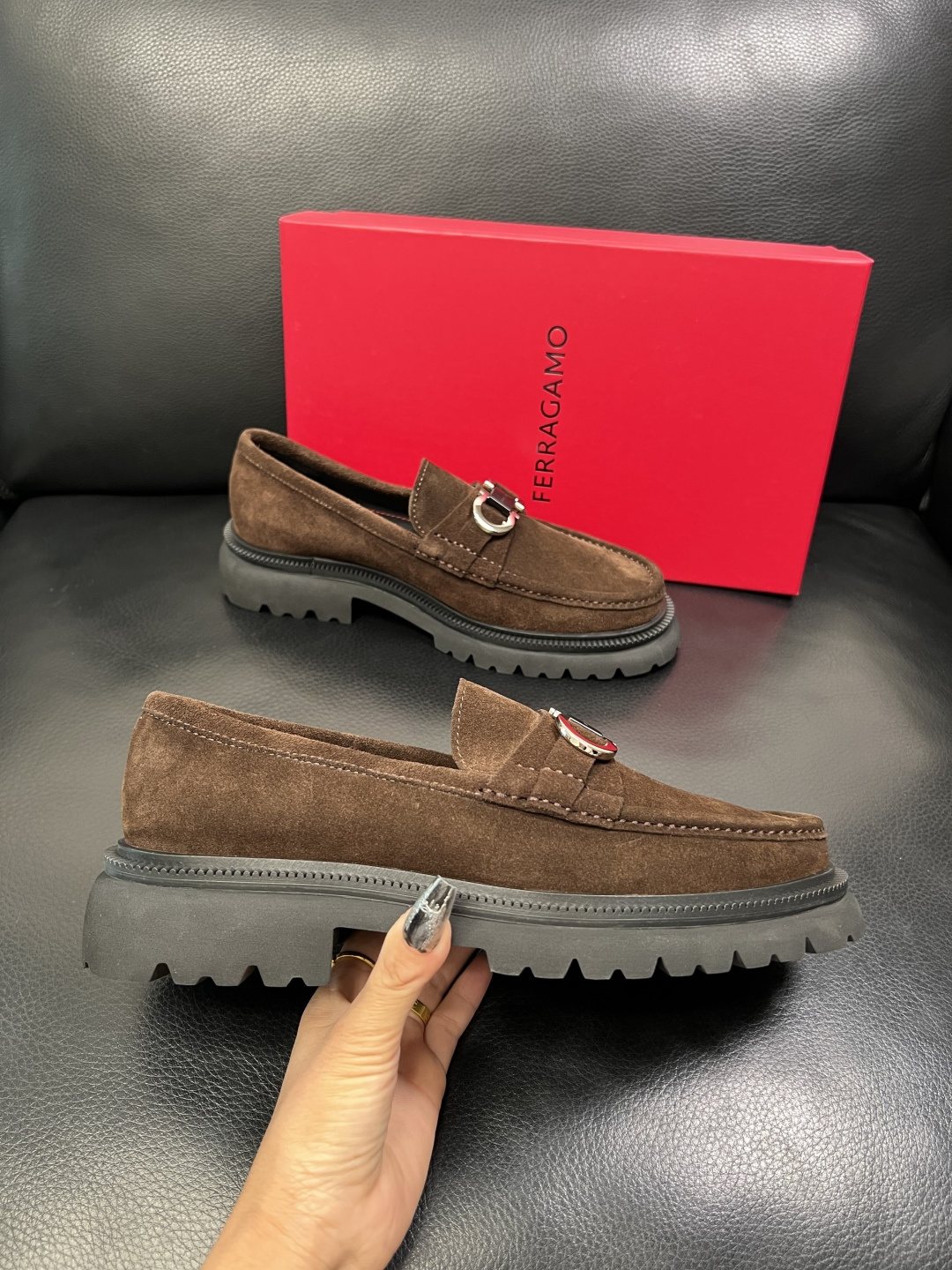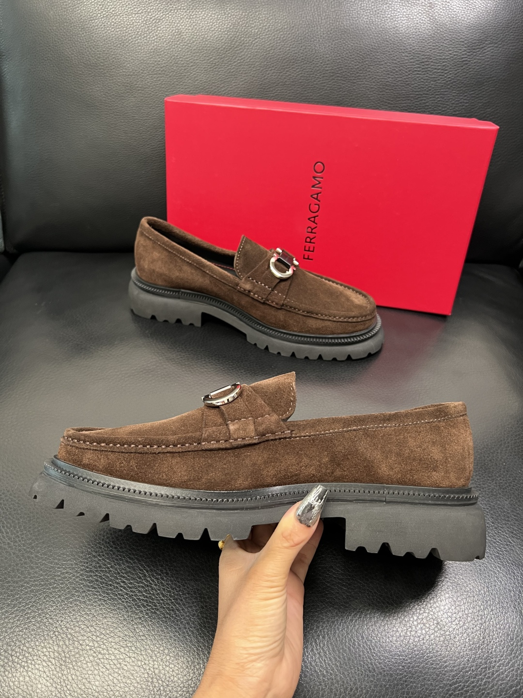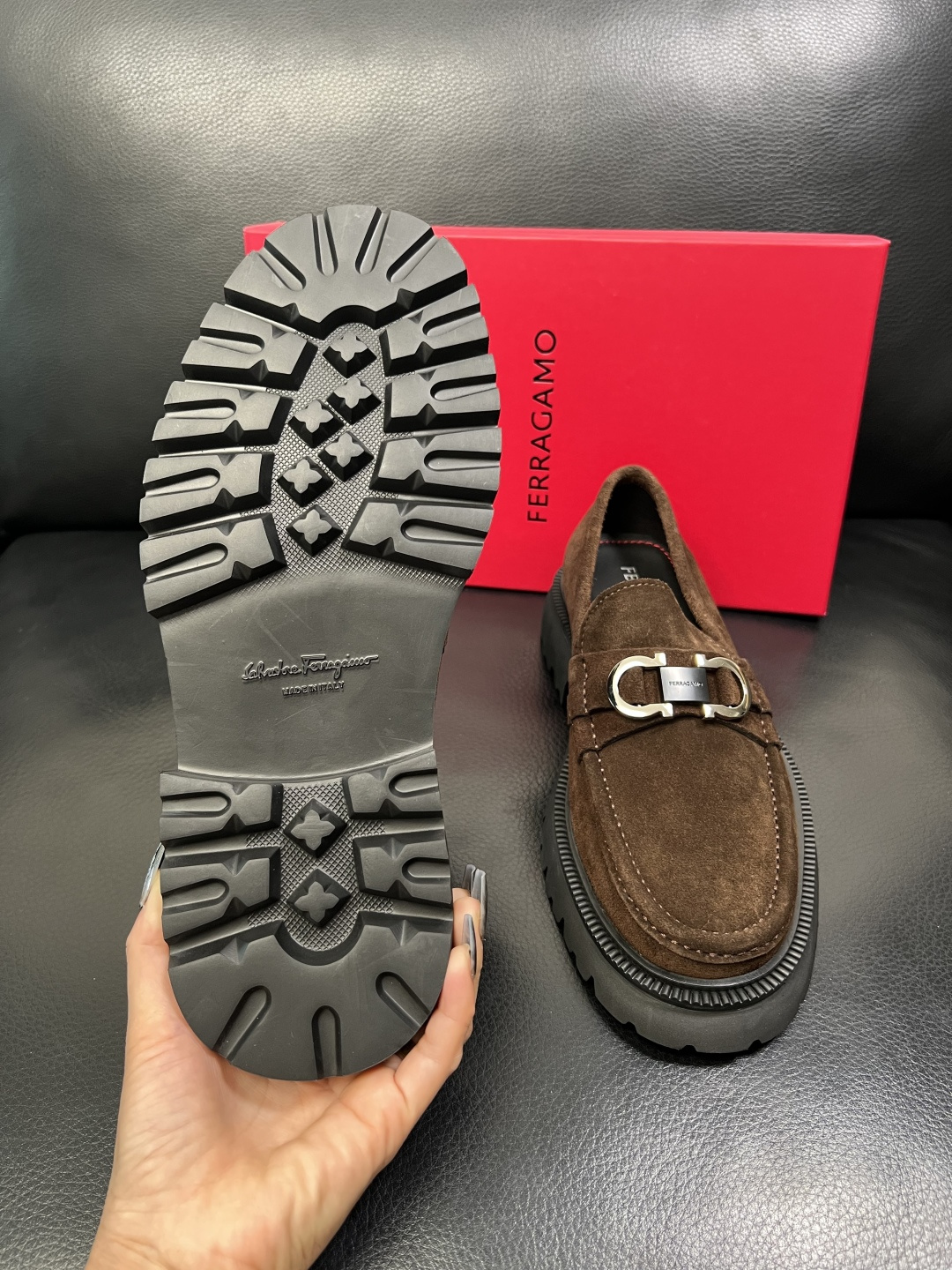 这款鞋子是AAAAA 1:1 质量 (非常棒). 使用了和原版一模一样的材料. 商标部分也保持了和菲拉格慕/Salvatore Ferragamo一样. 图片拍摄是实物鞋子拍摄, 您所收到的实物保证和我们图片一模一样.