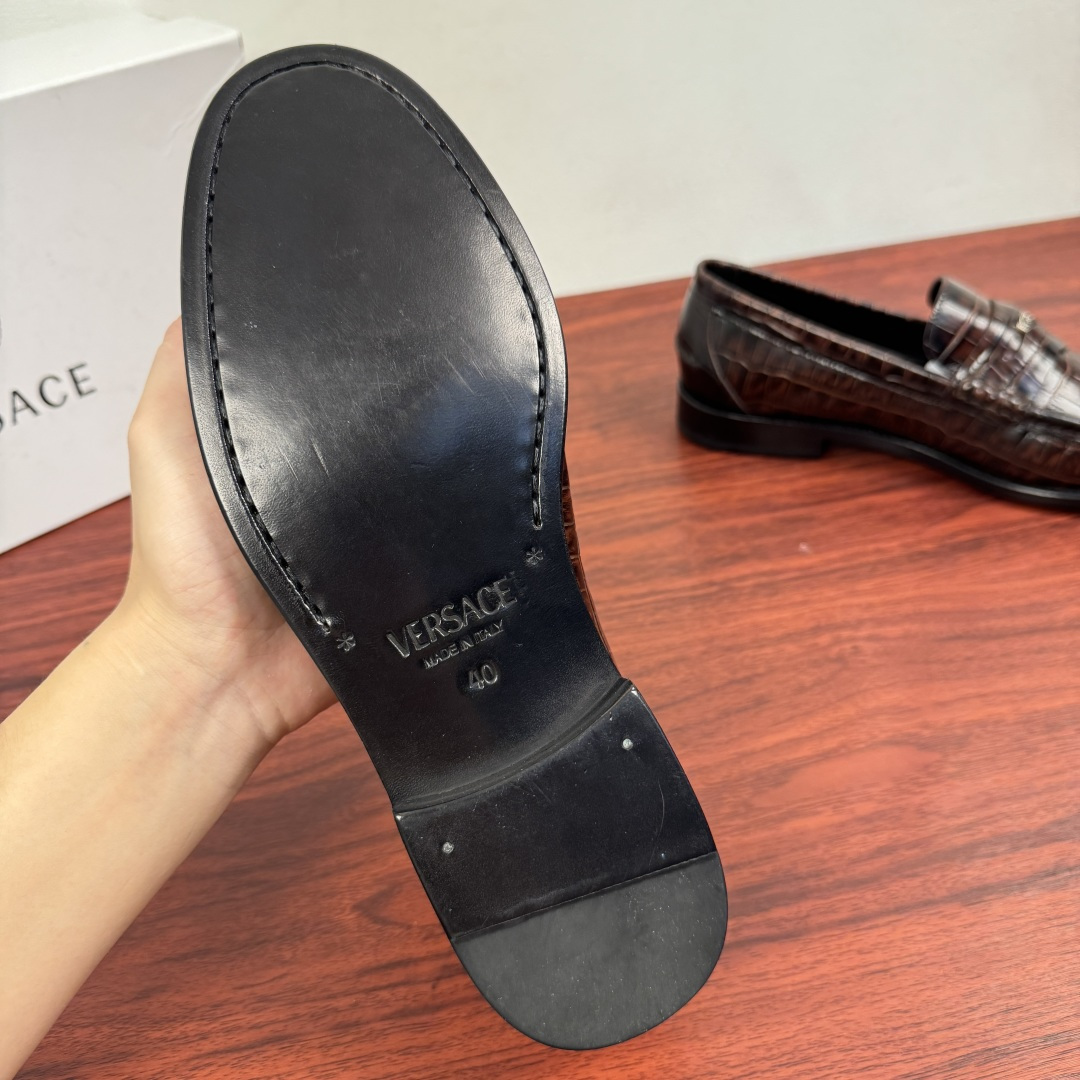 这款鞋子是AAAAA 1:1 质量 (非常棒). 使用了和原版一模一样的材料. 商标部分也保持了和范思哲/Versace一样. 图片拍摄是实物鞋子拍摄, 您所收到的实物保证和我们图片一模一样.