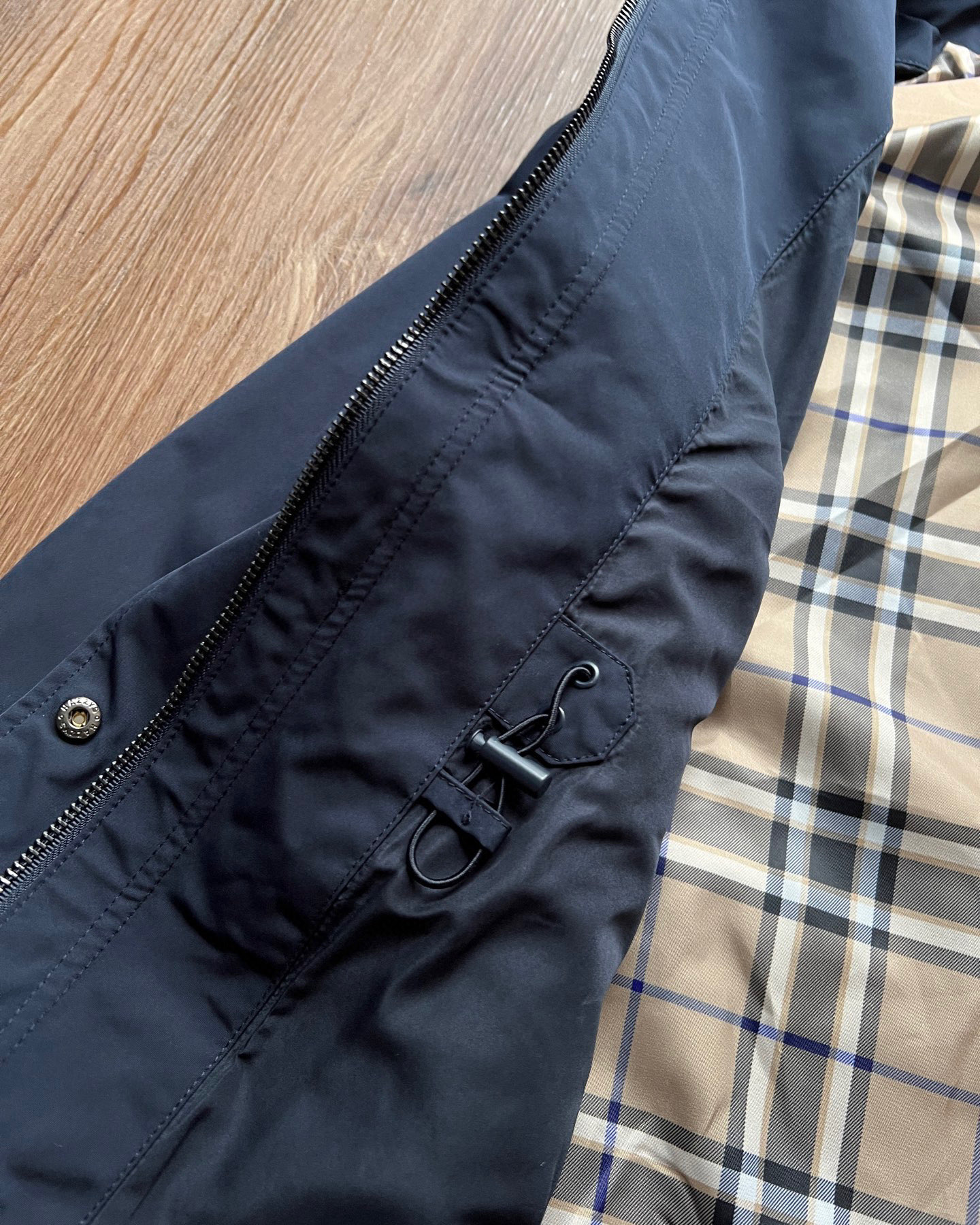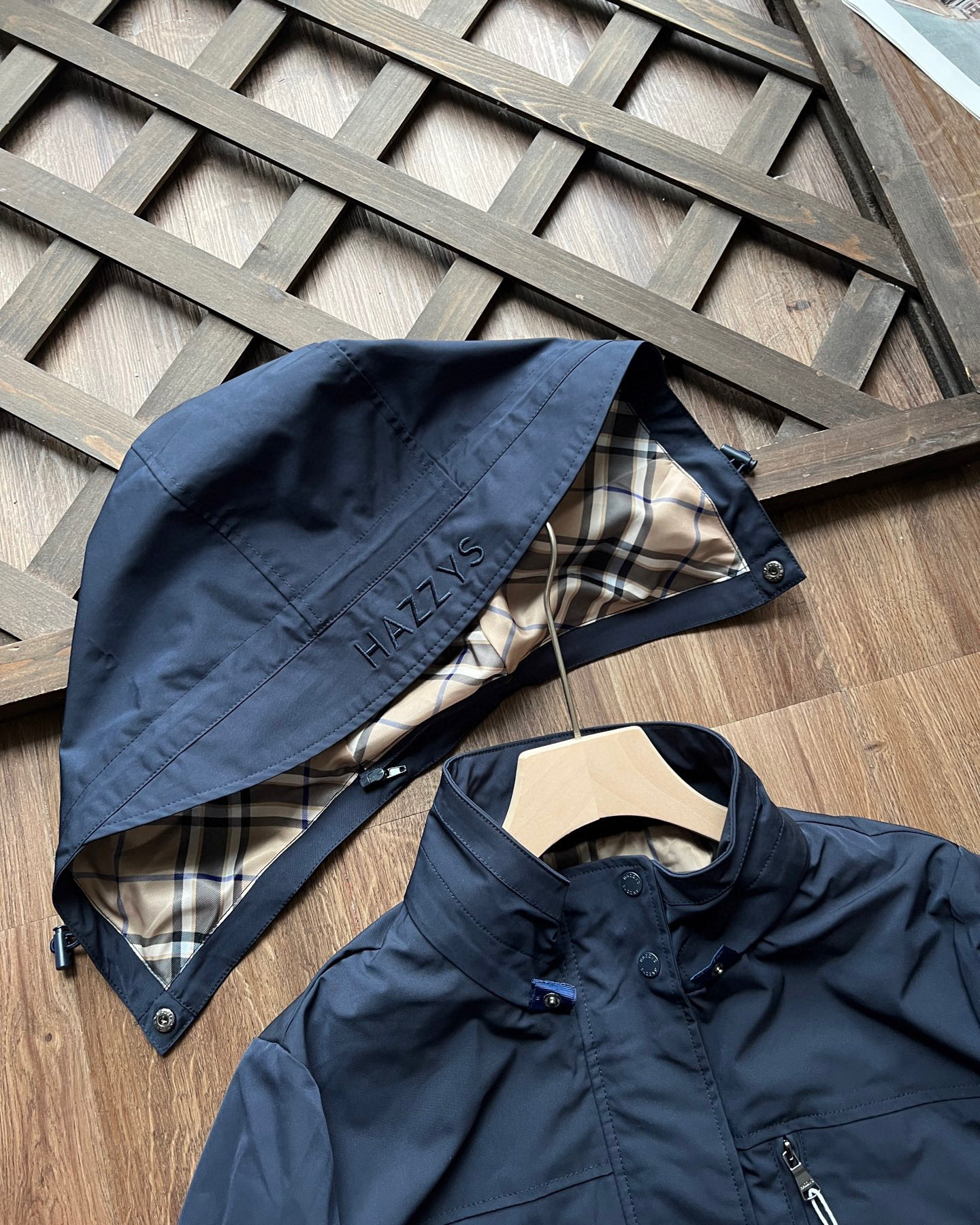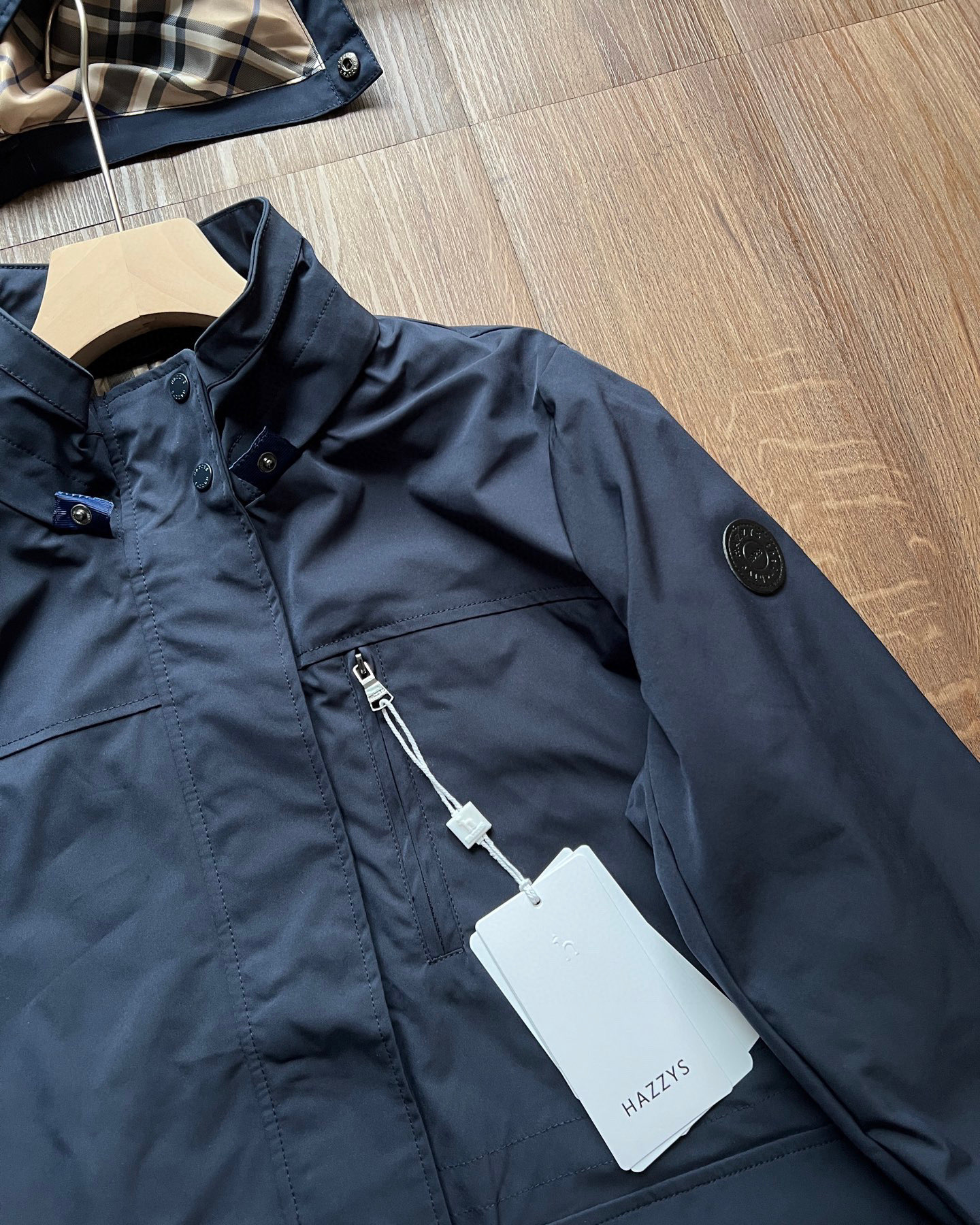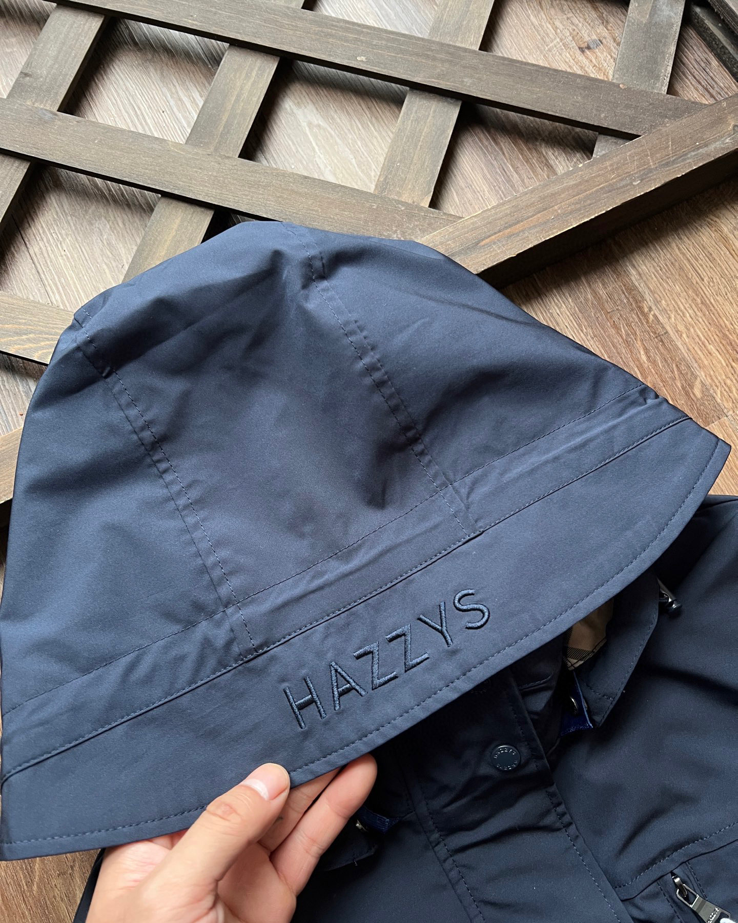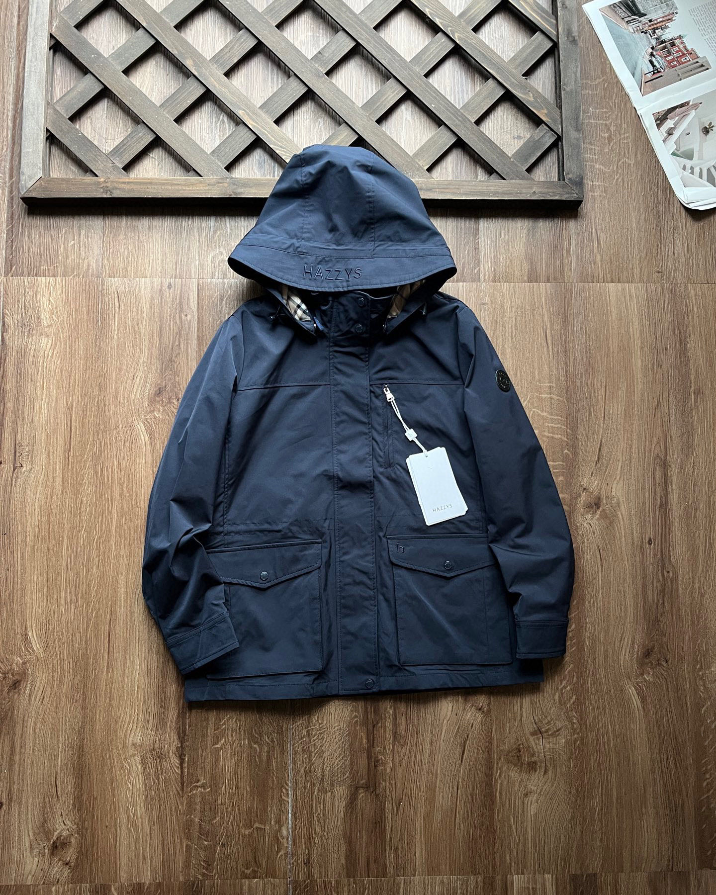 这款衣服是AAAAA 1:1 质量 (非常棒). 使用了和原版一模一样的材料. 商标部分也保持了和Hazzys一样. 图片拍摄是实物衣服拍摄, 您所收到的实物保证和我们图片一模一样.